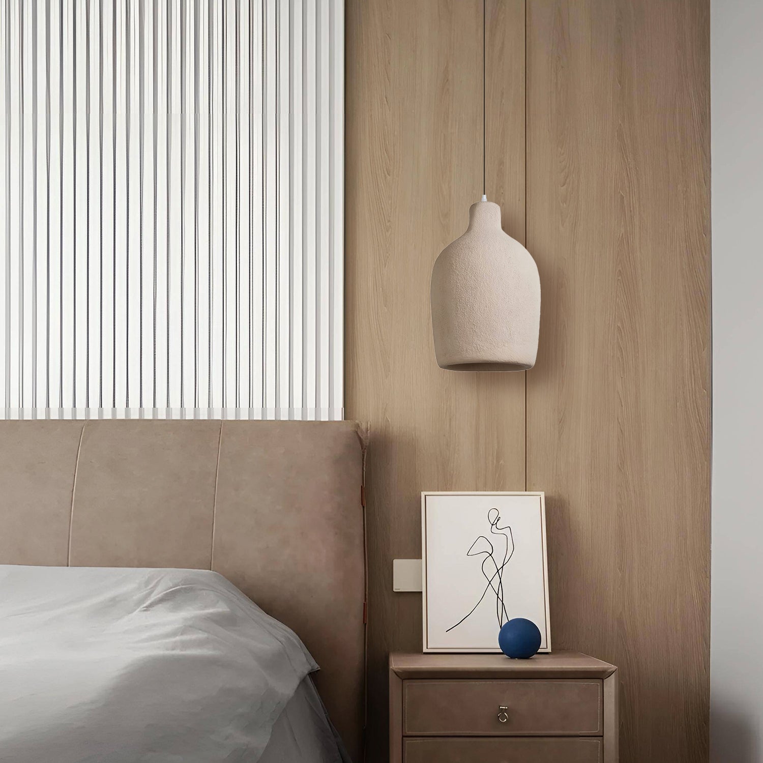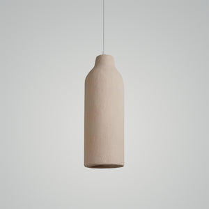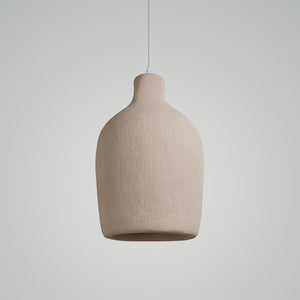 Discover the 1Hh Pendant Light, where timeless design meets modern simplicity. Inspired by the raw beauty of natural materials, this pendant lamp features a textured, earth-toned finish reminiscent of ancient pottery, with a warm, golden interior glow that offers a serene ambiance. Its vase-like shape brings a hint of rustic charm to your home, making it an ideal lighting solution for spaces that celebrate organic aesthetics and minimalist design. Whether it's hanging over your dining table or brightening up a cozy reading nook, the TerraLumen is more than just a light source—it's a piece of art that brings a piece of the earth's tranquility into your daily life. Add a touch of understated elegance to your space with this beautifully crafted lamp.