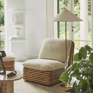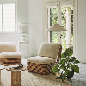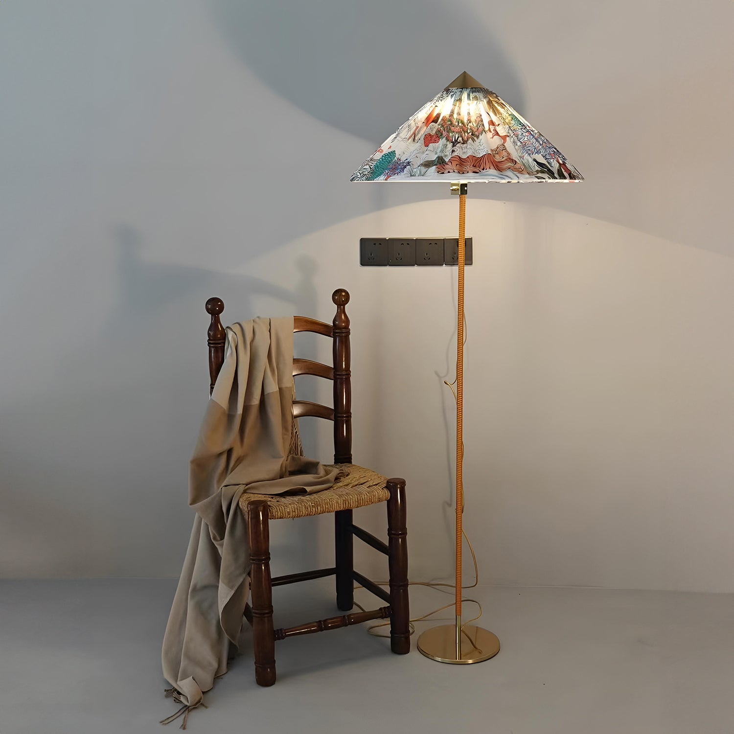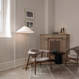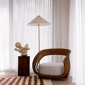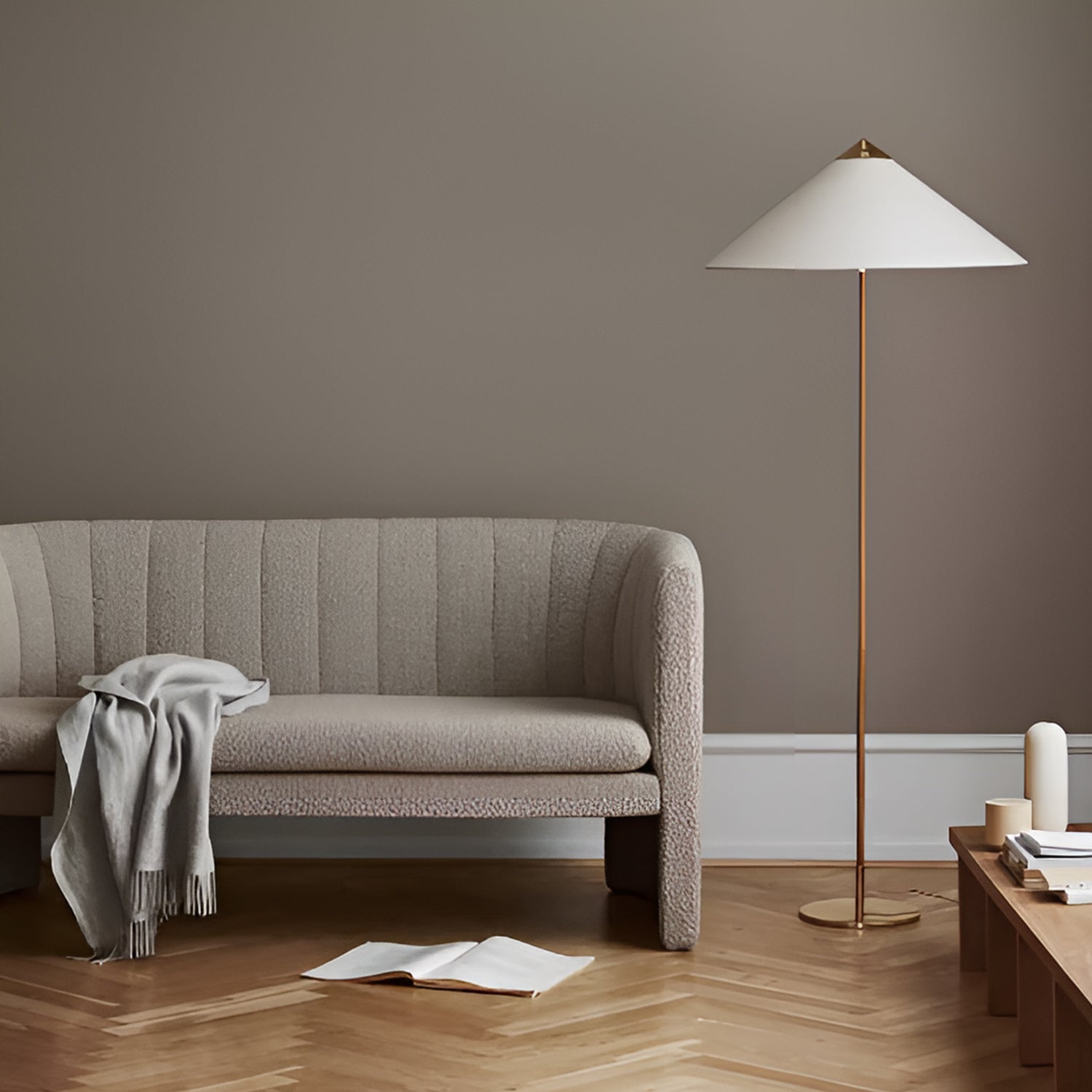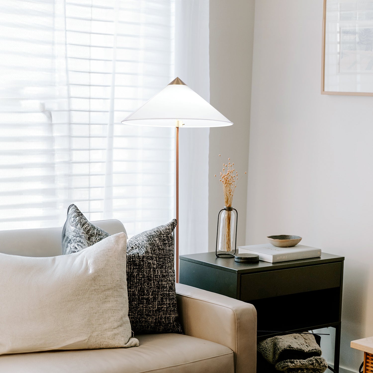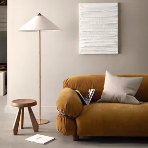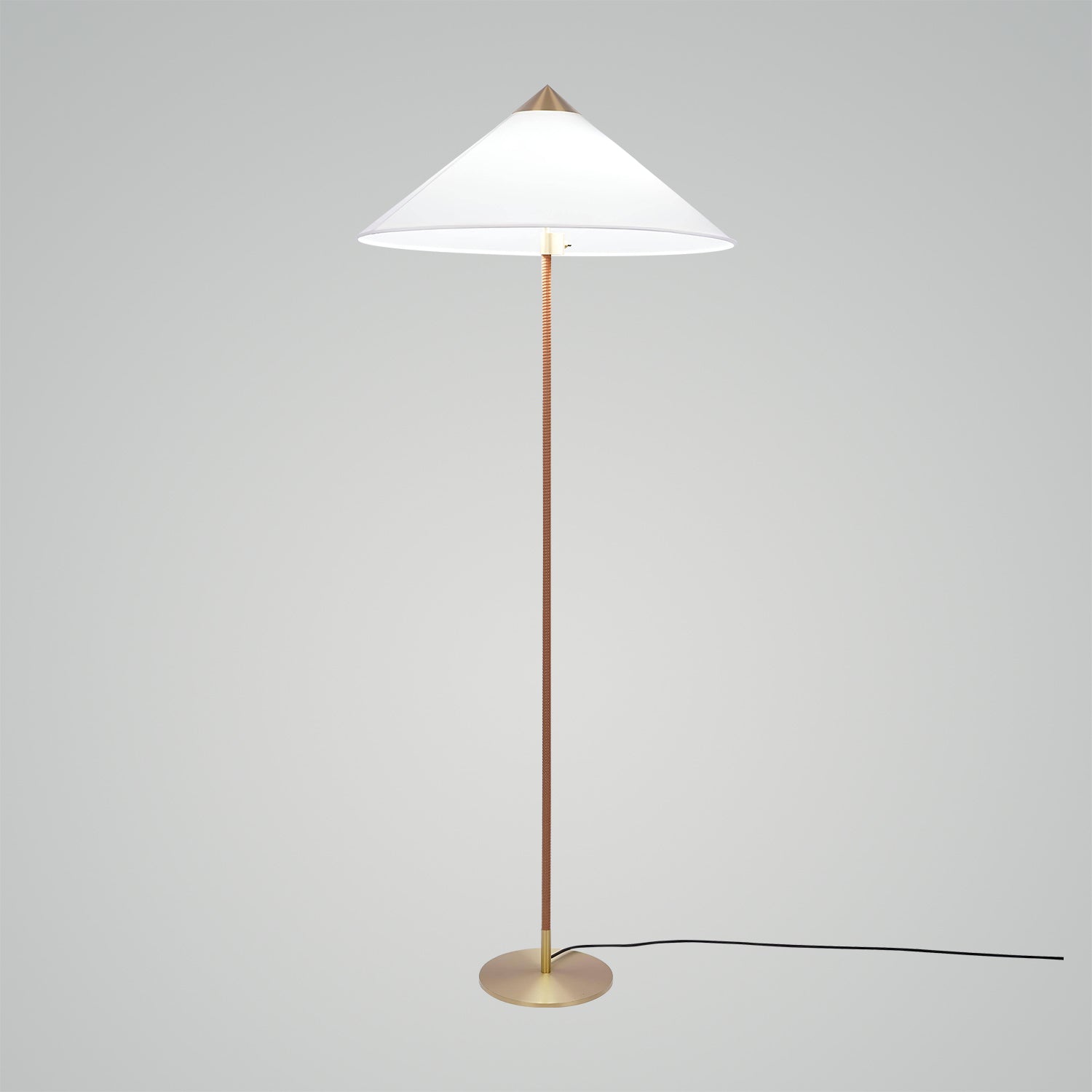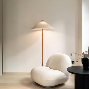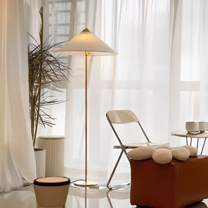 Elevate the elegance of your home with the "9602 FLOOR LAMP," a beacon of Nordic minimalism and serene lighting. This lamp's design is a nod to the clean, understated lines of Scandinavian style, featuring a conical shade that casts a wide, diffused light to create an ambient atmosphere. The slender brass pole and sturdy base exude a simple sophistication, while the crisp white shade acts as a canvas reflecting a soft, warm glow. Ideal for those who appreciate the purity of form and function, the "Zenith Cone Floor Lamp" is a testament to the harmonious balance between utility and beauty. Place it in a quiet corner for meditation, beside your favorite reading chair, or in your office for a touch of calm refinement. It's not just a light; it's a lifestyle statement.