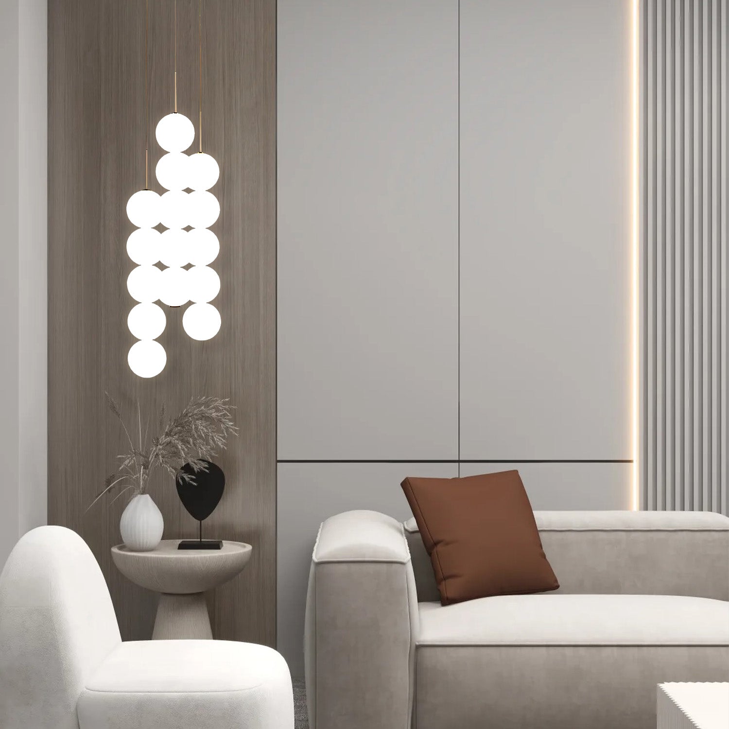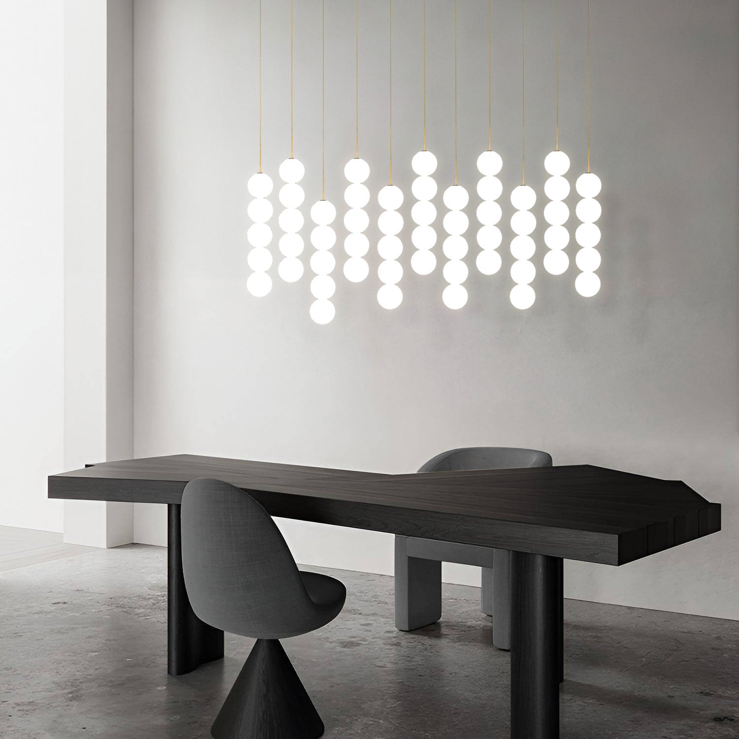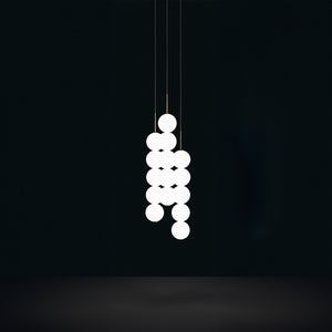 Step into a world of serene elegance with the "Abacus Pendant Light." Designed to mimic a celestial string of pearls, this pendant light features a vertical array of frosted orbs that descend gracefully, diffusing a soft, inviting glow. Each globe is suspended in harmony, creating a visual rhythm that enchants and calms. This fixture is a perfect symphony of simplicity and luxury, ideal for spaces that require a touch of refined beauty with a modern twist. Elevate your dining room, entrance, or living area with the "Ethereal Orb Cascade Pendant" and bask in the understated opulence it provides.