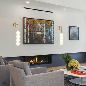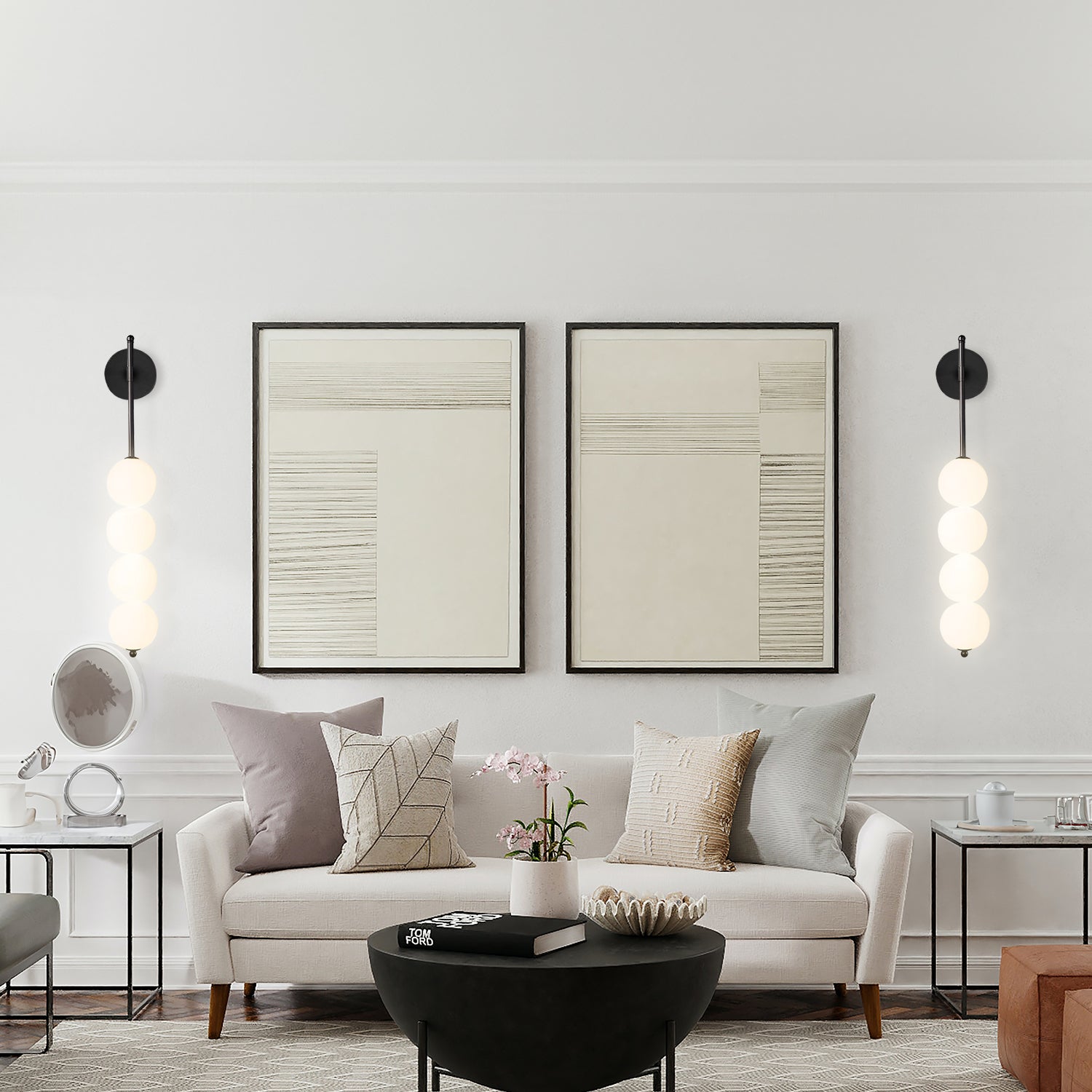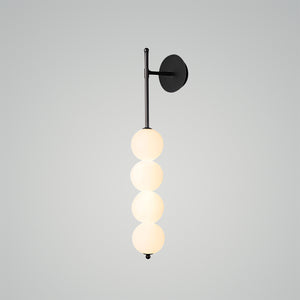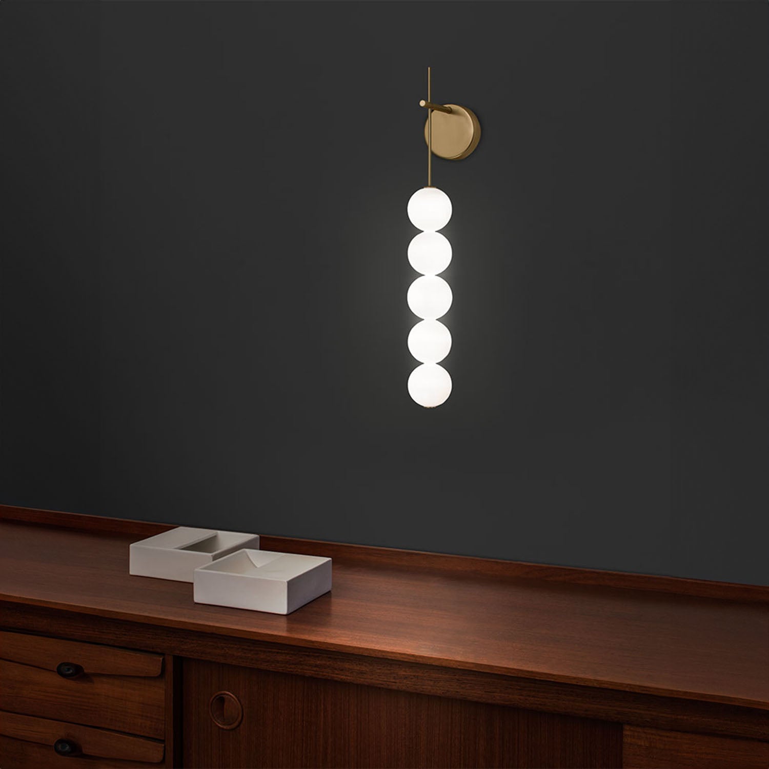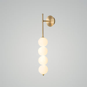 Light up your living space with the 'Abacus Wall Lamp', a symphony of simplicity and sophistication. This wall-mounted luminary features a series of frosted glass orbs that cascade down a sleek, brass-finished rod, embodying the minimalist ethos with a touch of warmth. The design is a nod to the modernist aesthetic, ideal for those who appreciate understated elegance. Its soft glow provides an inviting ambiance, making it a perfect addition to any contemporary home or chic office space. Make a statement of refined taste with this effortlessly stylish lighting fixture.