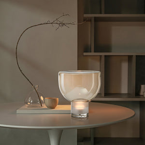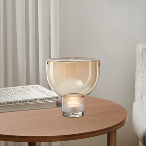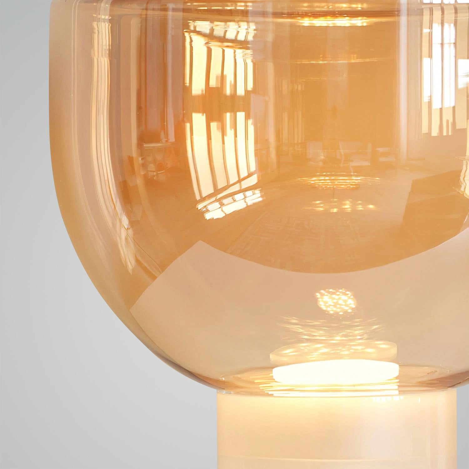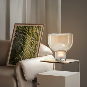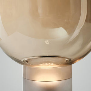 Introducing the "Aella Table Lamp," a harmonious blend of soft curves and warm illumination that transforms any room into a serene retreat. Inspired by the tranquility of a gentle bubble, this lamp features a translucent, tinted glass body that casts a calming, diffused light, ideal for creating a relaxing ambiance in your living space, bedroom, or study. With its sleek and simple base complementing the elegant globe, it stands as a timeless piece that merges minimalist design with a touch of warmth. Elevate the mood of your interiors with this exquisite and glowing addition that exudes sophistication and contemporary charm.