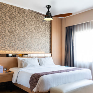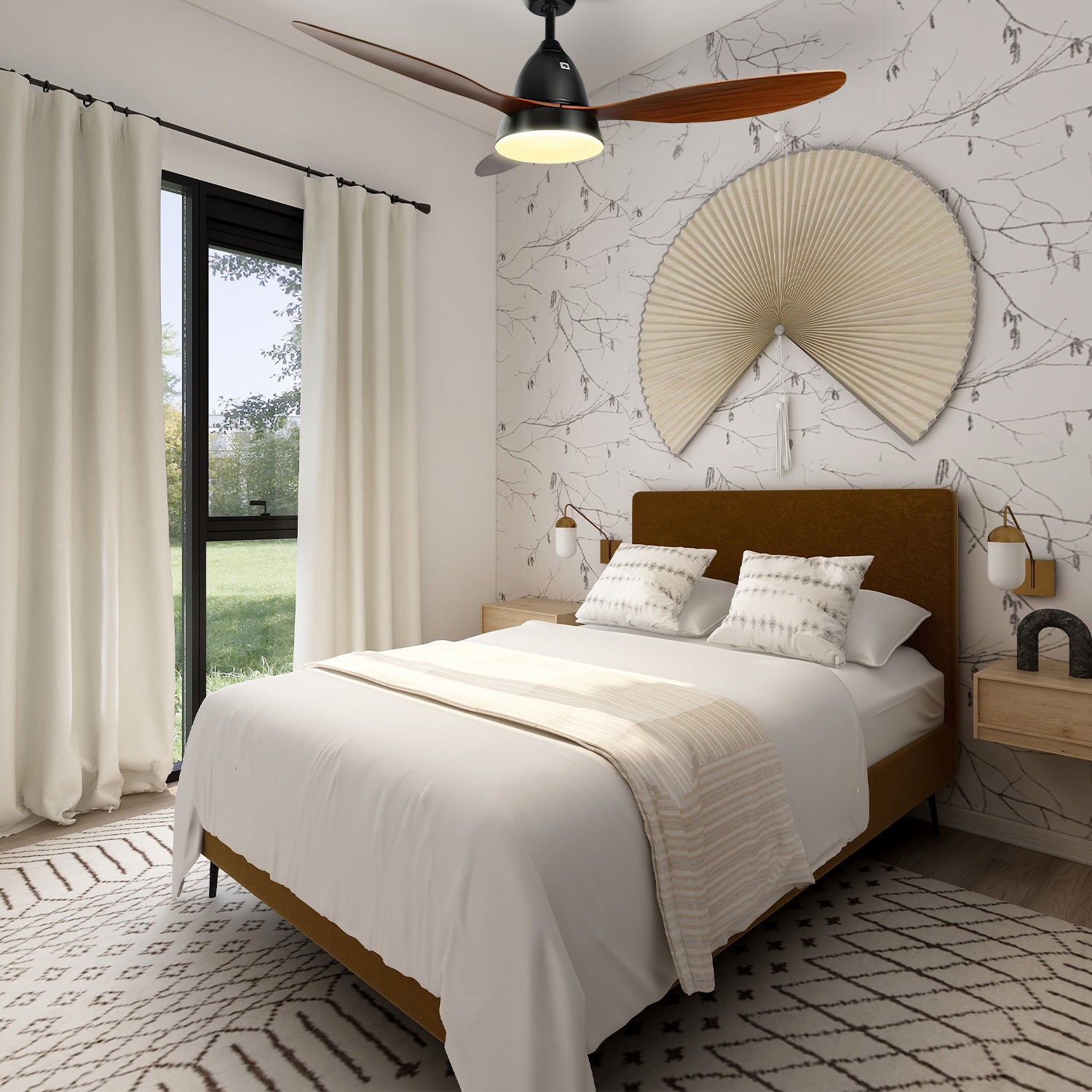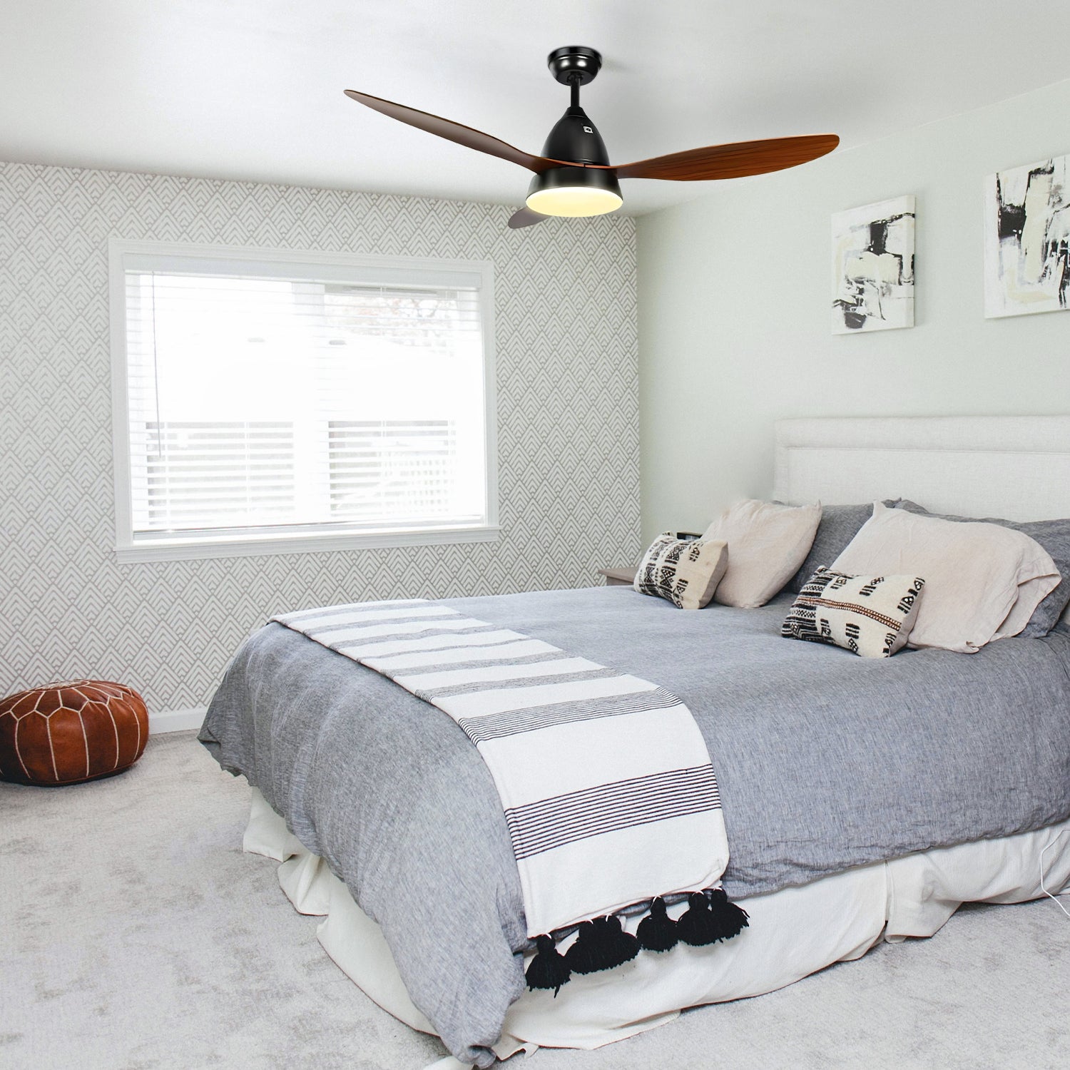 Introducing the AeroBreeze Modern LED Fan Light– the epitome of style meets function for your home. With its 52'' blade span, this fan is designed to provide optimum airflow in a sleek package. The warm wood tones of the blades contrast beautifully with the fan's contemporary design, ensuring it becomes an elegant focal point in any room. The frosted LED light fixture offers a diffuse glow, perfect for creating ambiance. Equipped with a remote control for easy adjustments, the AeroBreeze Modern LED Fan offers a modern solution to your cooling and lighting needs. Enjoy the perfect combination of comfort and style with a whisper-quiet performance that complements your living space.