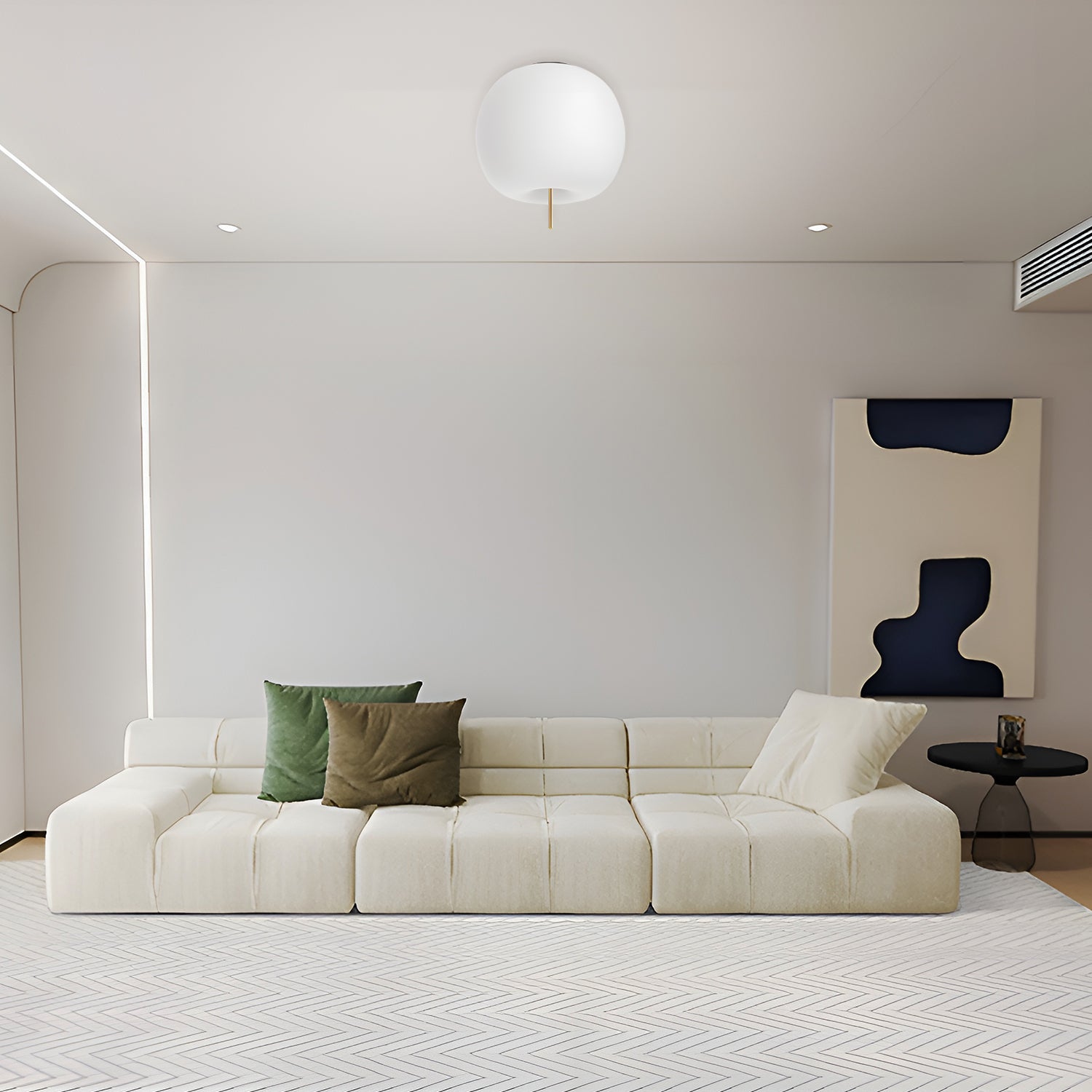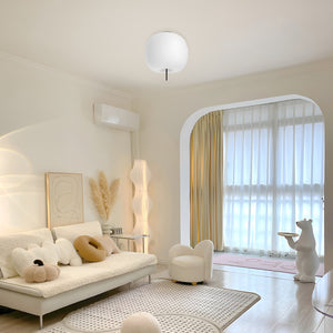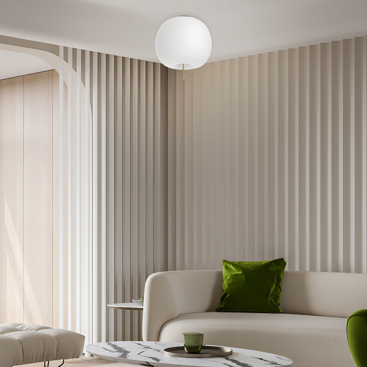The Orbital Bliss Ceiling Light is a minimalist's dream, offering a touch of modern elegance to any interior. Its design features a pristine, frosted white globe that seems to float effortlessly, casting a soft, ambient glow that envelops the room in a soothing light. The fixture's sleek, streamlined base ensures that the focus remains on the spherical diffuser, reminiscent of a serene celestial body. This light is perfect for those seeking to create a calm, peaceful atmosphere in their home or office. Simple yet striking, the Orbital Bliss Ceiling Light is an ideal choice for illuminating your space with a clean, contemporary vibe.