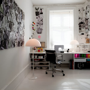 The fixture emits a soft and comfortable light. The hemispherical shade reflects the light downward, and the material ensures that most of the light is evenly diffused throughout the room from the surface of the shade.