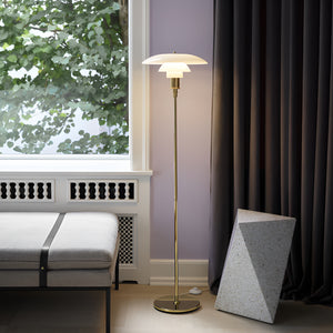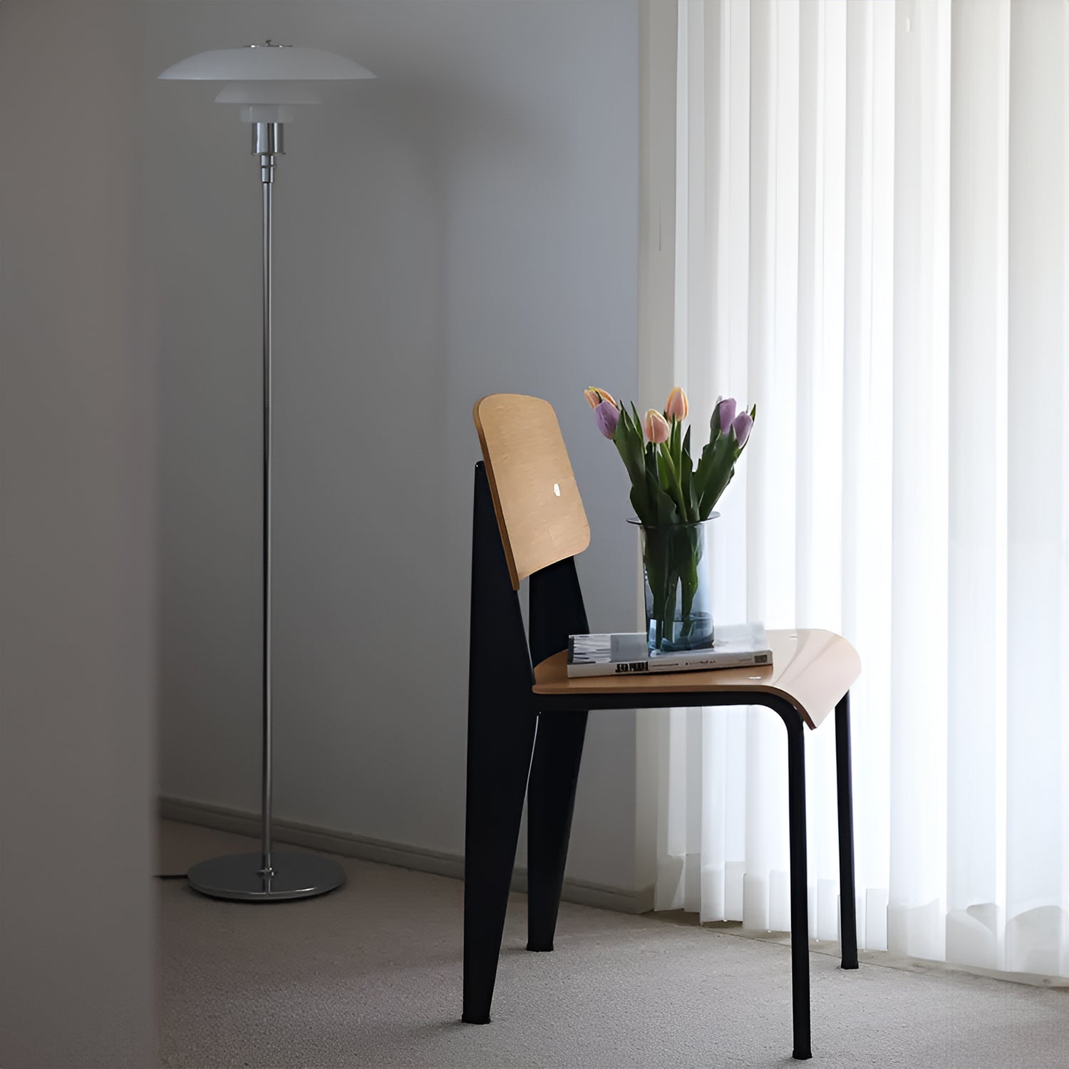 Illuminate your home with this floor lamp, which embodies the perfect blend of elegance and simplicity. Its sleek chrome-plated stem and hand-blown opal glass shades deliver a soft, diffused light that creates a warm and inviting atmosphere in any room. Perfect for placing beside your favorite reading chair or as a statement piece in the living room, this floor lamp offers timeless style with modern functionality. It is not just a source of light, but a touch of refined luxury for your space.