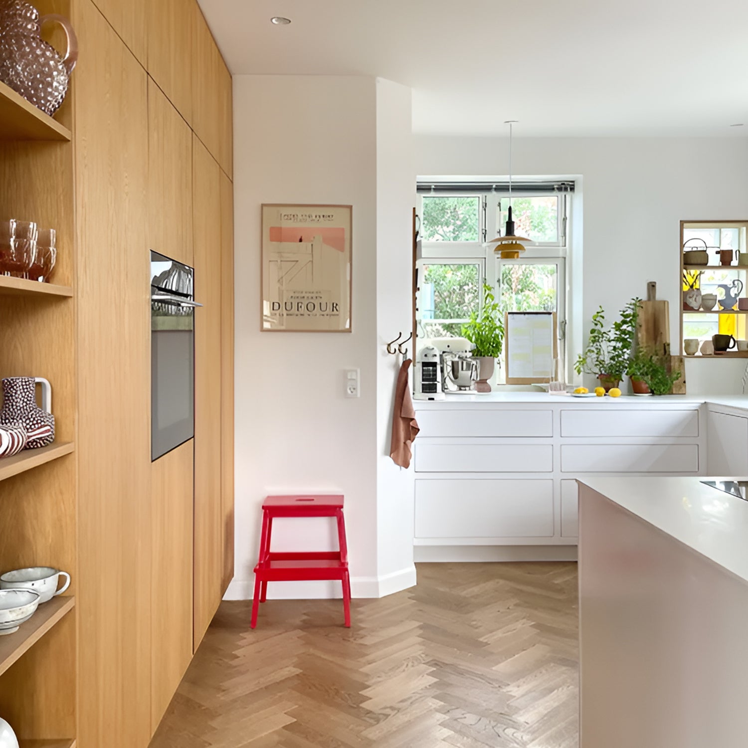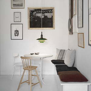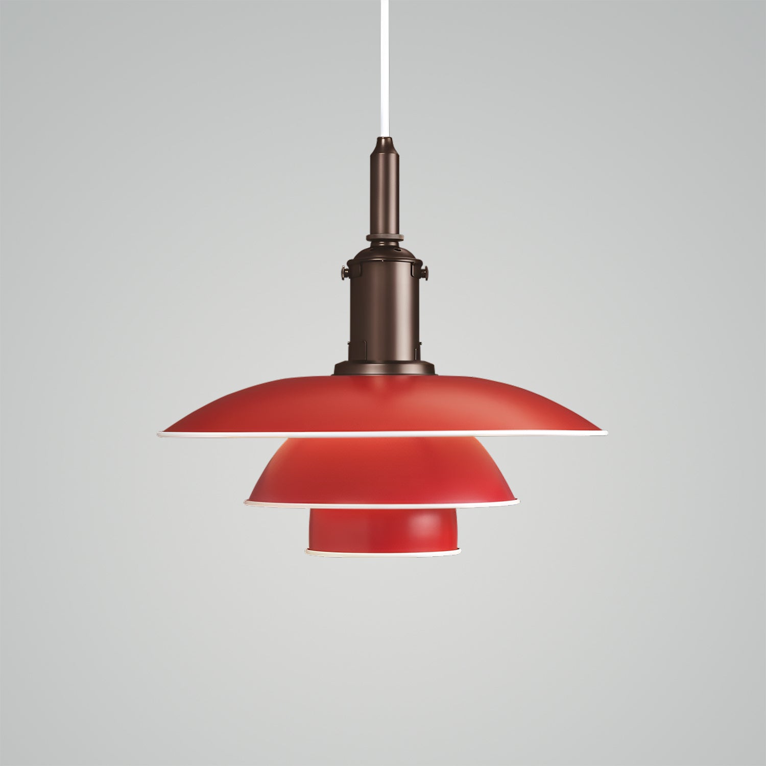 The fixture is designed to be 100% glare-free, based on the principle of a reflective three-shade system that primarily directs most of the light downwards. The shades are made of deep-drawn aluminum with a white inner surface, ensuring a gentle downward light distribution. The downward light is soft and pleasant.