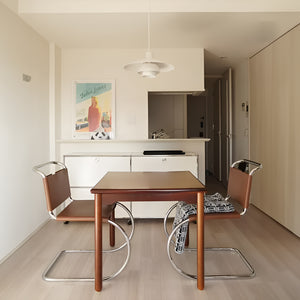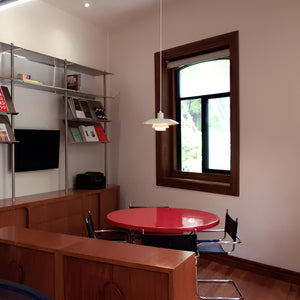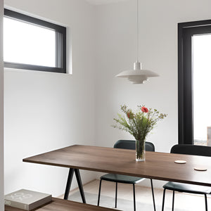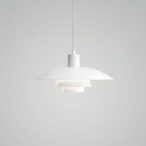 The PH 4/3 metal pendant lamp was launched in 1966. Its design follows the common three-shade system based on a logarithmic spiral, with the light source positioned at the center of the spiral. This lamp is a simplified version of a design created in 1929, which earned the designer the highest honor at the Barcelona World Exposition at that time. The metal pendant lamp is available in multiple sizes and colors, with the underside of the shade painted white to provide diffused light. To create a warm lighting atmosphere, a version with a gold-plated underside was also introduced. Over the years, the metal pendant lamp has been released in various sizes and colors.