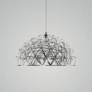The design is made with the same mathematical elements as its spherical family members. It is also adorned with tiny LED lights, but the powerful light source at its center makes it even brighter. Gazing at it is like staring at the soft glow of a starry night, making it the perfect light for dining under the stars. The designer passed away before seeing the final design. It was completed in collaboration with the designer's wife, an artist, and a designer. The product is compatible with a wireless wall switch, allowing for quick and easy dimming, giving you full control over the light output.