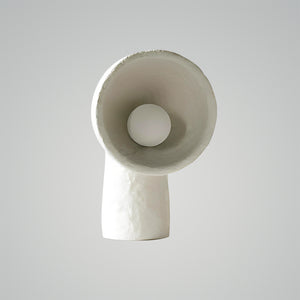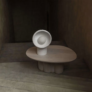 Each table lamp is handcrafted using sustainable materials. The sculptural lamp seems to originate from the ground, as if driven by the power of the earth.