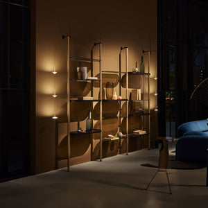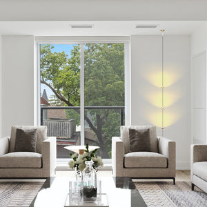 The "Soreluna Floor Lamp" is a sculptural triumph, designed to embody the sleek and soaring lines of a city's skyline. With minimalist aesthetics, this lamp features a series of angular, triangular fixtures balanced at intervals, creating a rhythmic ascent of light. Each vertex serves as a beacon, casting a soft, directed glow that is both practical and atmospheric. Perfect for modern living spaces and offices alike, the lamp's vertical design makes a bold statement without overwhelming the room. Illuminate your space with a piece that stands tall, not only as a source of light but as a work of art that echoes the architectural grace of the urban horizon.
