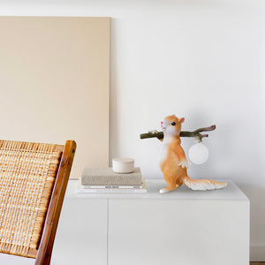 Discover the enchanting charm of our 'Squirrel Table Lamp', a playful addition to any room that brings a touch of nature's wonder indoors. Crafted with meticulous attention to detail, this delightful squirrel stands poised and ready to illuminate your space, gently cradling a glowing orb of light. Designed to inspire smiles and add a whimsical flair, this table lamp is perfect for anyone seeking to infuse their home with the magic of the forest. Let this adorable woodland creature cast a warm and inviting glow in your home, creating an atmosphere of cozy comfort with its unique and captivating design.