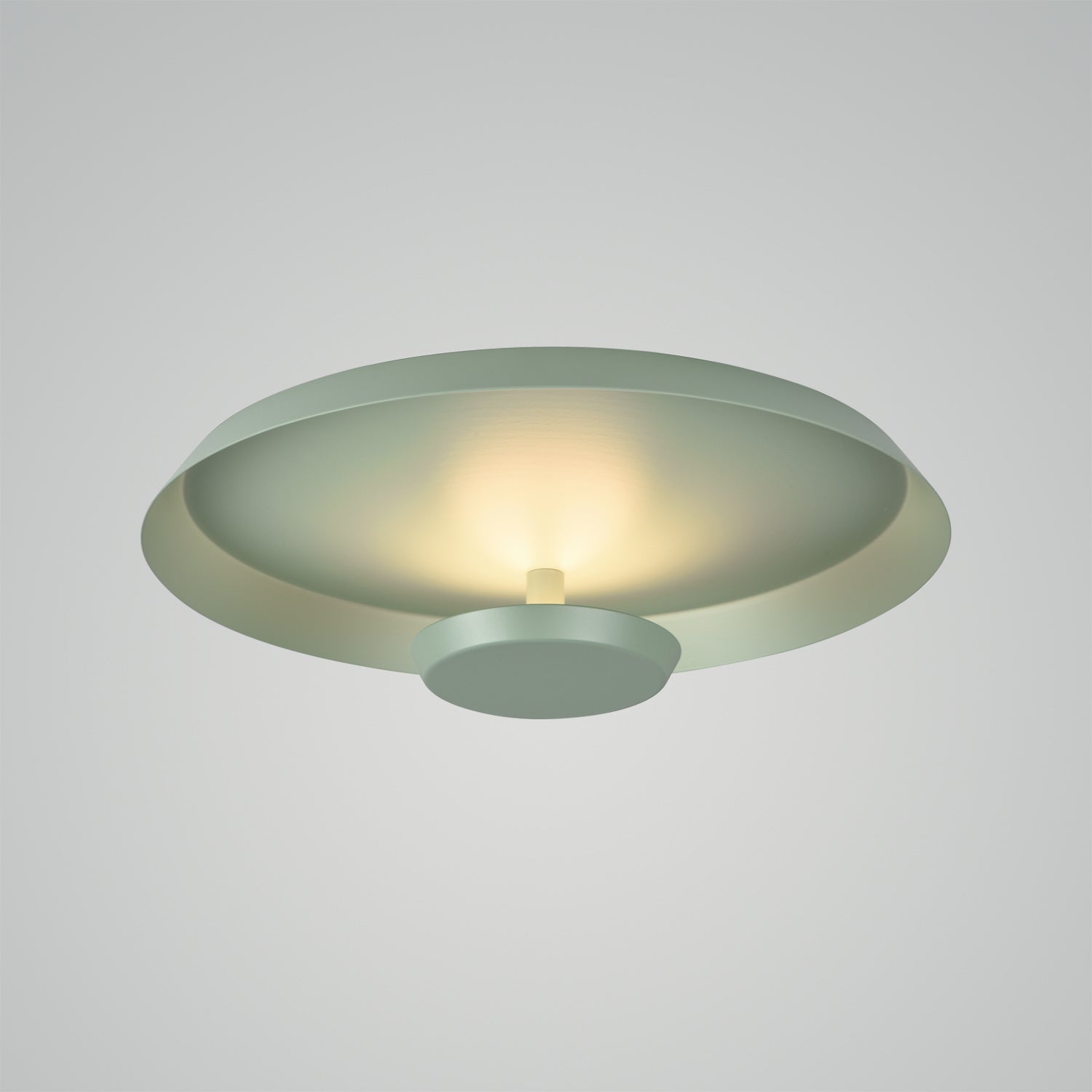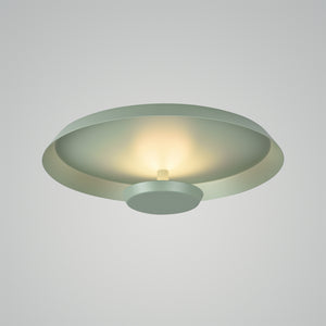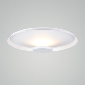 The ceiling light is a modern reinterpretation of the classic ceiling rose. Featuring a pair of simple circles as its focal point, it includes an LED light source. This design creates a uniform halo effect, offering even indirect lighting and a relaxing ambiance. Made from aluminum, the ceiling light comes in small, medium, and large sizes, suitable for general direct lighting styles.