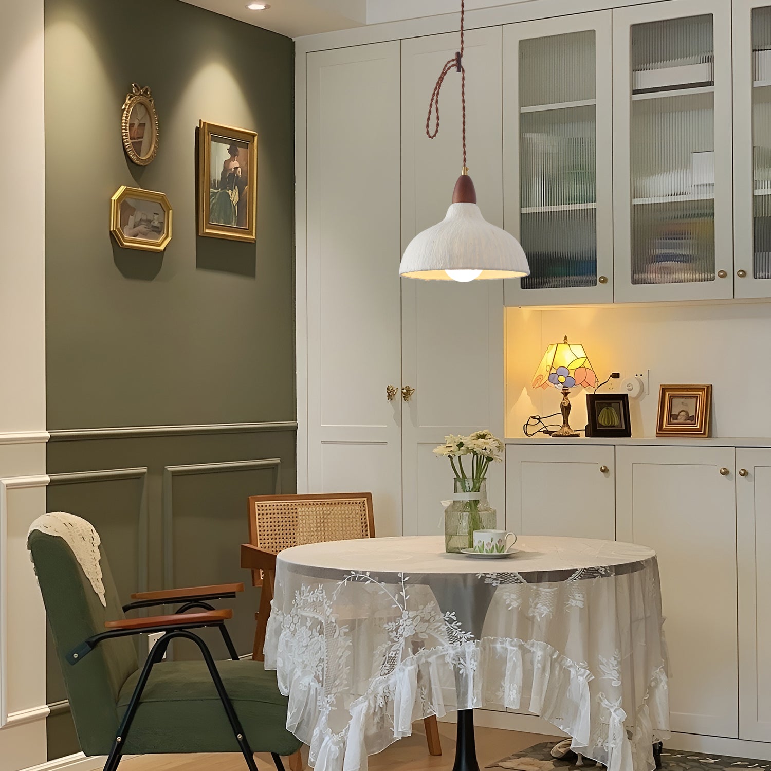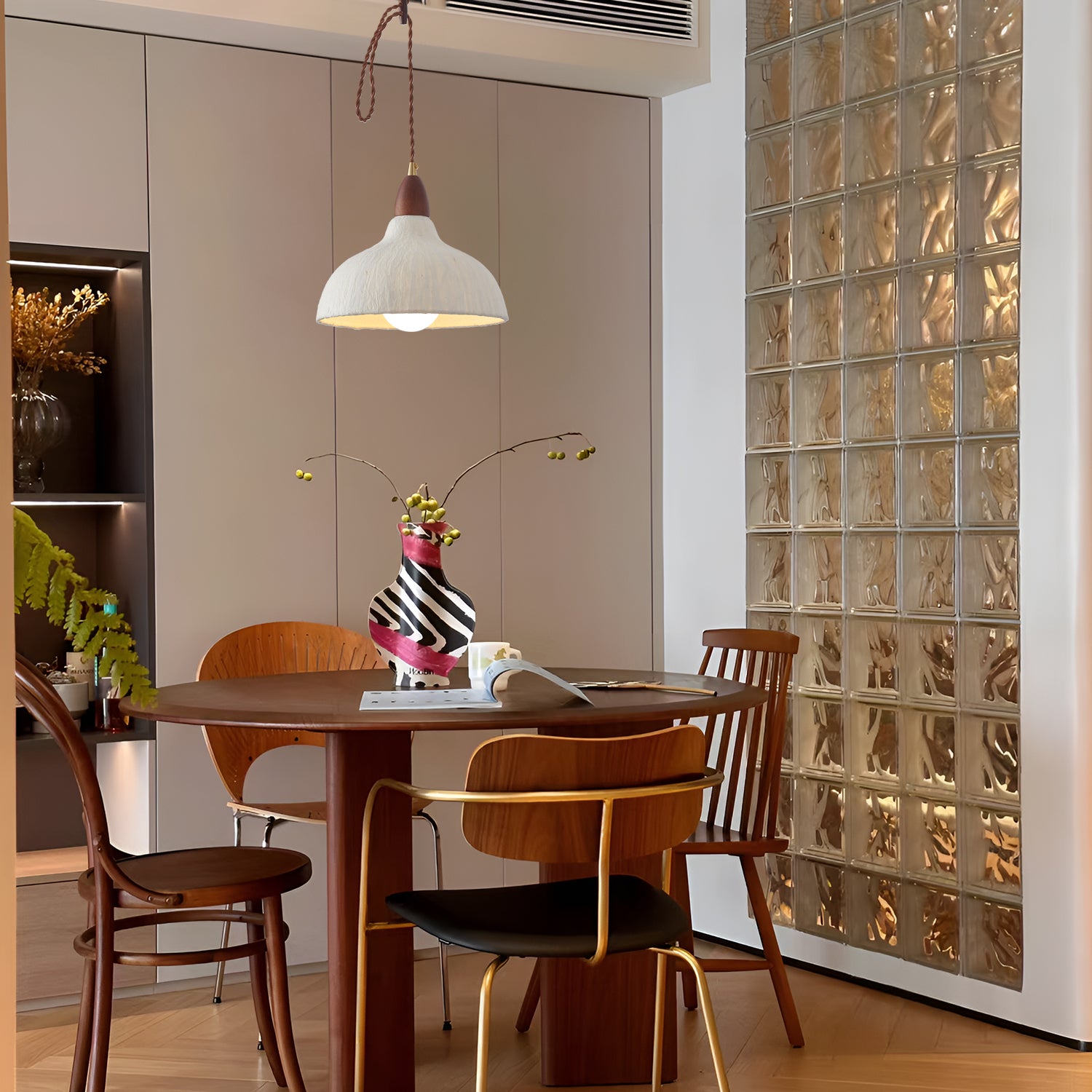 The Walnut Rice Paper Pendant Light features a minimalist design that combines the warmth of walnut wood with the delicate texture of rice paper. This light fixture emits a soft and warm glow, making it ideal for creating a cozy atmosphere in any space. Its elegant silhouette suits various interior styles, from modern to traditional, adding a touch of natural beauty to your home.