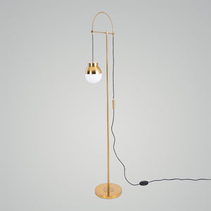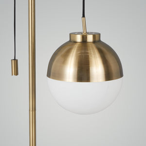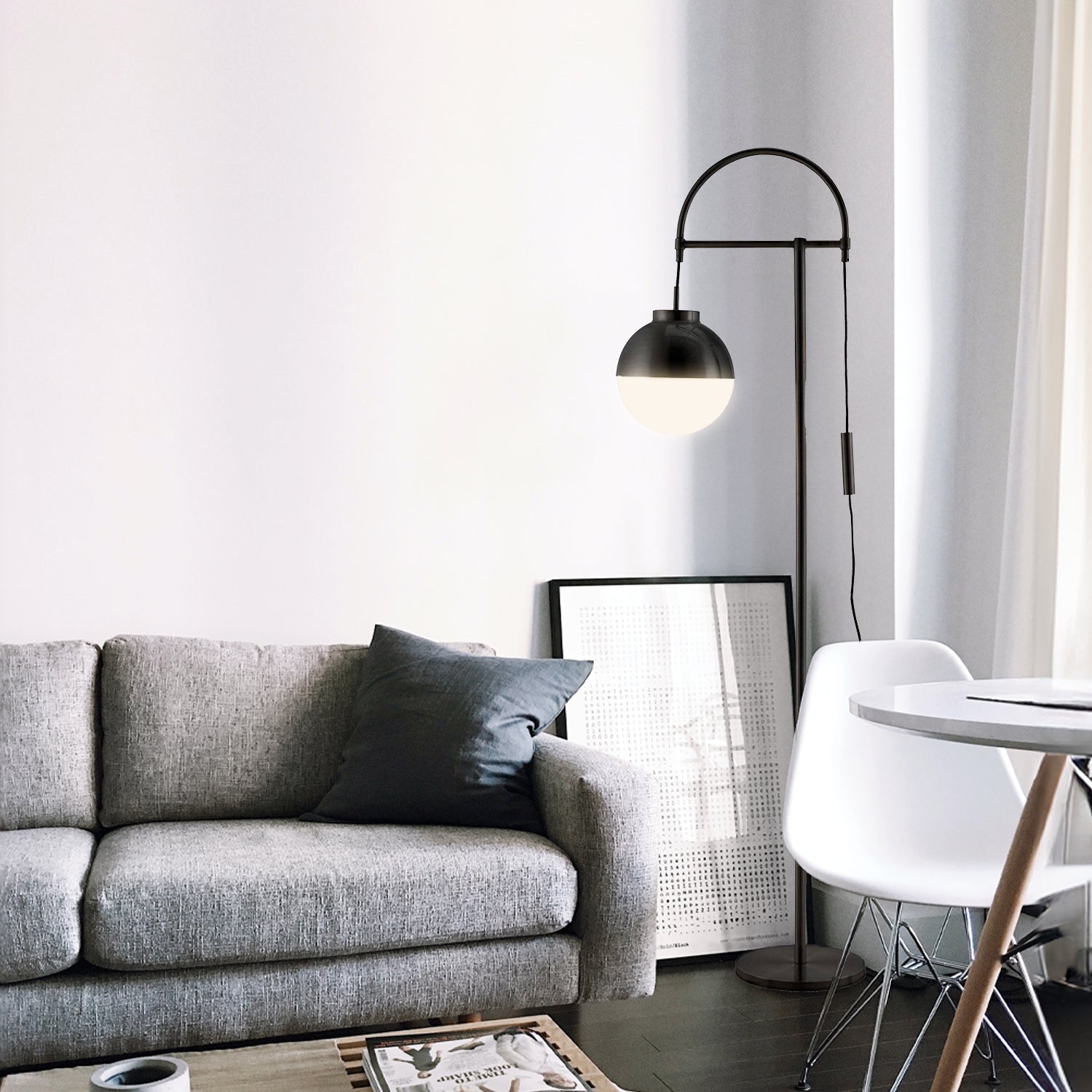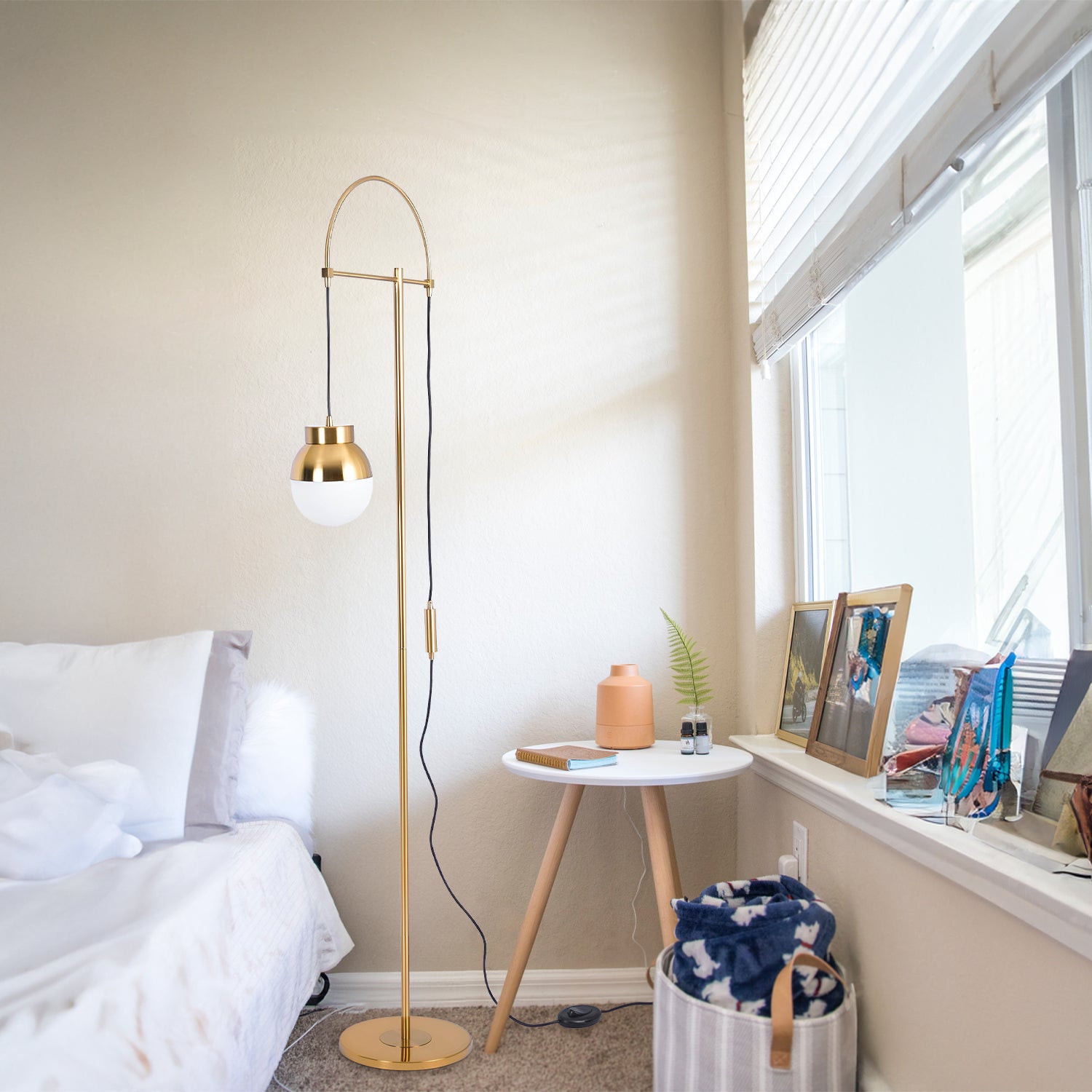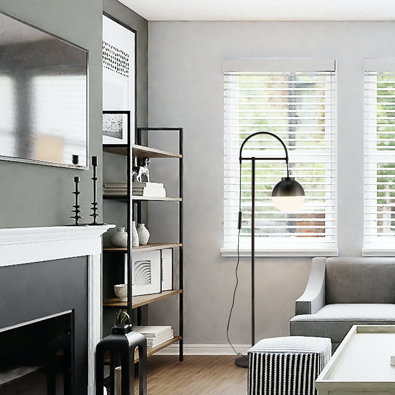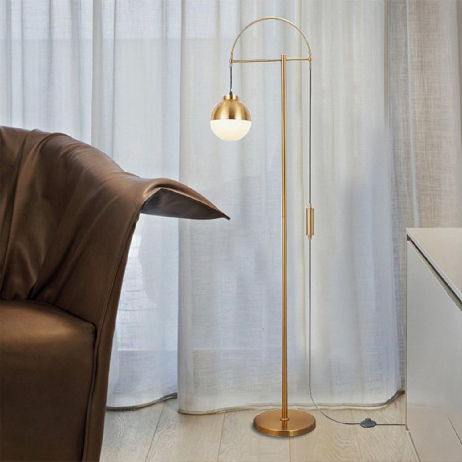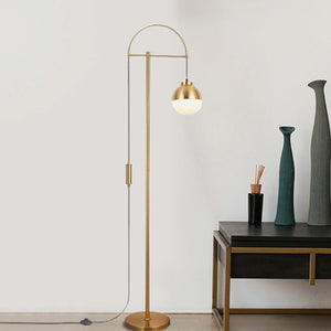 Introducing the Waterloo Floor Lamp, a sophisticated addition to any living space. This sleek design combines modern aesthetics with classic warmth, featuring a graceful arched neck that culminates in a luminescent glass globe. Perfect for adding a touch of elegance to your reading nook or illuminating a cozy corner, this floor lamp with its golden hue stand and soft light diffusion offers both style and functionality. Illuminate your home with this chic and timeless piece.