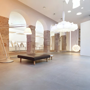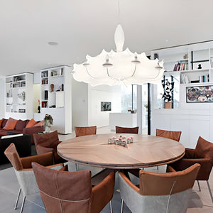 Pendant light providing diffused lighting. The diffuser is formed by a steel structure coated with a white powder finish and sprayed with 'cocoon' resin.