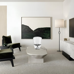 Step into a world of sleek design with the "Balloon Table Lamp," an embodiment of minimalist charm and contemporary aesthetics. Crafted with a transparent glass exterior, this lamp resembles a chic, modern balloon that seems to float above any surface it graces. The lower half's reflective chrome accent adds a dash of sophistication, making it an ideal statement piece for a stylish office, a modern living room, or a futuristic bedroom. This lamp isn't just a source of light; it's a work of art that transforms illumination into a visually stunning experience. Embrace the simplicity and elegance that the Clear Vision Capsule Lamp offers and let it elevate the ambiance of your space.