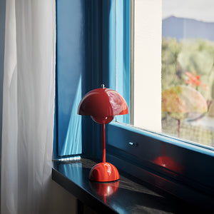 Among the most norm-breaking Danish designs of the 1960s, this lamp is renowned for its iconic form. The series has now expanded to include seven different models. We are excited to introduce five new vibrant colors for 2023: Cobalt Blue, Swim Blue, Vermilion Red, Tangy Pink, and Dark Plum. The portable version, slightly smaller than the table lamp, is deliberately lightweight and comes with a USB charging cable, bringing a cozy atmosphere to both indoor and outdoor spaces.