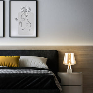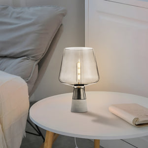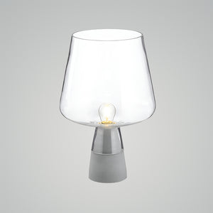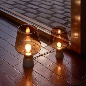 The "Leimu Table Lamp" is a striking fusion of industrial charm and contemporary design. With its elegant glass top that gently diffuses the light, casting a warm and inviting glow, this lamp is perfectly balanced on a sturdy, cement-like base, reminiscent of a torchbearer's steady grip. It is an ideal addition to any modern home or office seeking a touch of minimalist sophistication. The unique combination of materials makes this lamp not just a source of illumination but also a statement piece of decor. Whether placed on an end table or as the centerpiece of your workspace, the Luminous Stone Glass Table Lamp is sure to add character and style to your environment.