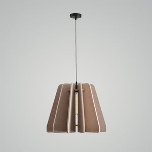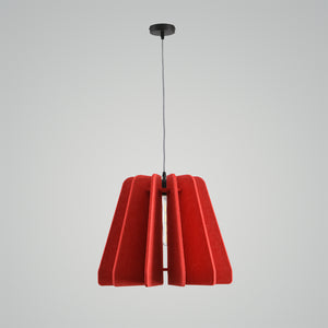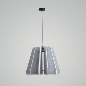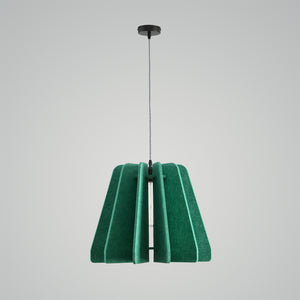 This pendant light redefines its volume and scale, allowing for arrangements that create impressive layouts while enhancing sound absorption. It is available in two sizes and allows for mixing different colors of felt panels that are cut by a high-precision CNC cutter.