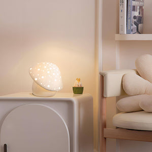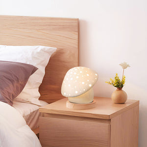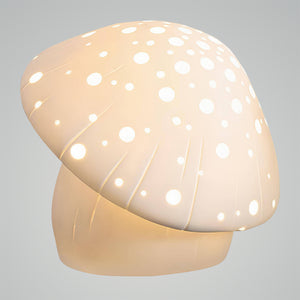 Step into a whimsical woodland with the Fungo White Table Lamp, a charming addition to any room seeking a touch of magic. Inspired by the mystical shapes of forest fungi, this lamp features a creamy white dome speckled with glowing dots that cast a pattern of soft light, creating a starry ambiance reminiscent of a night in the woods. The warm glow emanating from this piece will transport you to a serene, enchanted place, making it perfect for nurseries, cozy reading corners, or anyone who desires a fairytale touch in their living space. Bring home this enchanting lamp and let it illuminate your nights with the wonder of nature's own design.