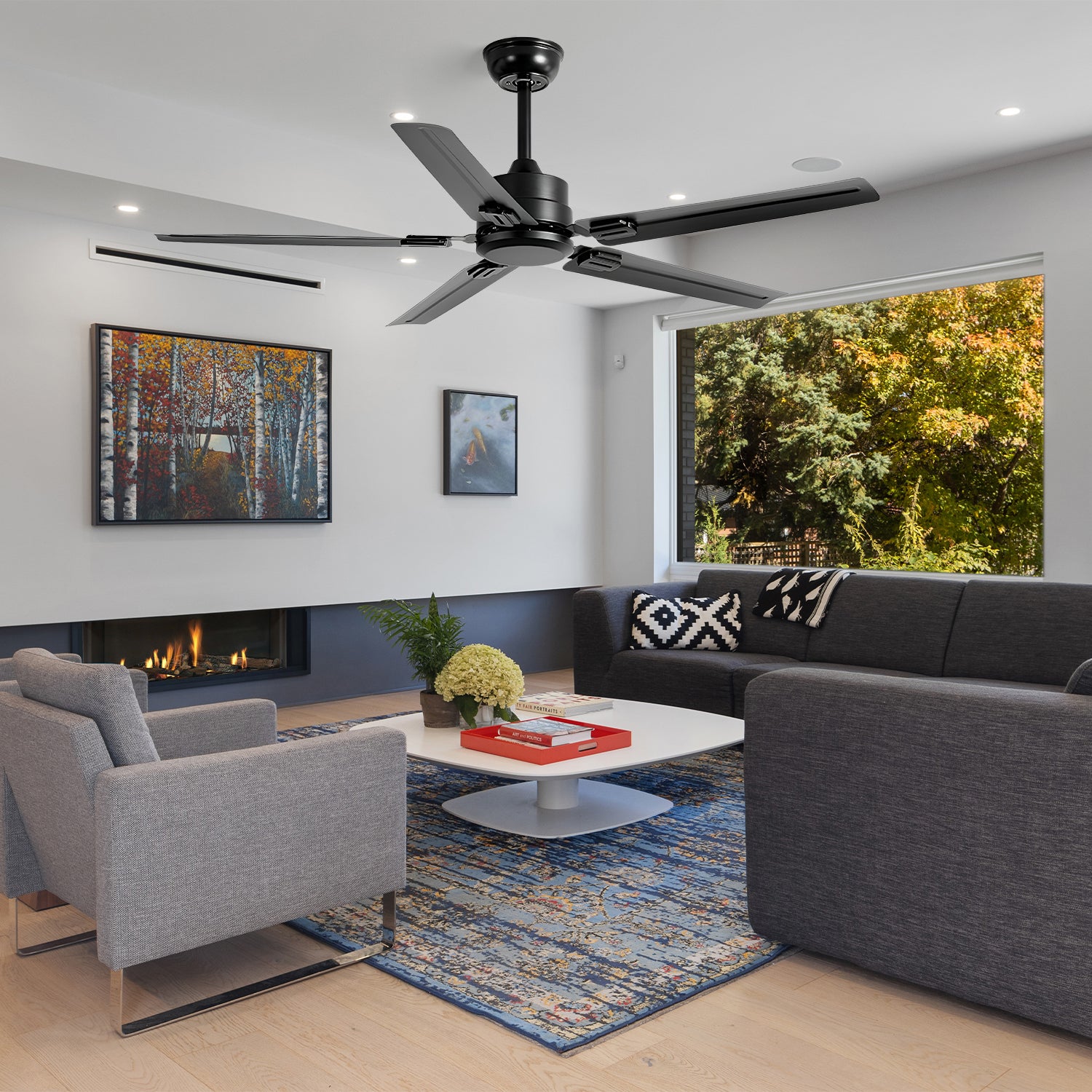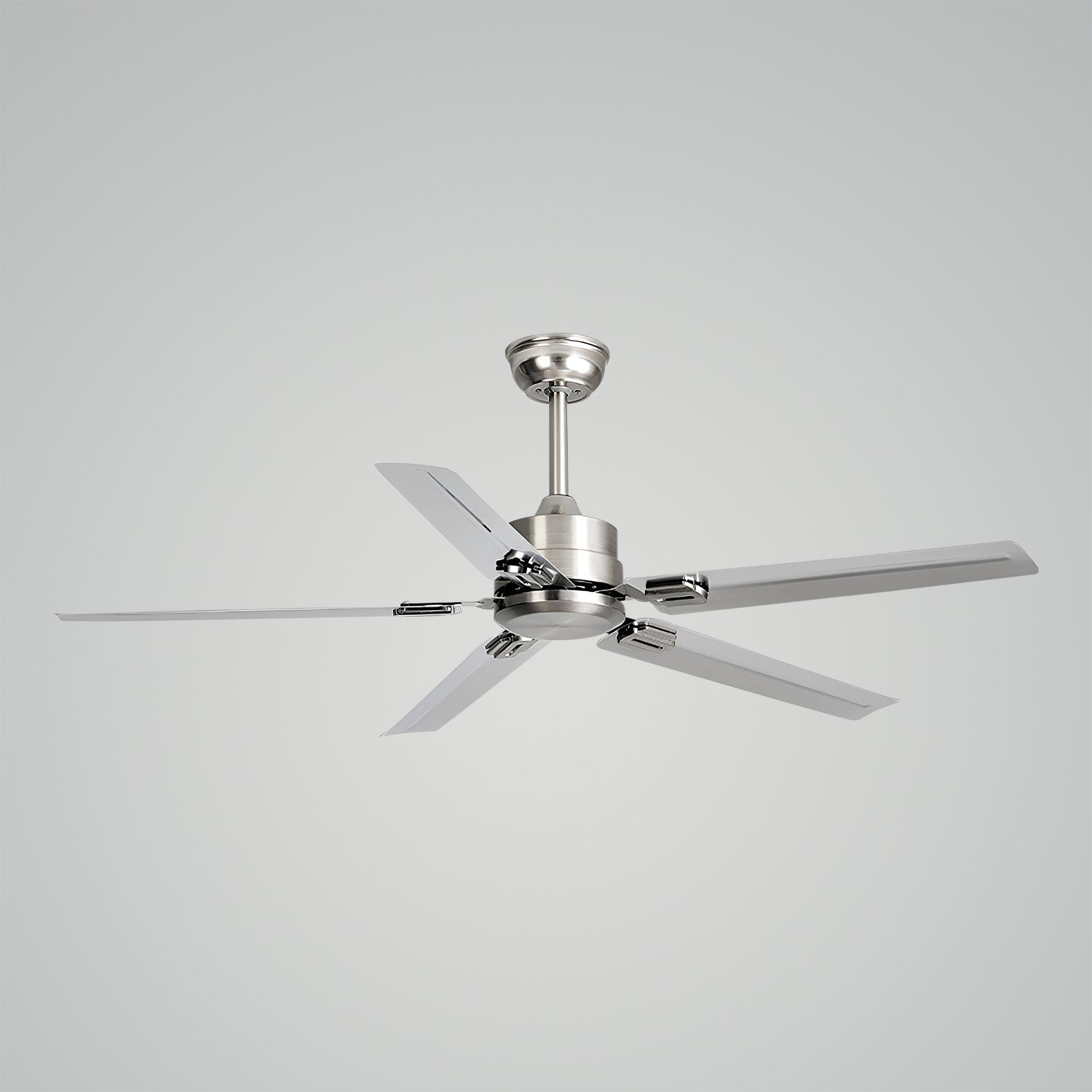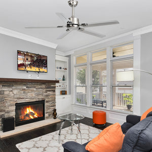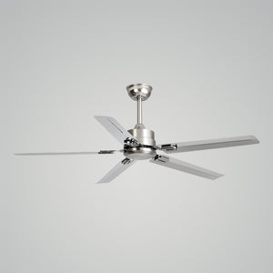 Introducing the Rozzen Ceiling Fan, where functionality meets modern design. This fan combines the industrial strength of metal blades with a contemporary chrome finish, ensuring it not only moves air efficiently but also serves as a stylish addition to your space. The streamlined design boasts a minimalist appeal, making it suitable for a range of interiors from the ultra-modern to the subtly sophisticated. Elevate your home's comfort and style with the cool breeze and sleek look of the SleekStream Chrome Ceiling Fan.