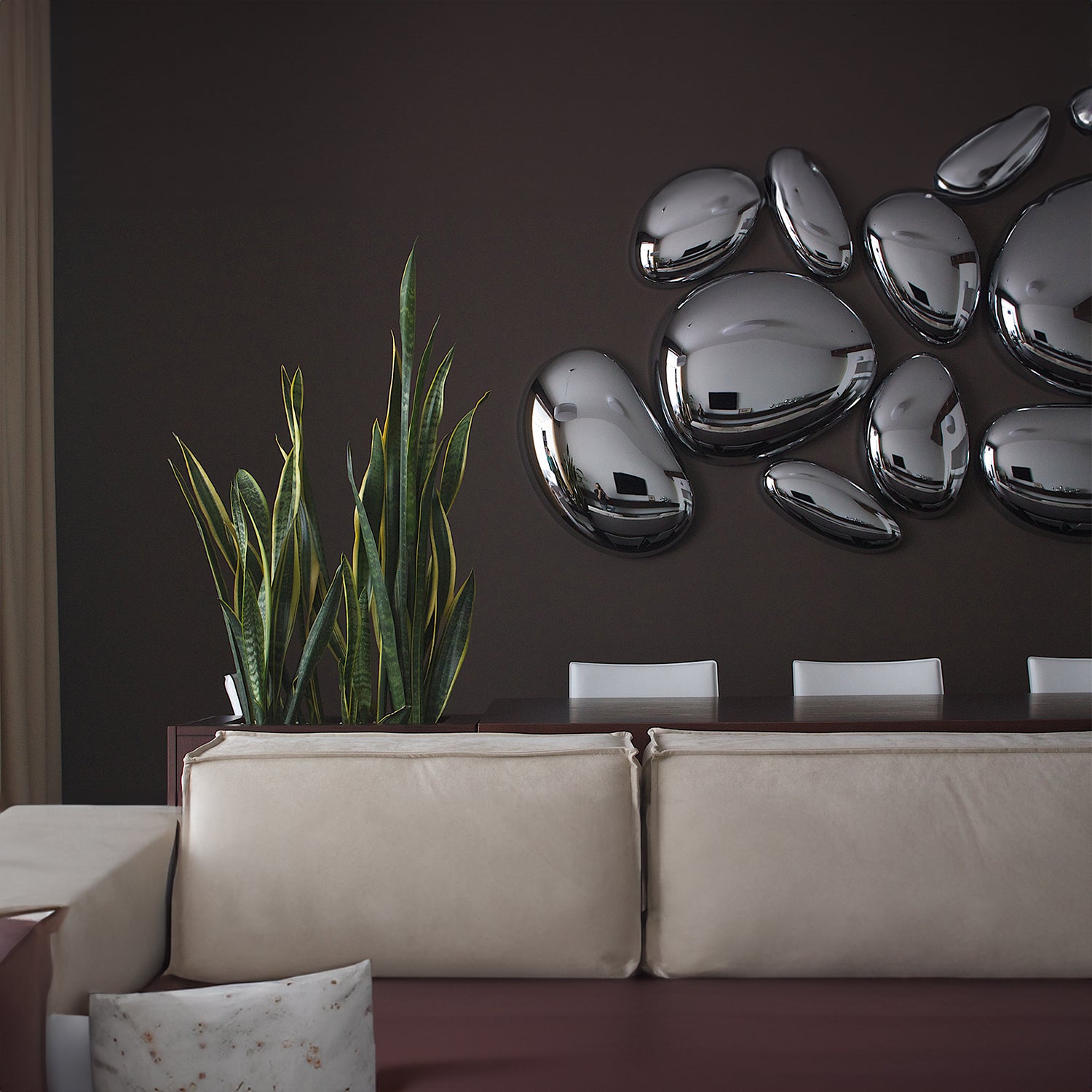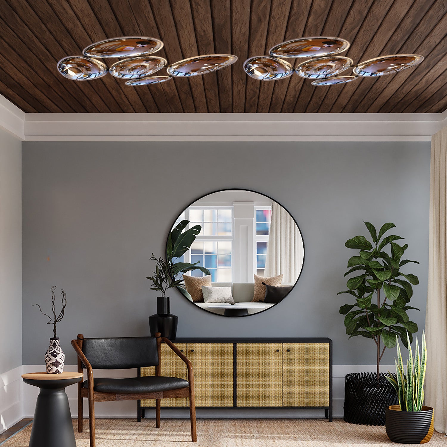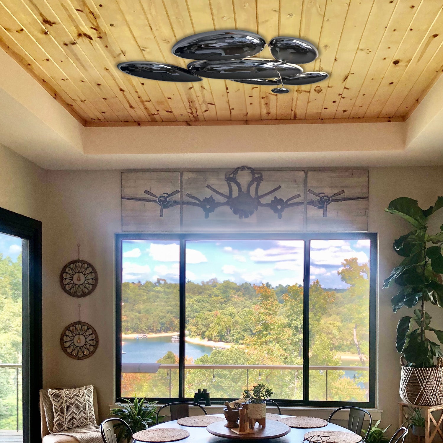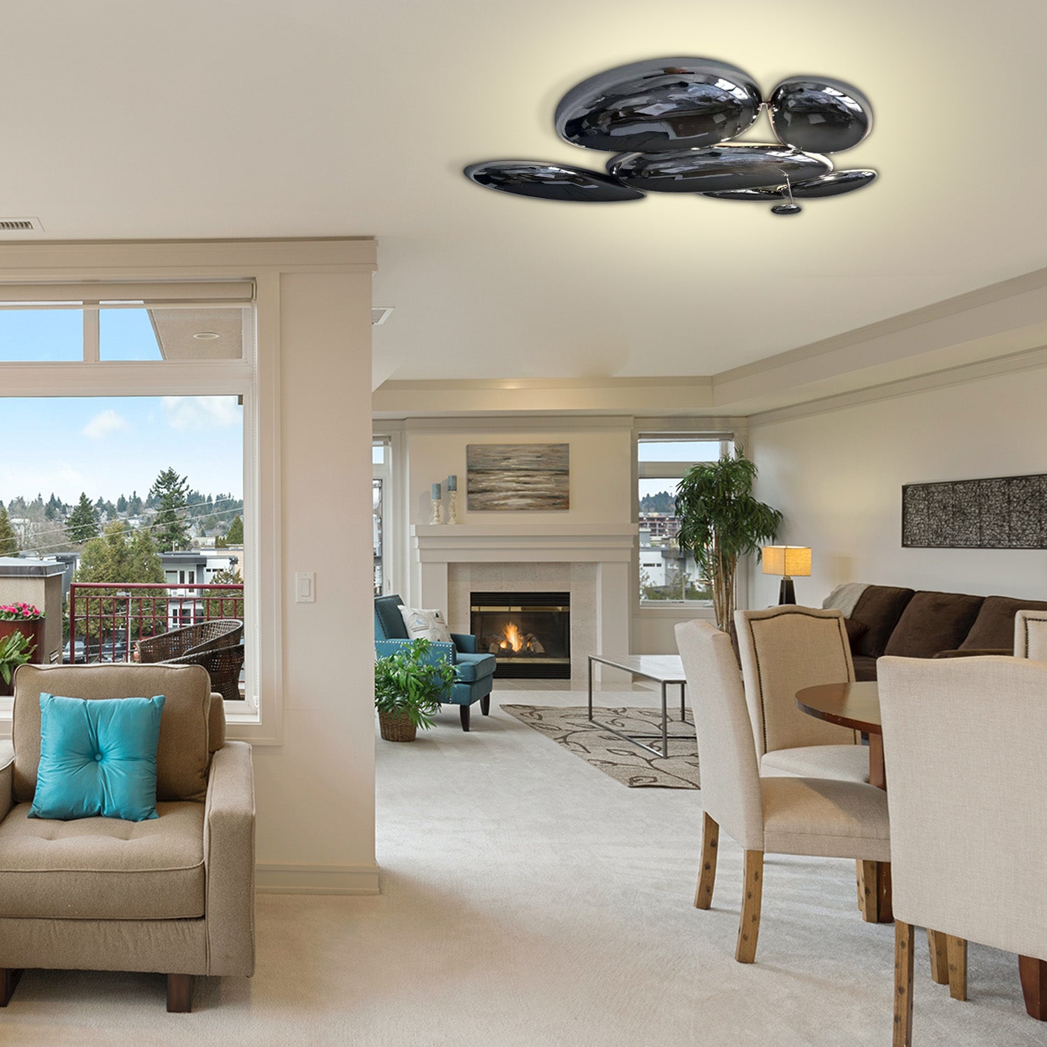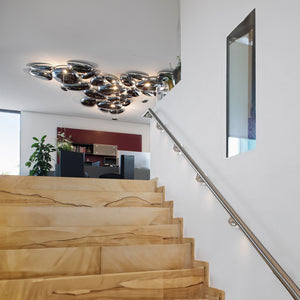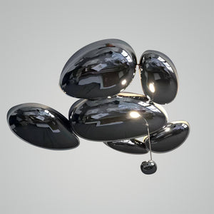 Introducing the 'Skydro Ceiling Lamp,' a futuristic fusion of light and form that transforms any room into a visionary space. Mimicking the fluidity and luster of mercury, this stunning fixture features a cluster of polished, organic shapes that appear to float effortlessly against the ceiling. Embedded with energy-efficient LED lights, the Mercury Cloud casts a soft, even glow, creating an inviting ambiance while making a bold design statement. It's an ideal lighting solution for those who dare to impress with a touch of modern sophistication and sleek, reflective elegance.