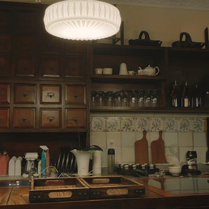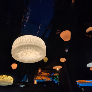 Discover the charm of the "Souffle Ceiling Lamp ," a light fixture that marries classic design with modern flair. Its intricate lattice pattern and pristine ivory finish evoke a timeless elegance, while its flush mount design makes it an excellent choice for spaces with lower ceilings. This light is not just a source of illumination but a statement piece that can transform any room into a showcase of intricate design and soft, ambient lighting. Whether you're looking to add a touch of sophistication to your entryway, bedroom, or living area, the Lattice Radiance Flush Mount is sure to impress with its detailed craftsmanship and beautiful glow. Bring a classic yet contemporary touch to your home decor with this exquisite ceiling light.