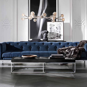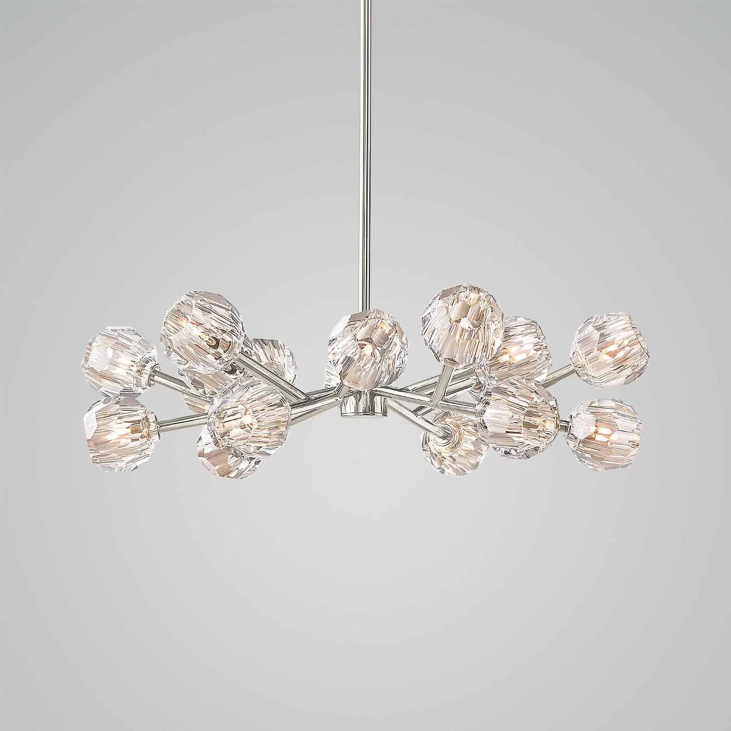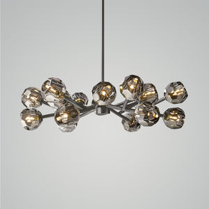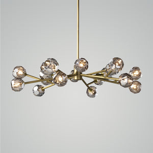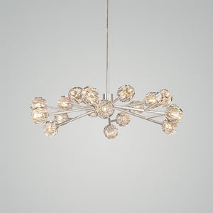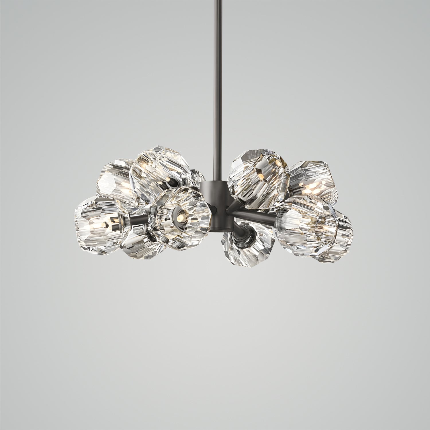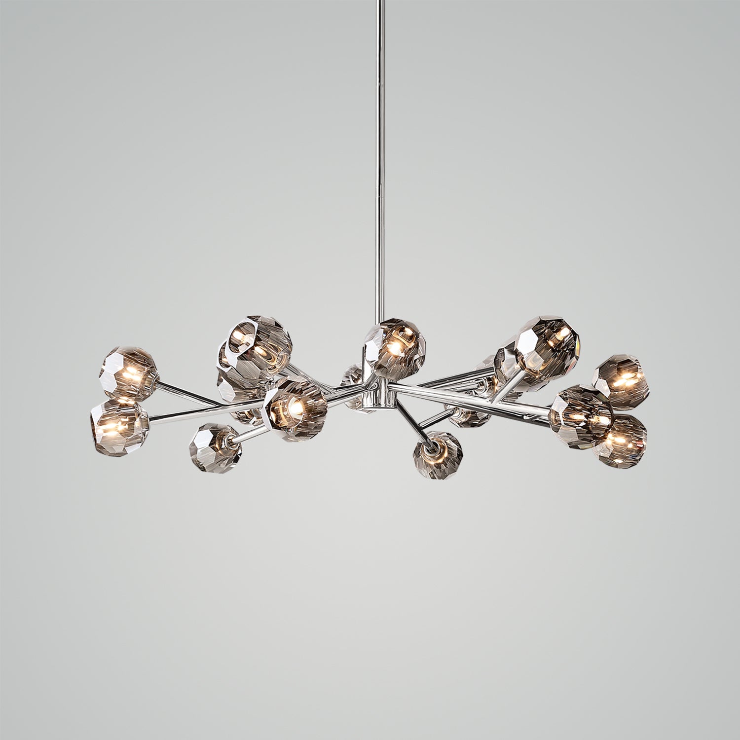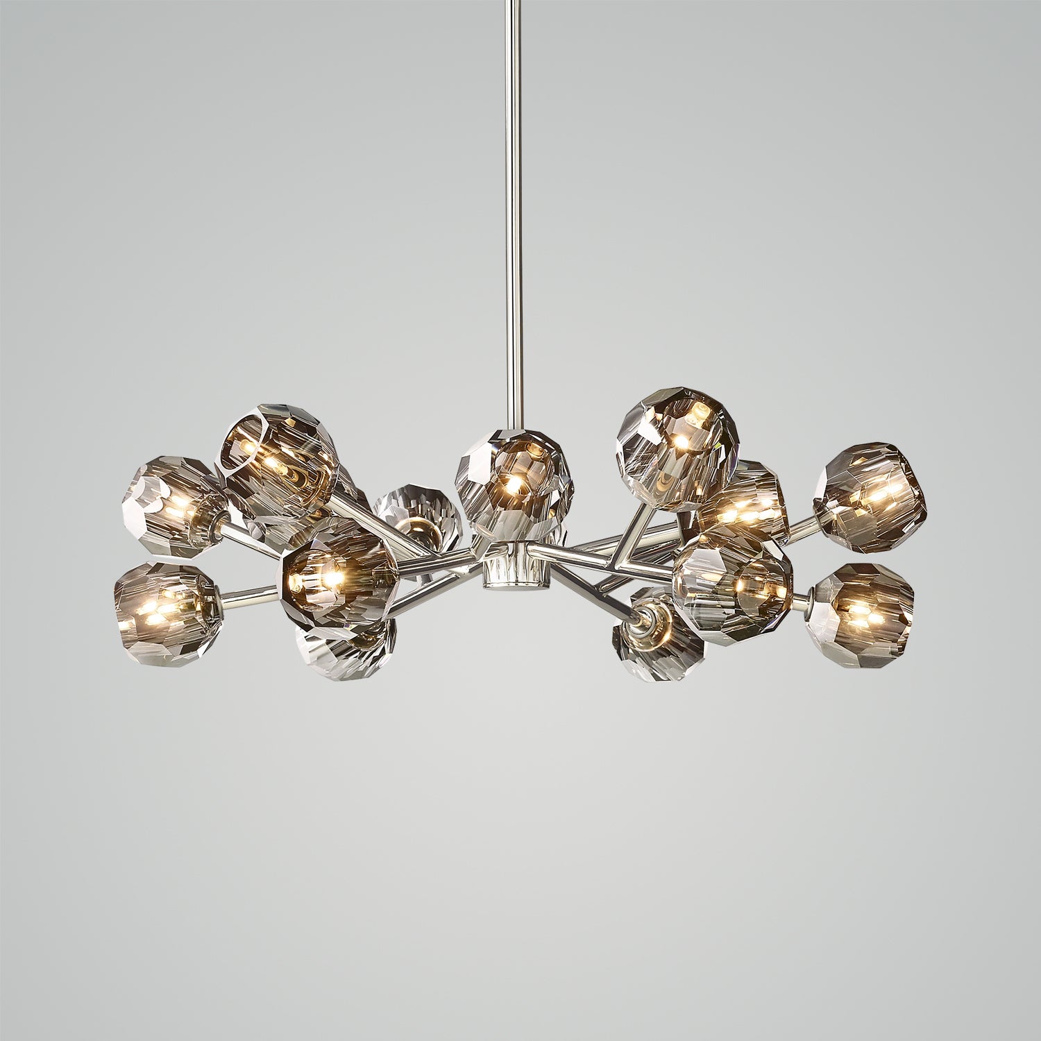 This sculptural fixture is crafted from solid brass and crystal glass, showcasing a passion for luxurious materials and superior craftsmanship. Each finely faceted sphere is hand-ground and polished to reflect and refract light, evoking the minimalist spirit of 1960s design.