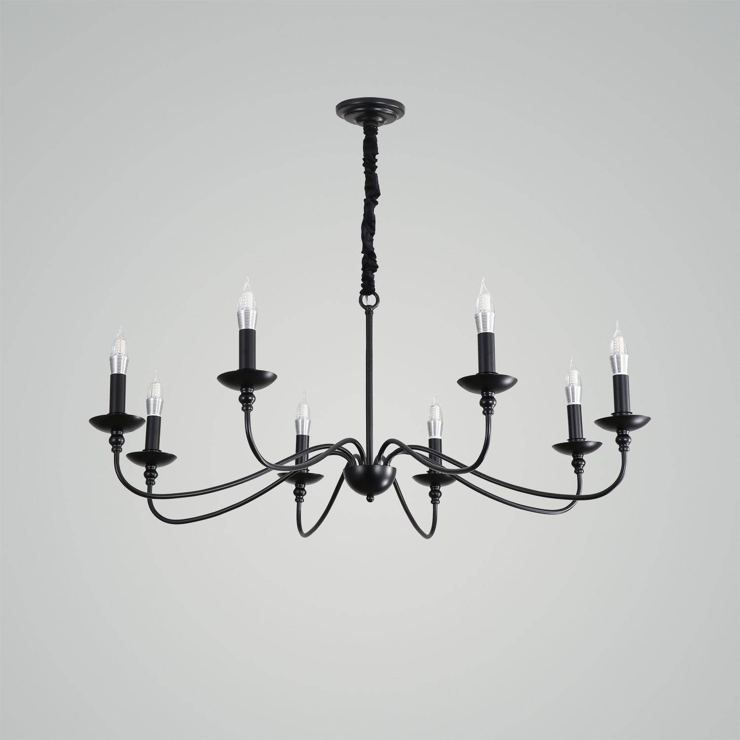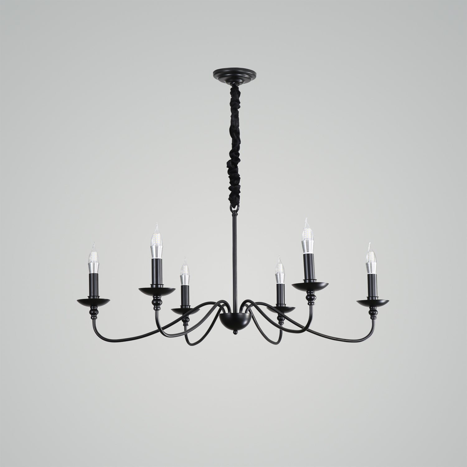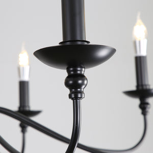 The traditional chandelier features a classic and elegant design, with multiple arms extending from a central frame, typically crafted from metal with intricate detailing. Its timeless style is perfect for adding a touch of sophistication to dining rooms, entryways, or living spaces. The chandelier usually comes with candle-style bulbs, creating a warm and inviting atmosphere while complementing traditional or transitional interiors. Its durable construction and refined appearance make it a standout piece in any home.