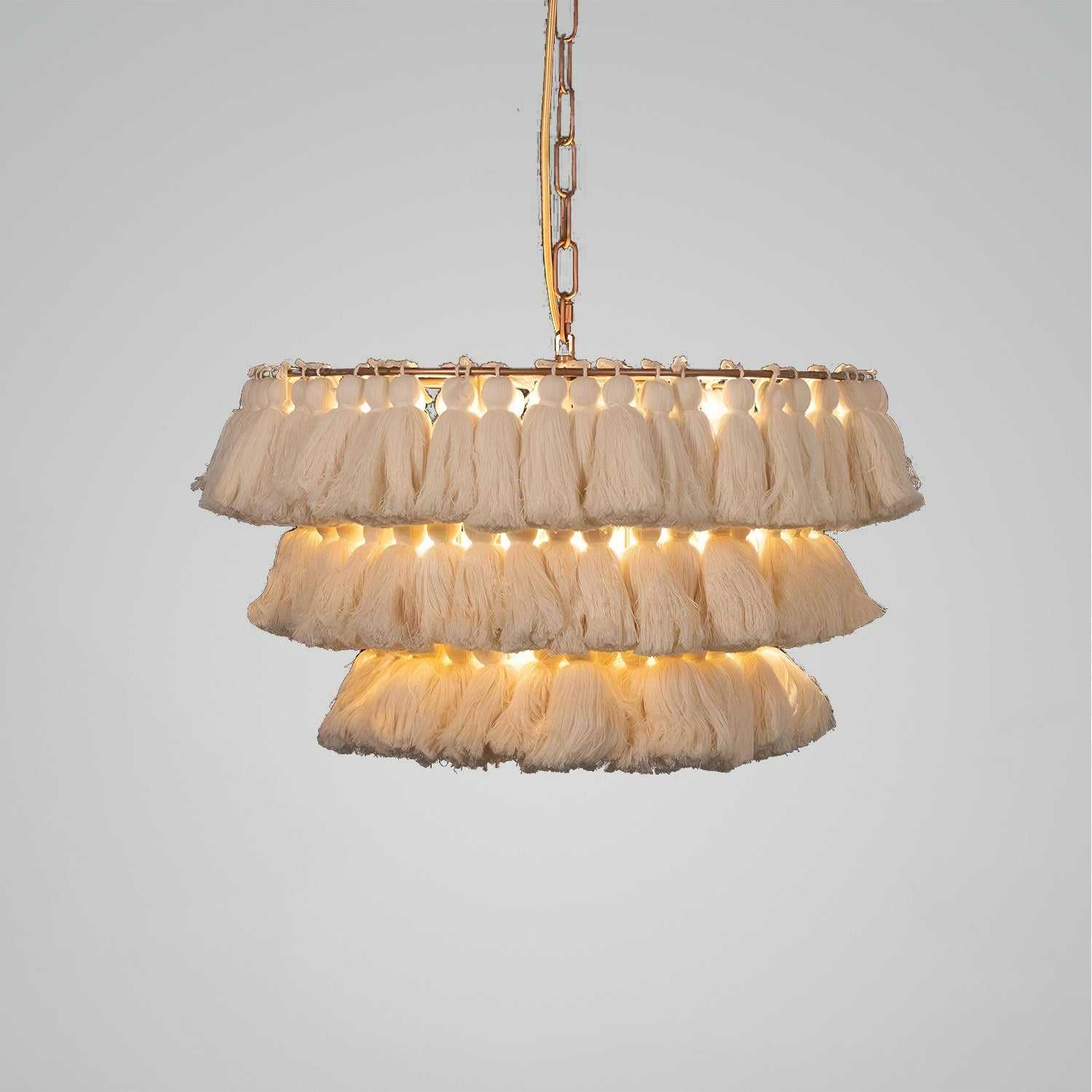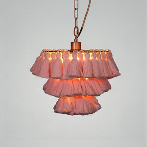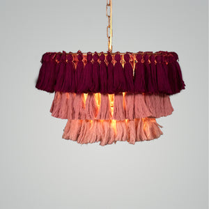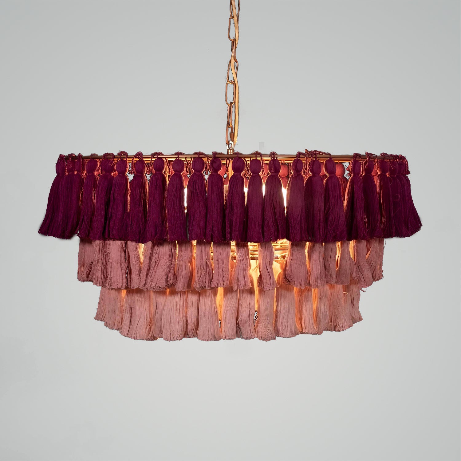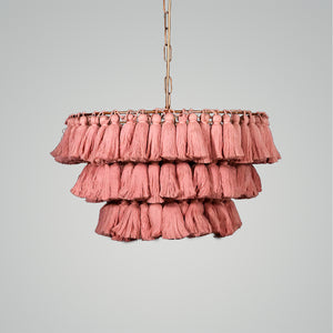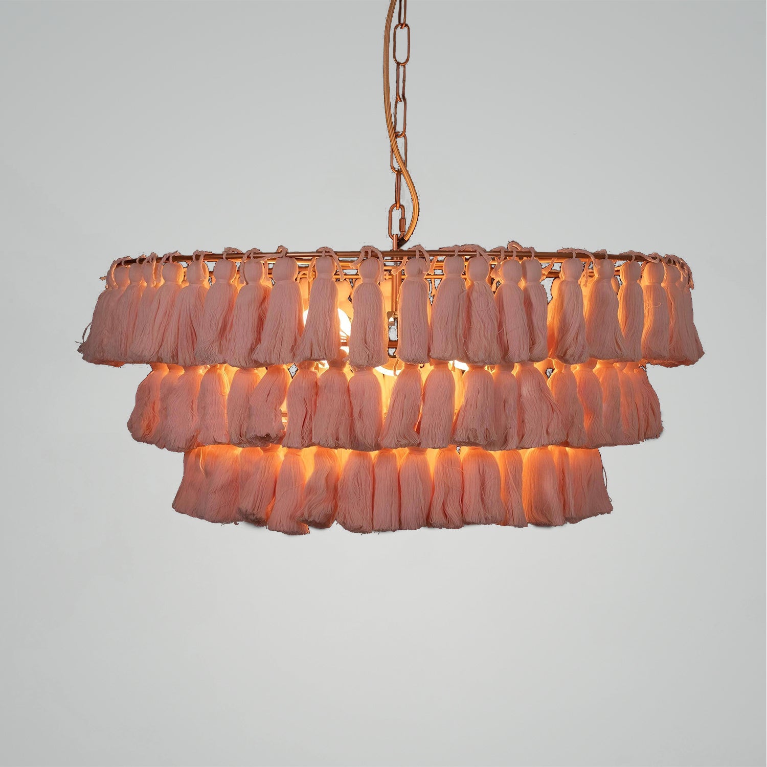 Introducing the Fela Tassel Chandelier, a playful yet elegant fixture that brings a soft, textural touch to any space. Draped in layers of delicate blush tassels, this chandelier exudes a cozy, bohemian charm that's both warm and inviting. The cascading design adds a sense of movement and whimsy, while the golden hardware offers a hint of luxury. Perfect for adding a statement to your dining room, living area, or bedroom, the Blush Tassel Tiered Chandelier is sure to become the centerpiece of any room.