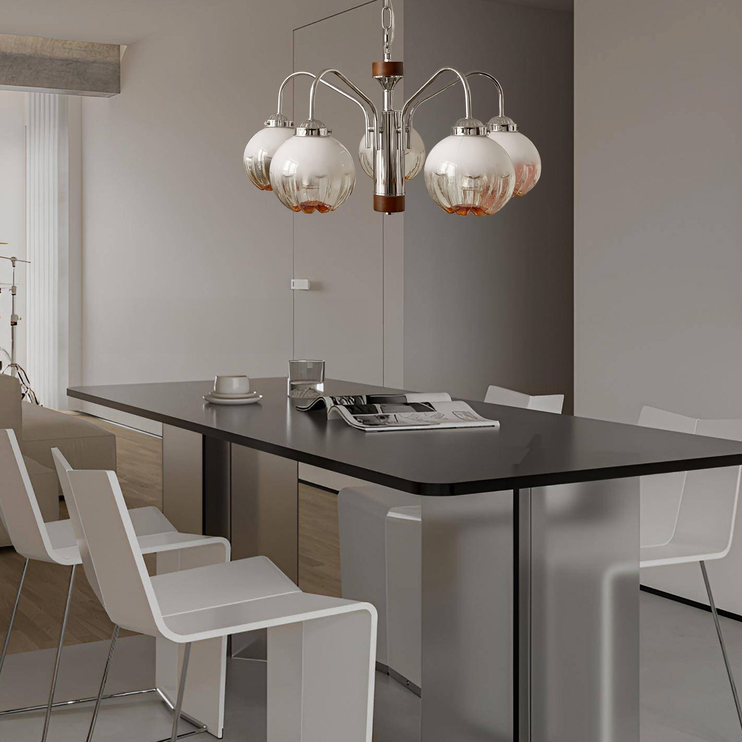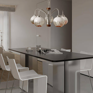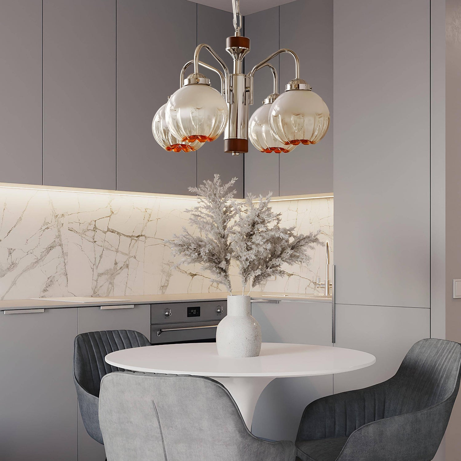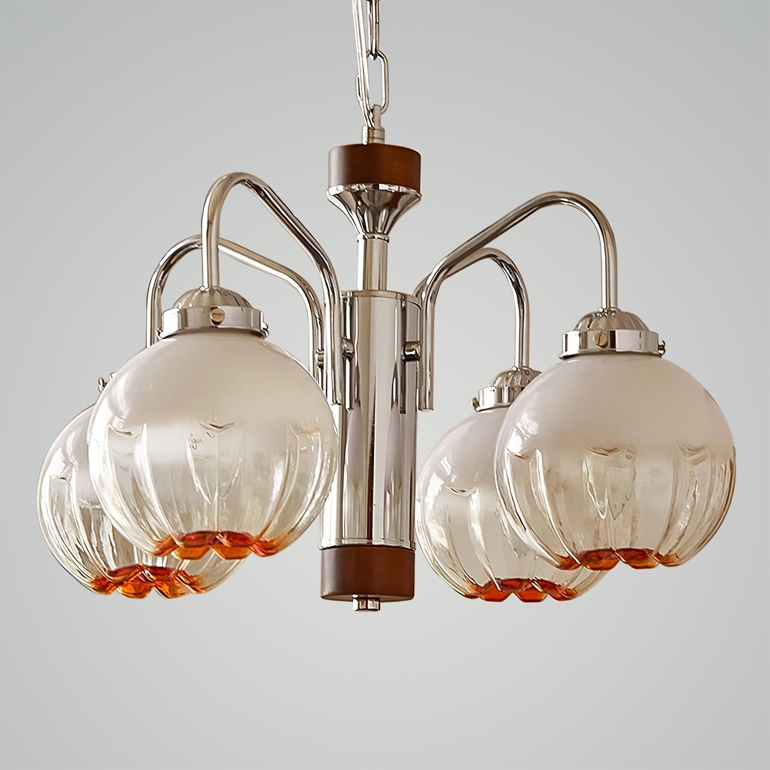 Cast a warm and welcoming light in your home with the 'Flower Bud Chandelier.' This striking piece combines the rustic charm of American country style with the sophistication of striped glass detailing. Each orb is crafted to perfection, diffusing light to create a cozy atmosphere in any room. Whether it's hung above a dining table or in the heart of your living room, this chandelier is sure to add a touch of timeless elegance and a warm ambience to your space.