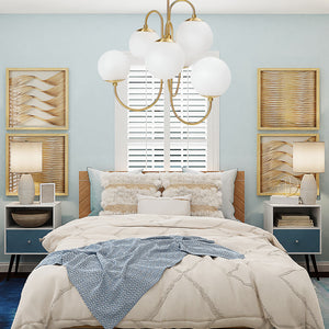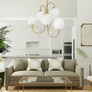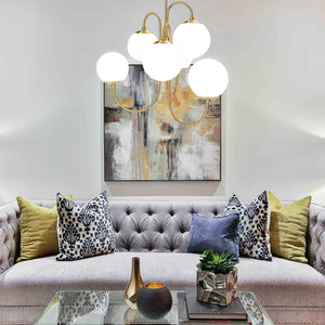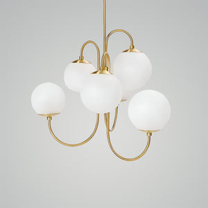 Introduce a golden touch of contemporary elegance to your decor with the Gooseneck Chandelier. This stunning piece features a constellation of white opal glass globes, each gracefully suspended by a sleek golden gooseneck. The chandelier's design allows for a harmonious distribution of light, casting a warm and inviting glow in any setting. Its modern yet timeless appeal makes it a versatile addition to both classic and avant-garde interiors. Add this chandelier to your space for an instant uplift in style and ambiance.
