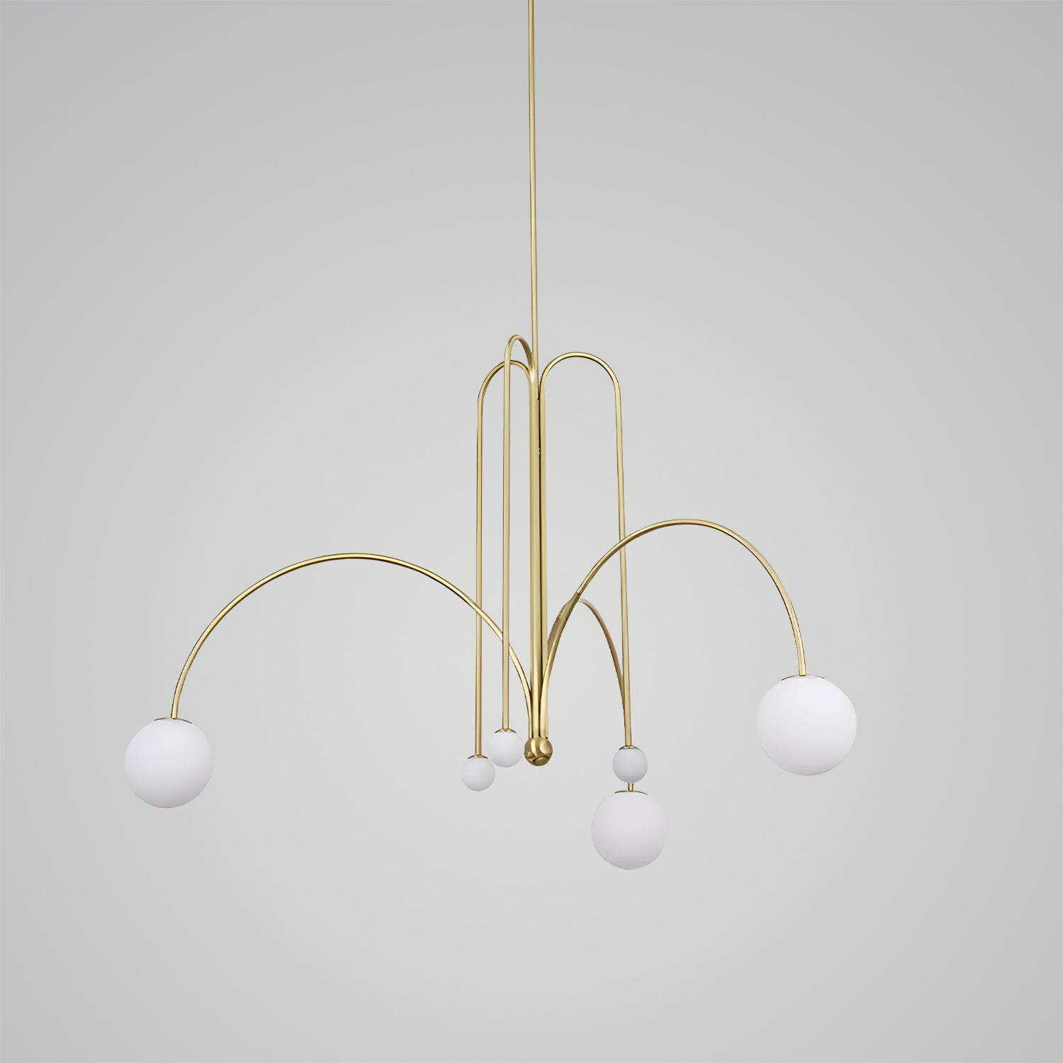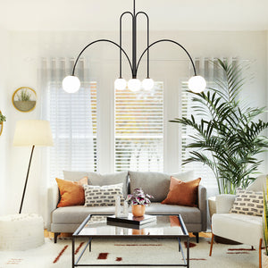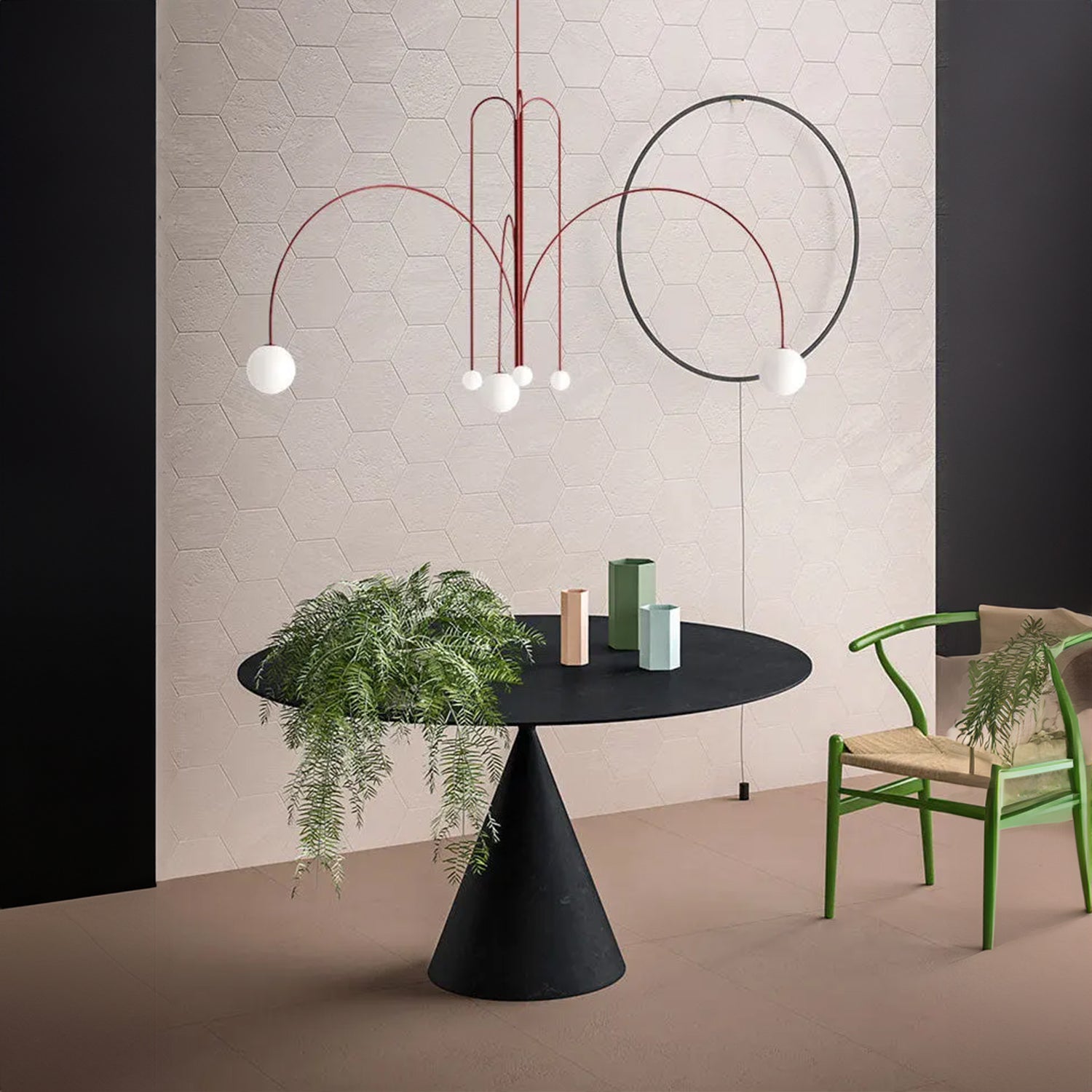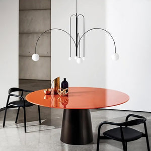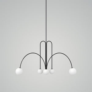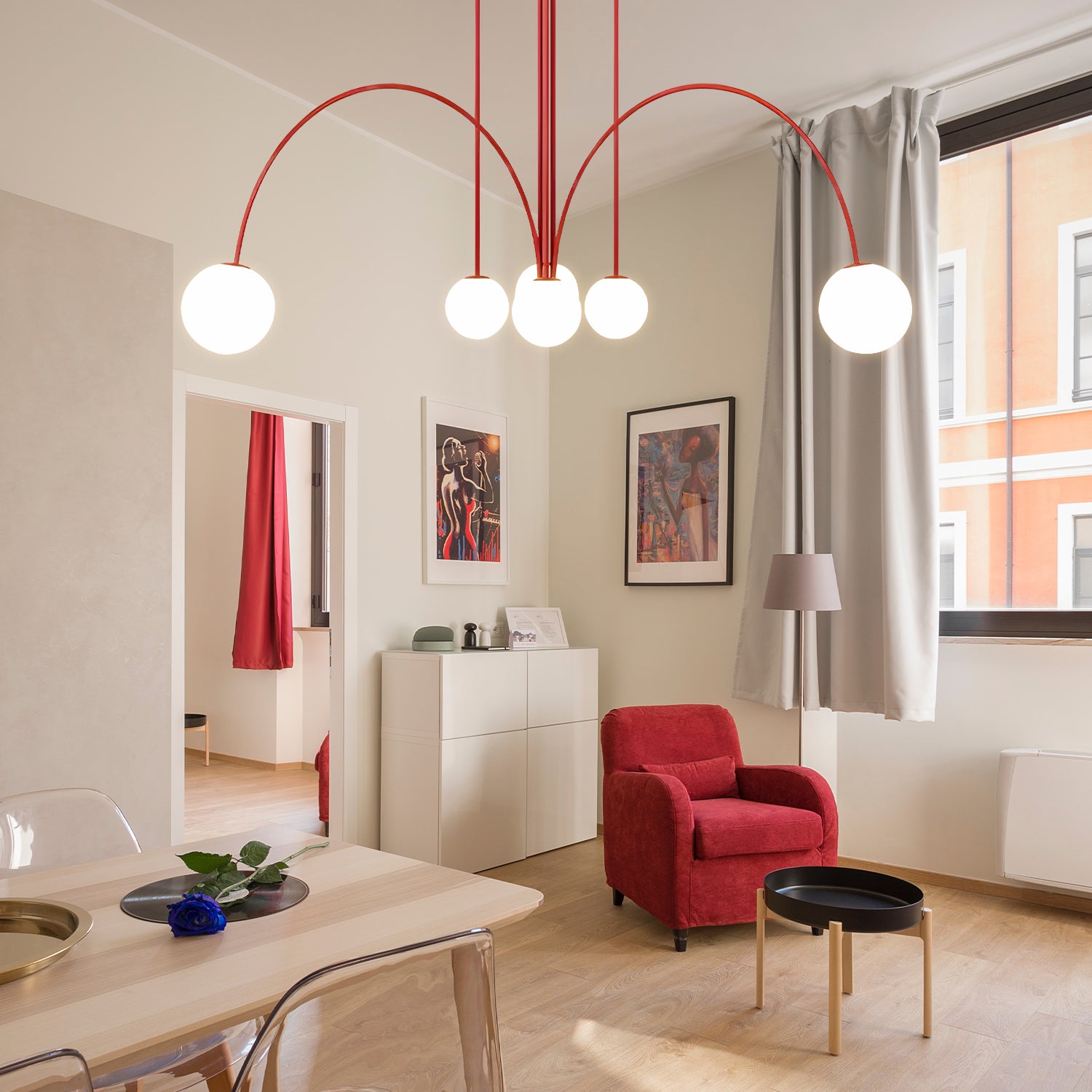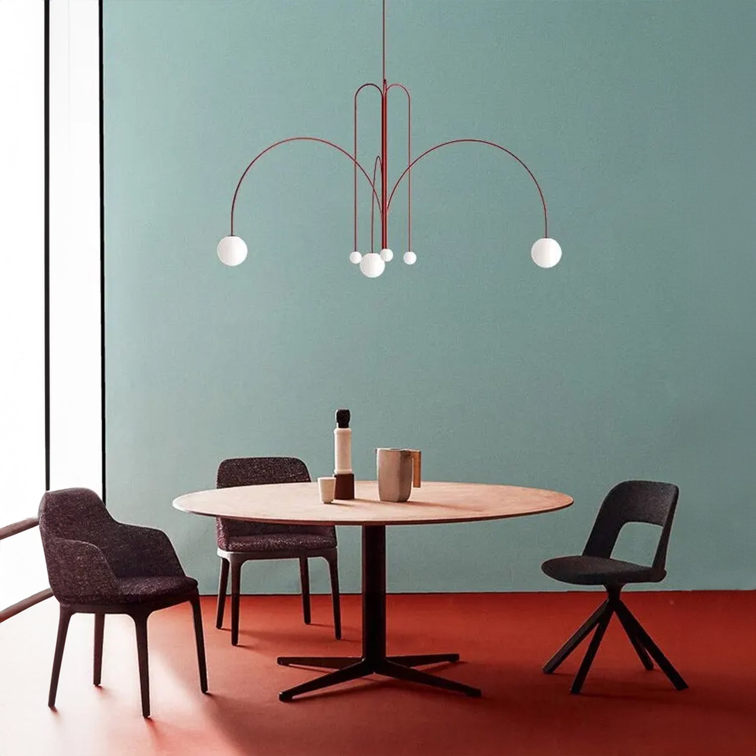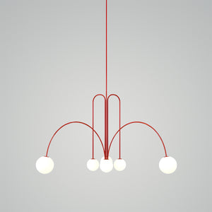 Step into a world of contemporary elegance with the "Gran Finale Suspension Chandelier". This avant-garde centerpiece embodies the perfect blend of function and high-fashion flair. Its sleek red lines curve delicately, presenting a dance of light with each frosted globe. Ideal for the chic minimalist, this lighting fixture doesn't just illuminate—it inspires. Enliven your space with a touch of vibrant sophistication and let the Crimson Arcadia be the heartbeat of your home's decor.