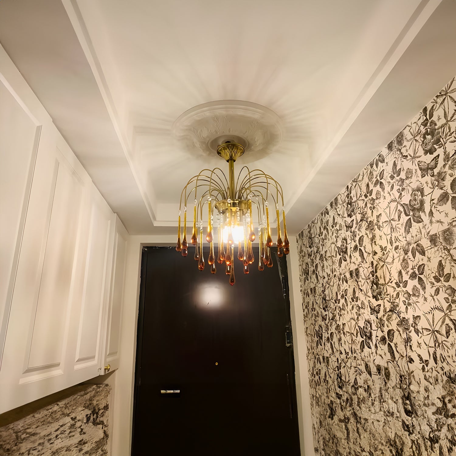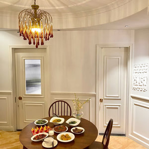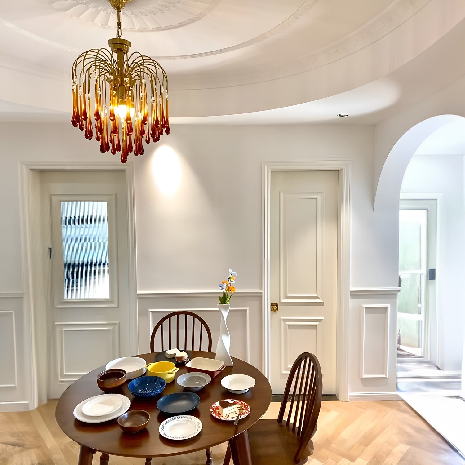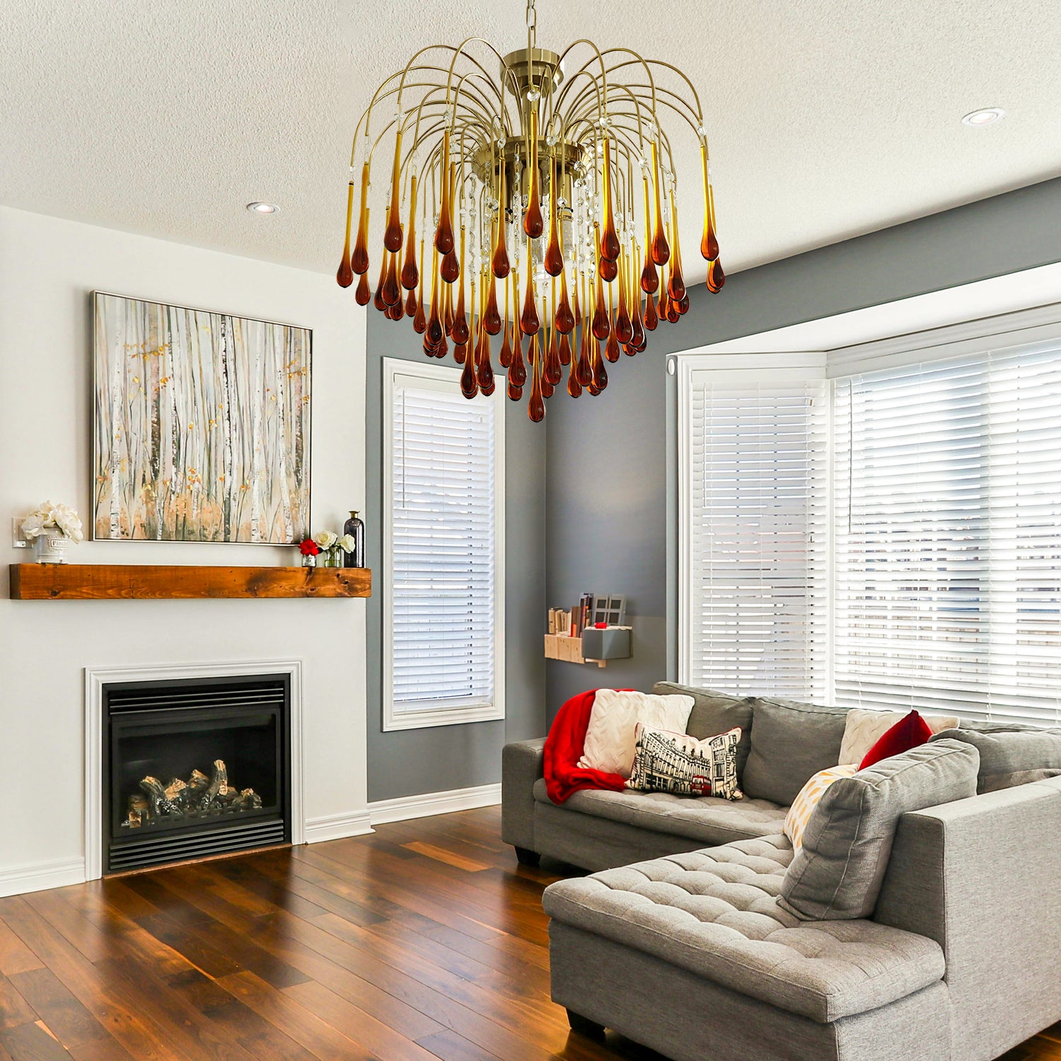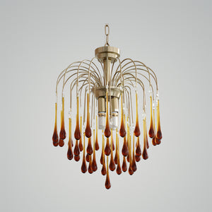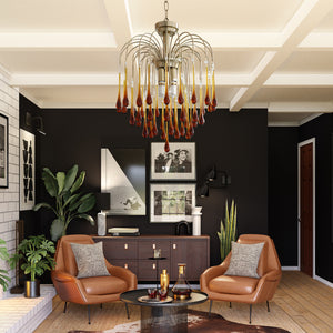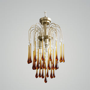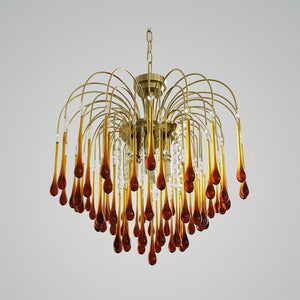 Discover the warmth and allure of the Maltose Chandelier, a masterpiece that brings a golden glow to any room. This chandelier is a blend of classic elegance and contemporary design, featuring amber-colored glass that resembles sweet maltose, cascading in a teardrop formation from a radiant golden frame. Each glass piece catches the light to create a welcoming ambiance, perfect for creating a focal point in your dining area or entryway. Elevate your home with this breathtaking piece that combines beauty with a touch of nostalgia.