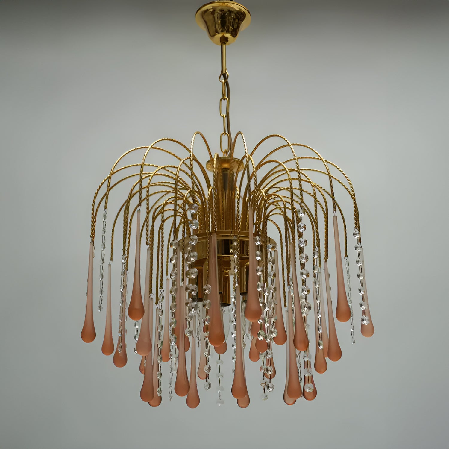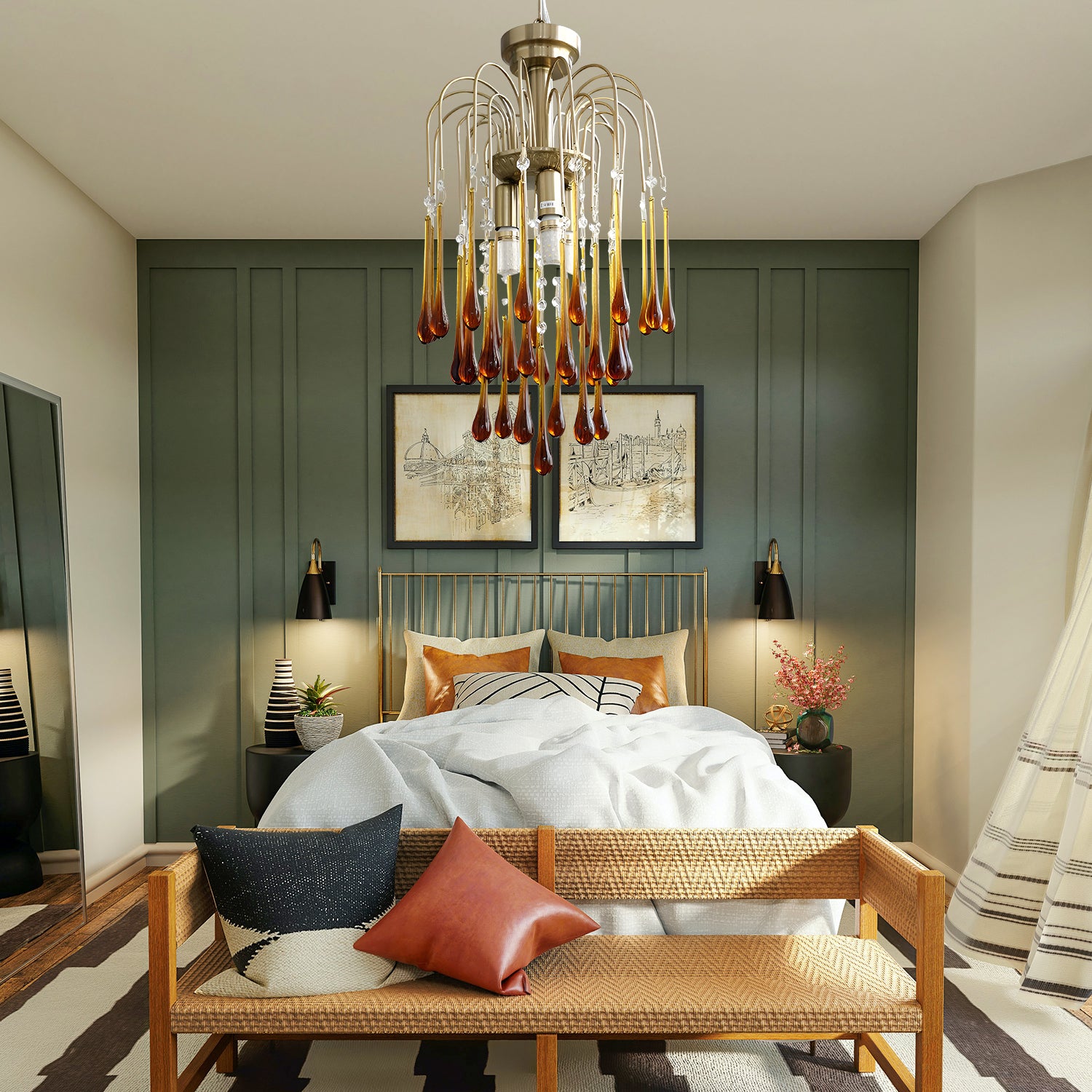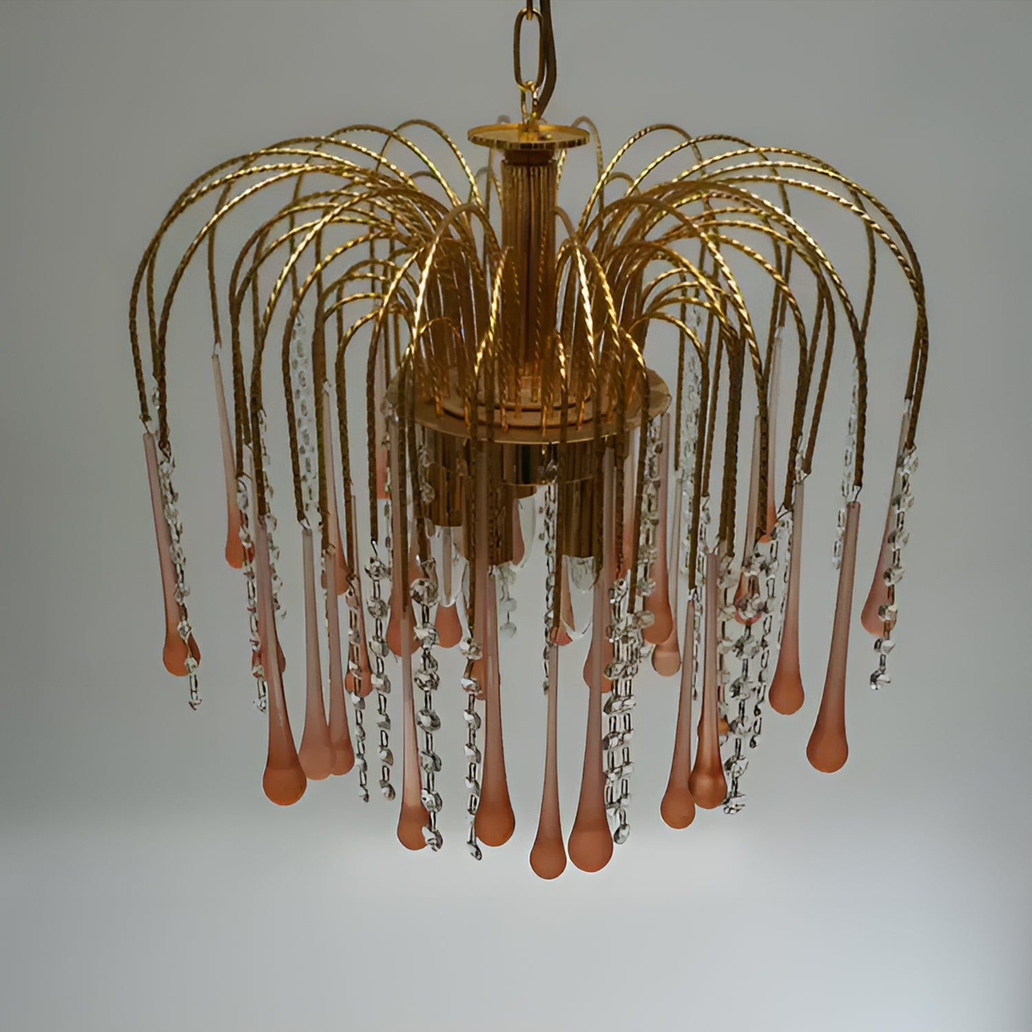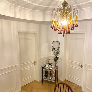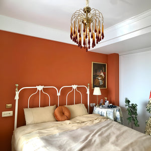 Discover the warmth and allure of the Maltose Chandelier, a masterpiece that brings a golden glow to any room. This chandelier is a blend of classic elegance and contemporary design, featuring amber-colored glass that resembles sweet maltose, cascading in a teardrop formation from a radiant golden frame. Each glass piece catches the light to create a welcoming ambiance, perfect for creating a focal point in your dining area or entryway. Elevate your home with this breathtaking piece that combines beauty with a touch of nostalgia.
