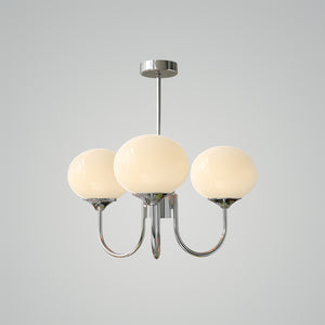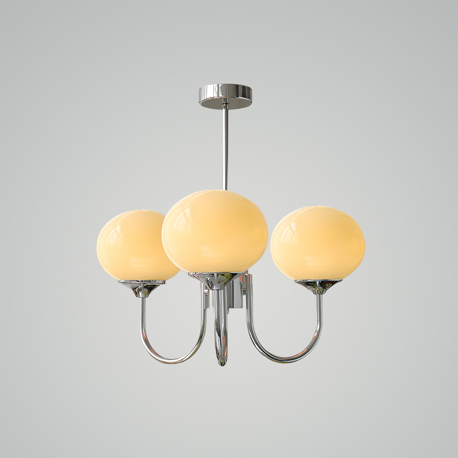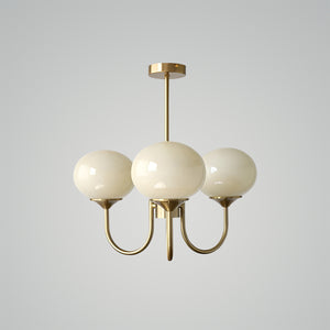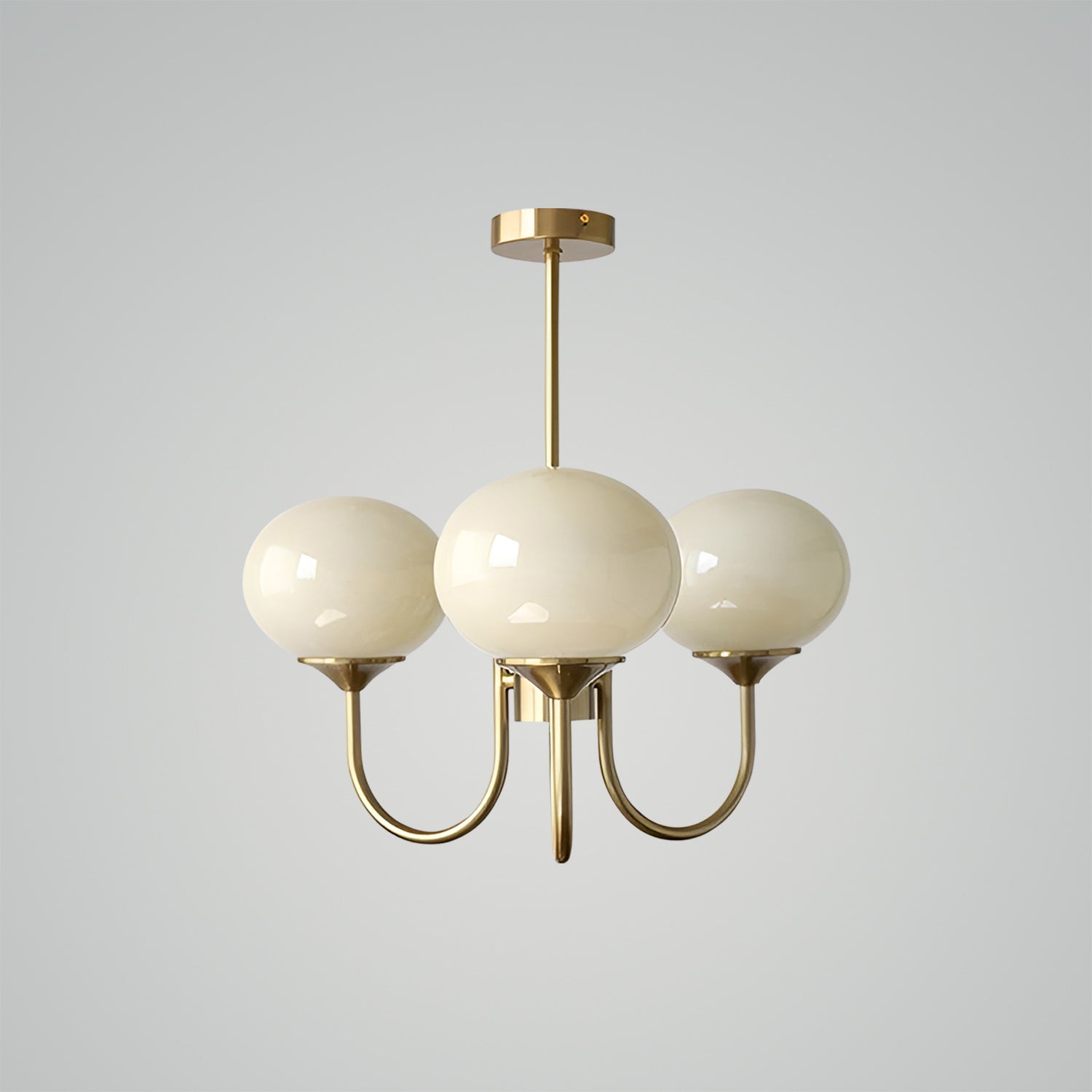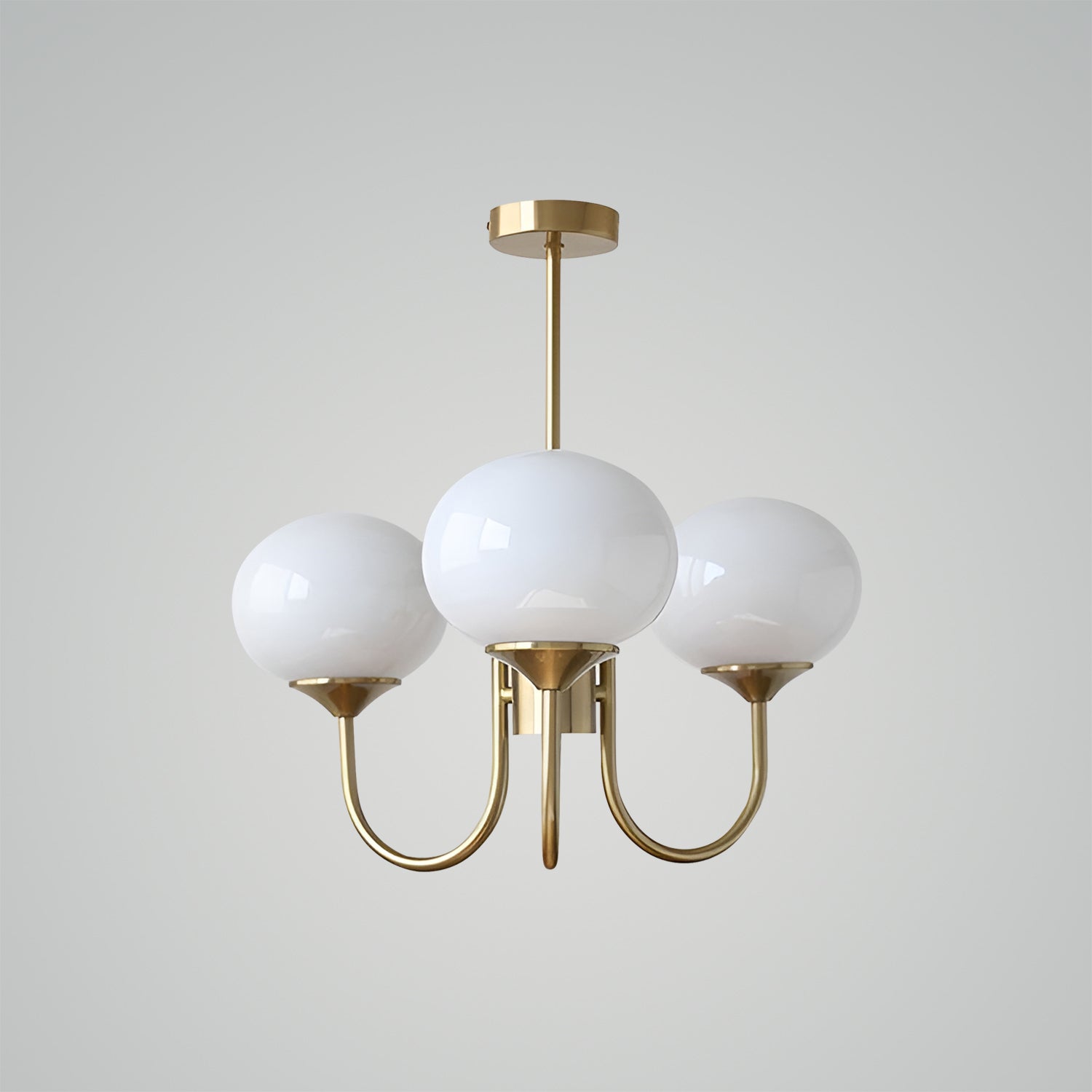 Introducing the Marshmallow Chandelier a masterpiece that transforms any room into a lavish sanctuary. This elegant chandelier, featuring three opulent spheres crafted from creamy glass, casts a warm, inviting glow that complements any modern or traditional decor. Supported by a sleek, golden frame, each globe is perfectly poised to reflect light with a soft, diffuse quality that enhances the ambiance of your dining room, entryway, or living space. Embrace the essence of sophistication with the Golden Globe Chandelier, and let your home shine with a touch of timeless grace.