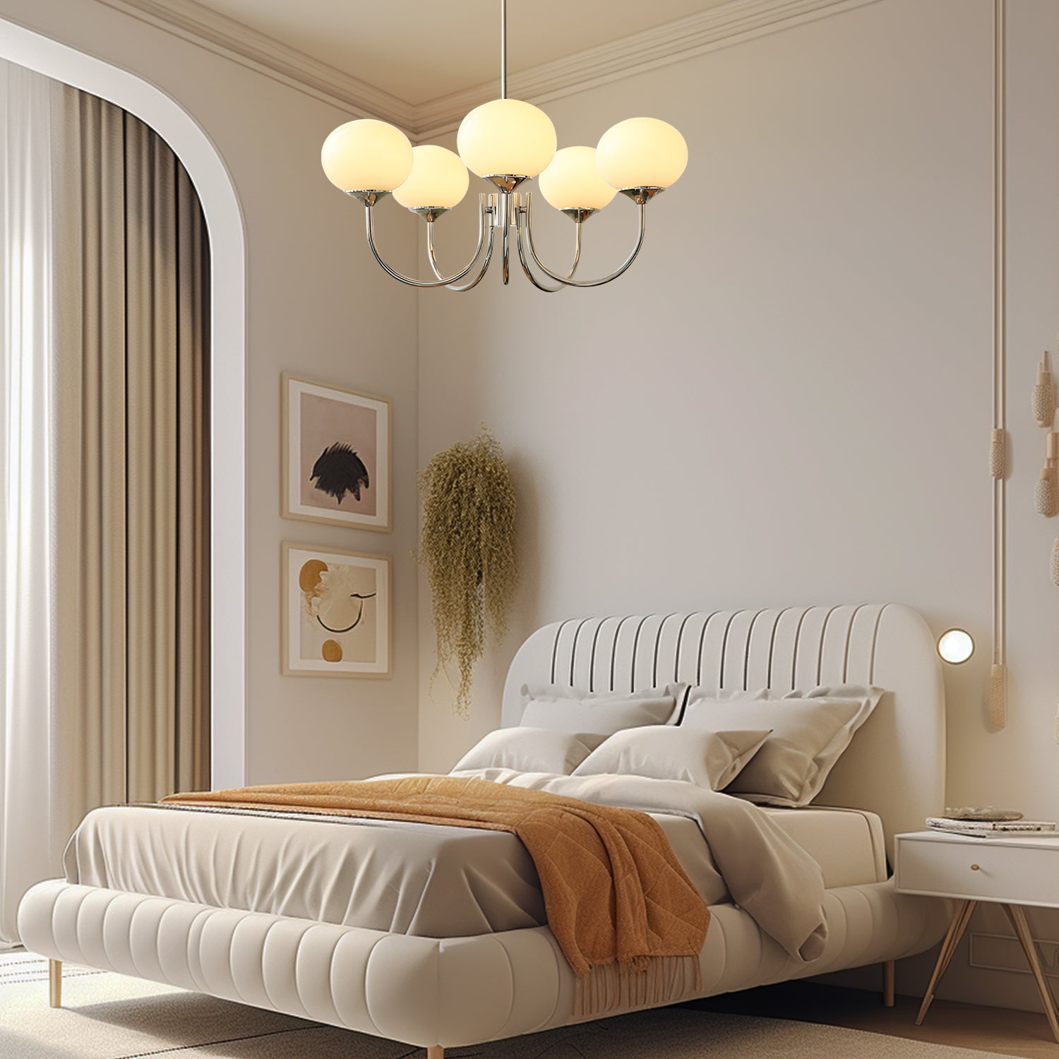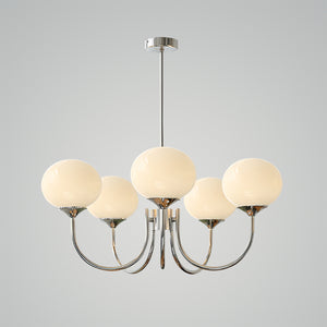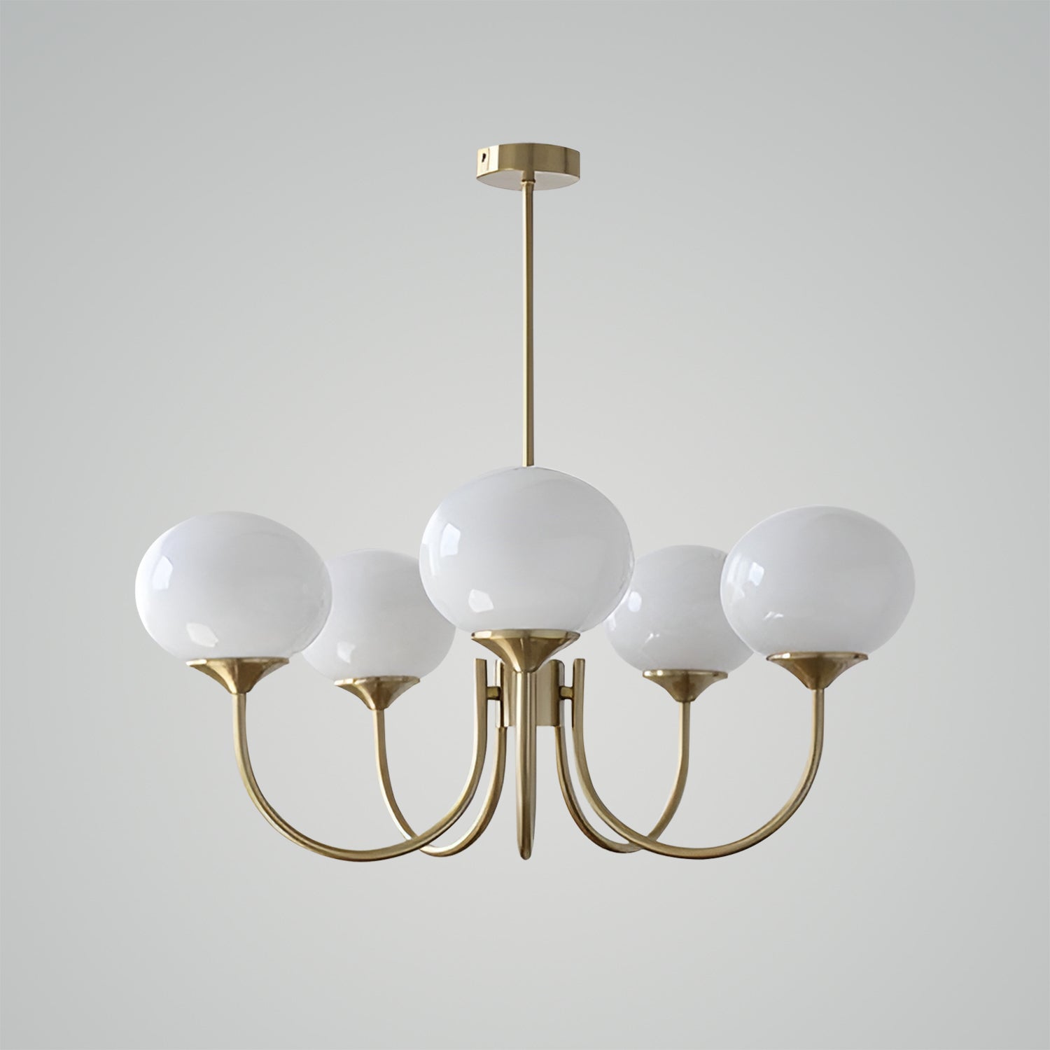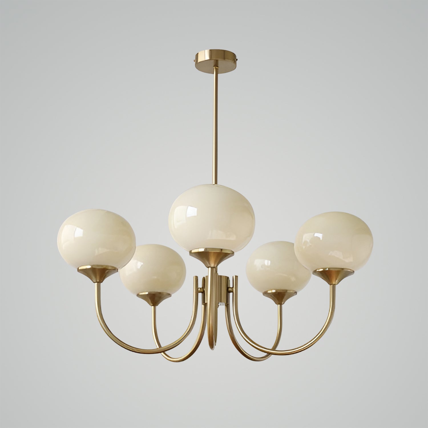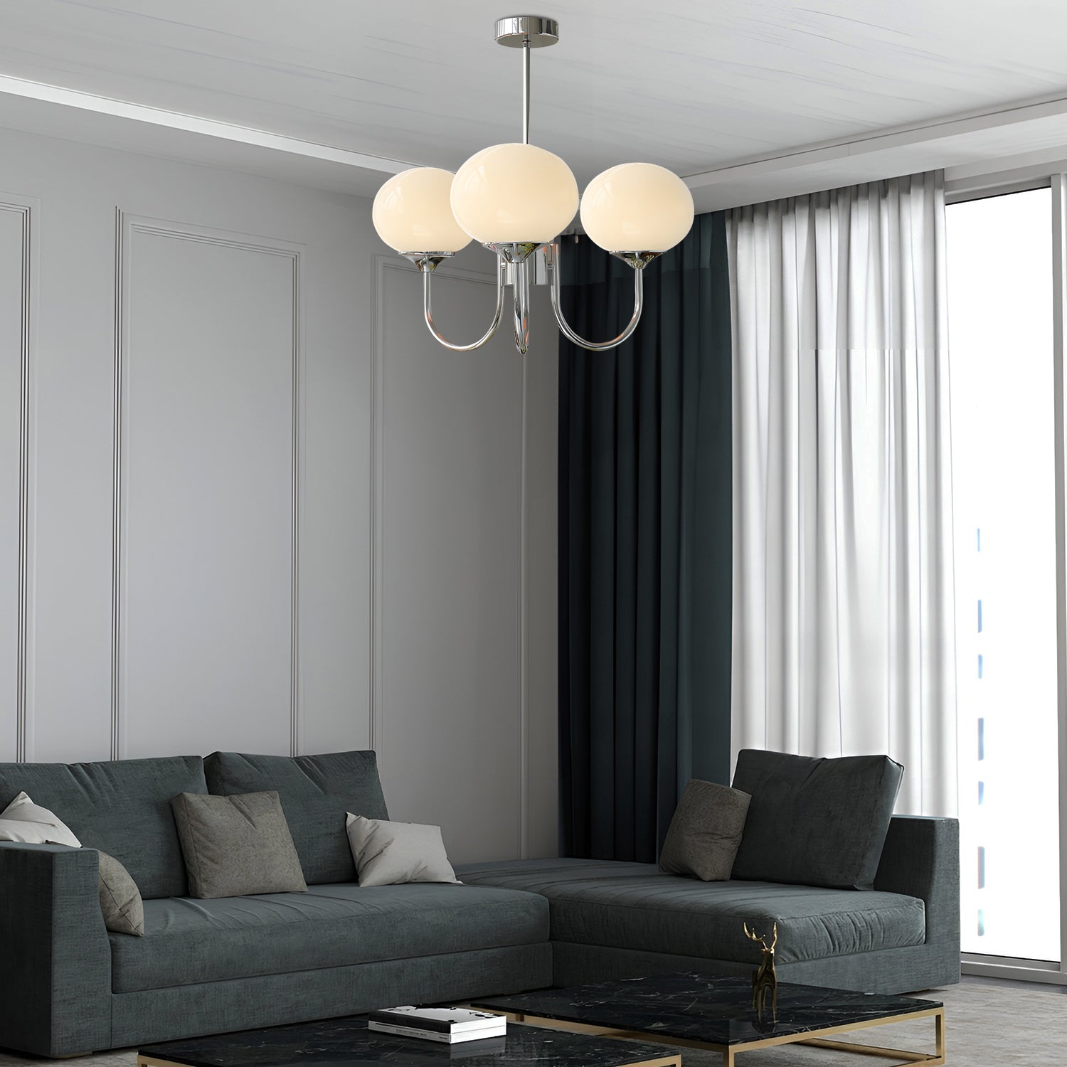Introducing the Marshmallow Chandelier a masterpiece that transforms any room into a lavish sanctuary. This elegant chandelier, featuring three opulent spheres crafted from creamy glass, casts a warm, inviting glow that complements any modern or traditional decor. Supported by a sleek, golden frame, each globe is perfectly poised to reflect light with a soft, diffuse quality that enhances the ambiance of your dining room, entryway, or living space. Embrace the essence of sophistication with the Golden Globe Chandelier, and let your home shine with a touch of timeless grace.
