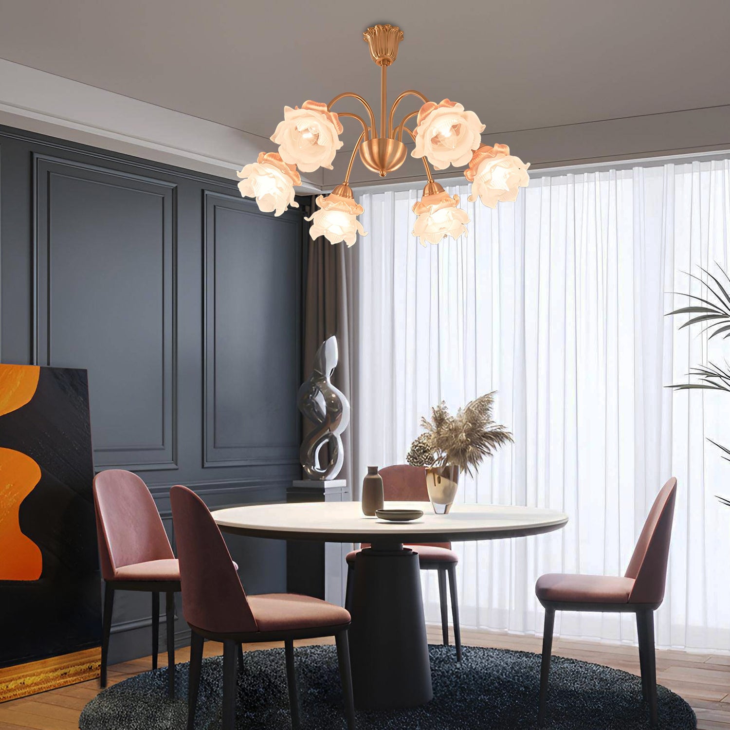 Discover the charm of the "Roses Chandelier," where timeless beauty and refined grace come together. Inspired by the American country aesthetic, this chandelier boasts a bouquet of delicate rose-shaped lights, crafted to spread a warm and inviting glow in your space. Each petal is designed to capture and reflect light, creating a dance of brilliance and shadows. Perfect for those who appreciate floral elegance and wish to infuse their home with a soft, romantic ambiance. Let the "Blossom Elegance Chandelier" transform your dining room, foyer, or living area into a picturesque scene straight out of a country manor.