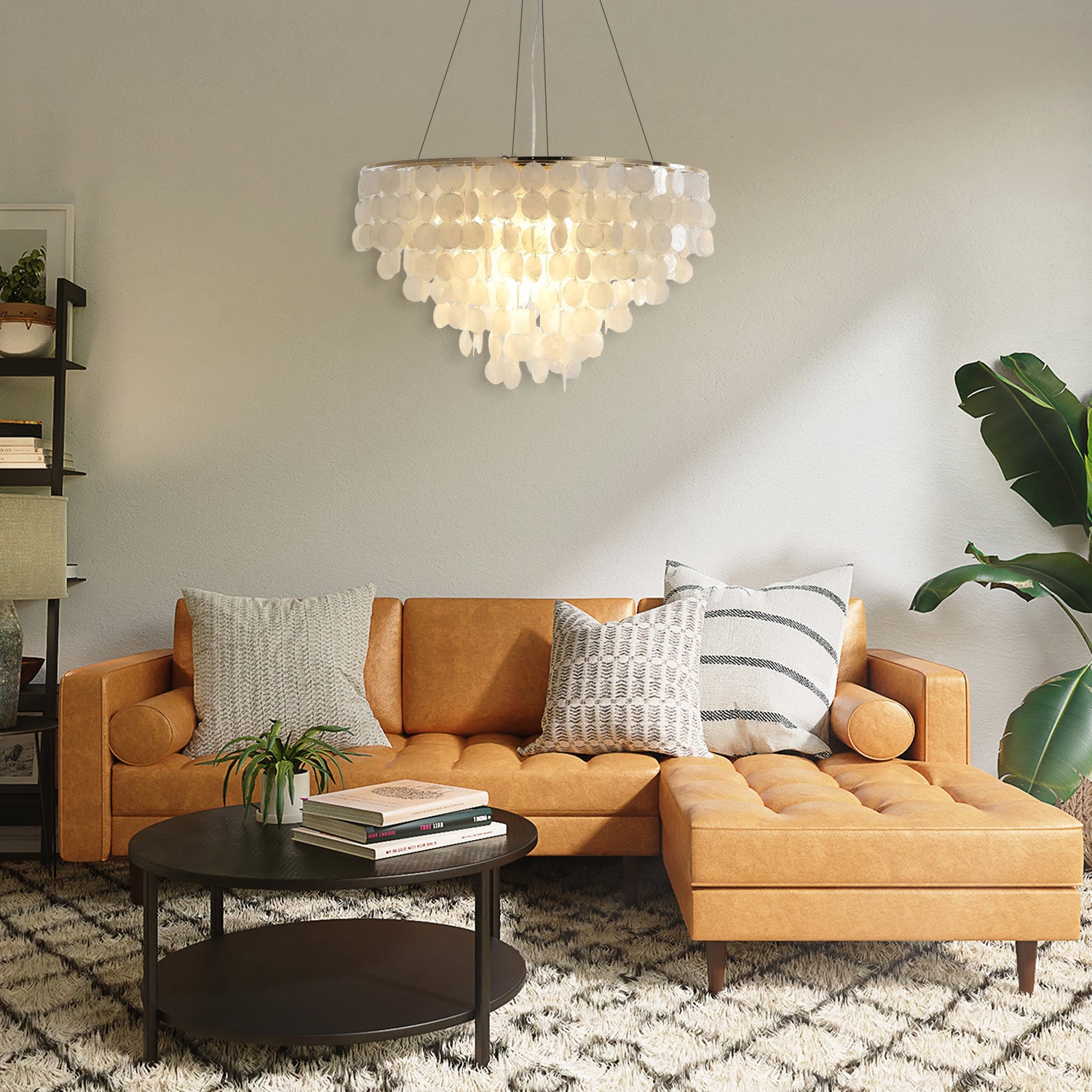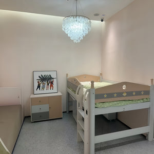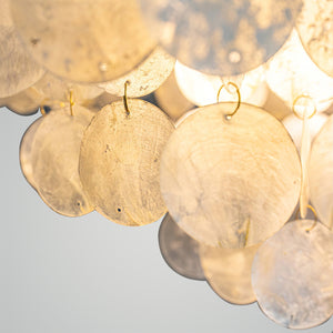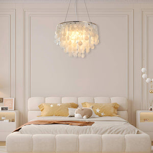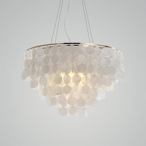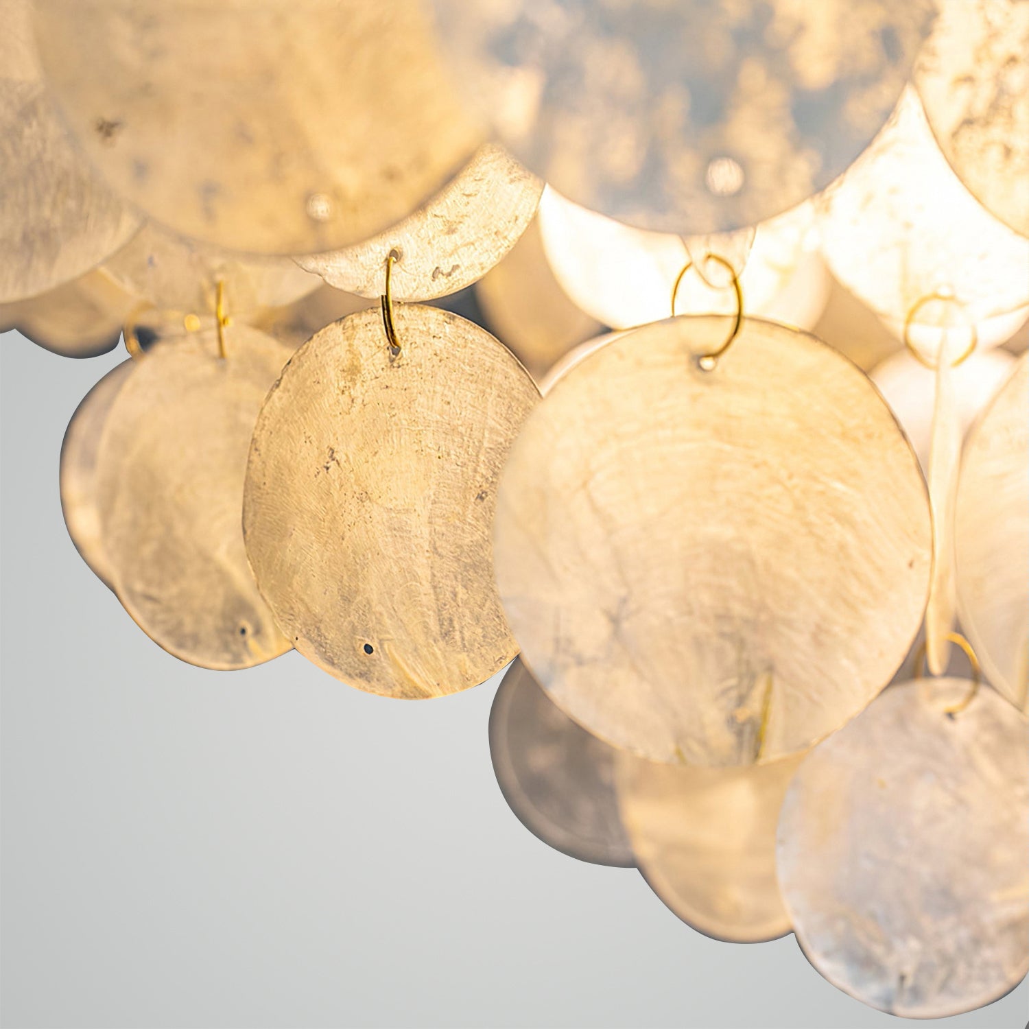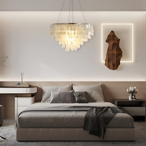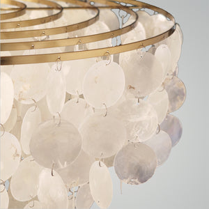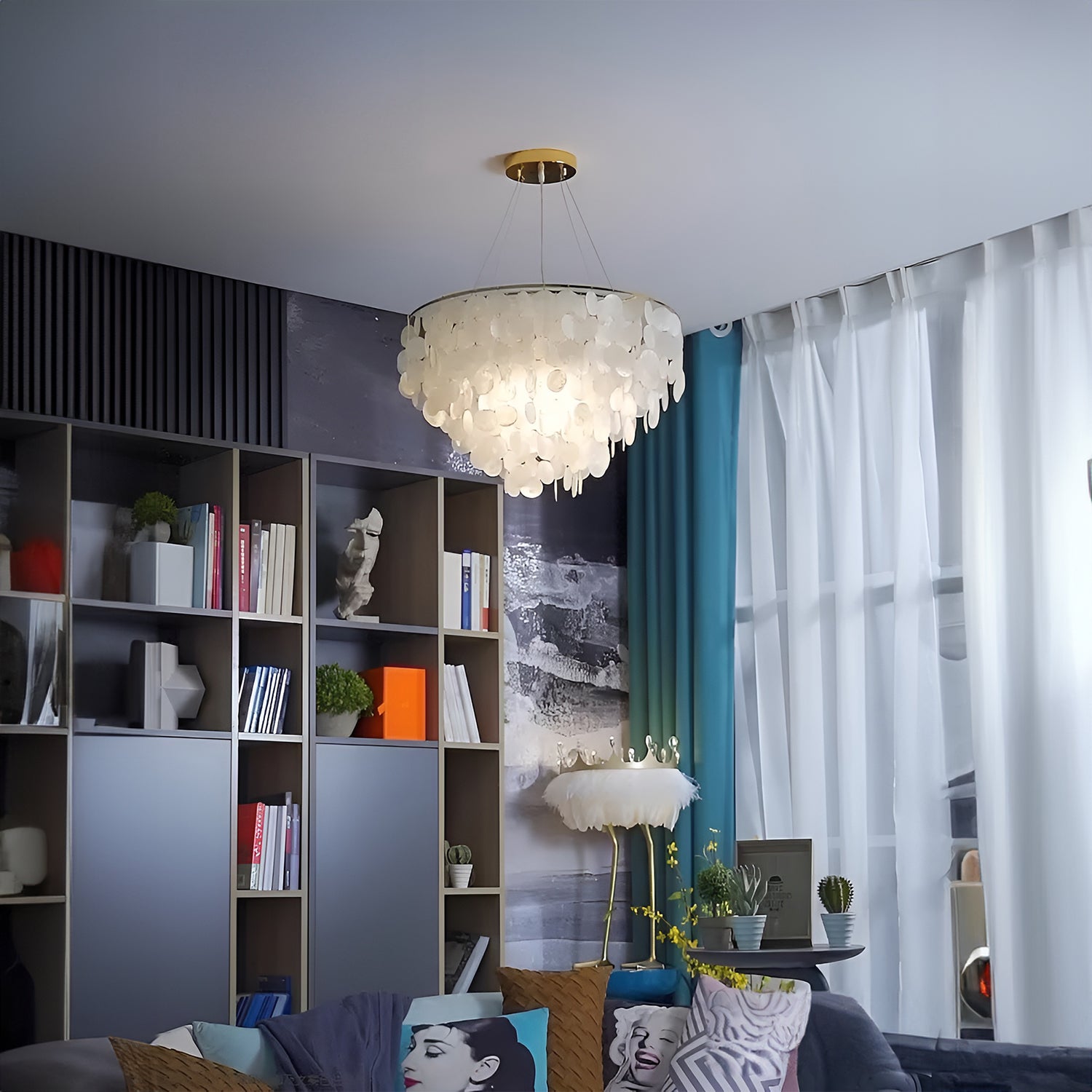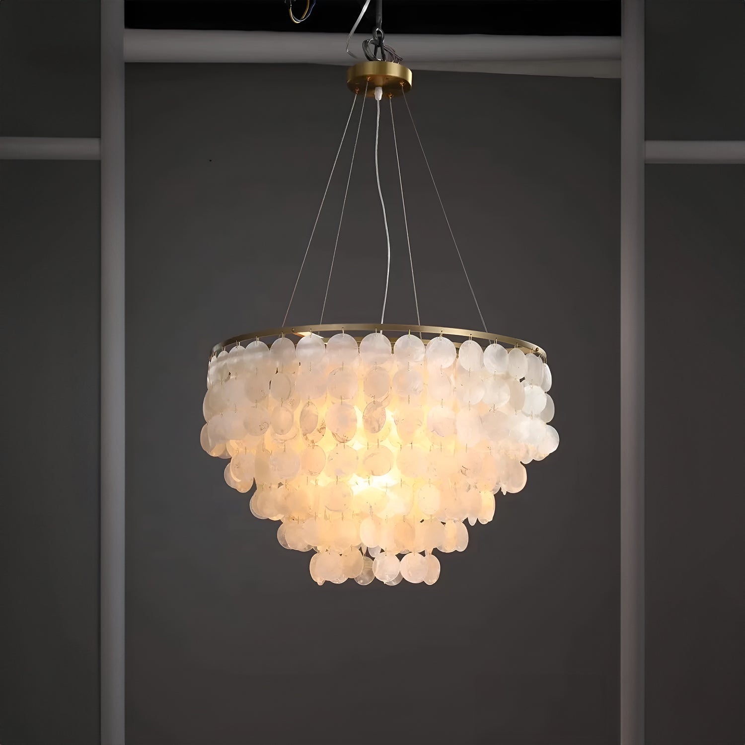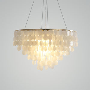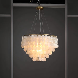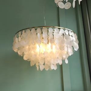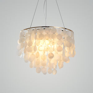 The "Sea-shell FUN DM Chandelier" is a graceful addition that brings the natural allure and melody of the seaside into your home. Crafted with care, this chandelier is adorned with layers of delicate shell pieces that mimic the whimsical movement of wind chimes. The shells are arranged in a cascading fashion, creating a stunning display that gently diffuses light and casts a warm, inviting glow. Perfect for those who appreciate the serene and melodious atmosphere of the coast, this chandelier is sure to be a conversation starter. Transform any room into a coastal haven with the gentle tinkle and shimmer of the Cascade Luminance Shell Chandelier.