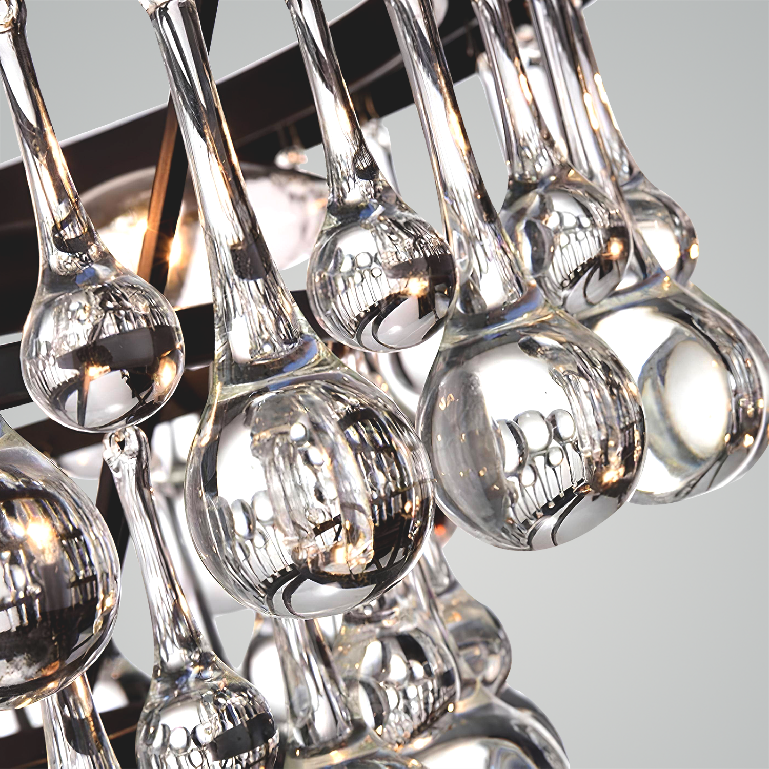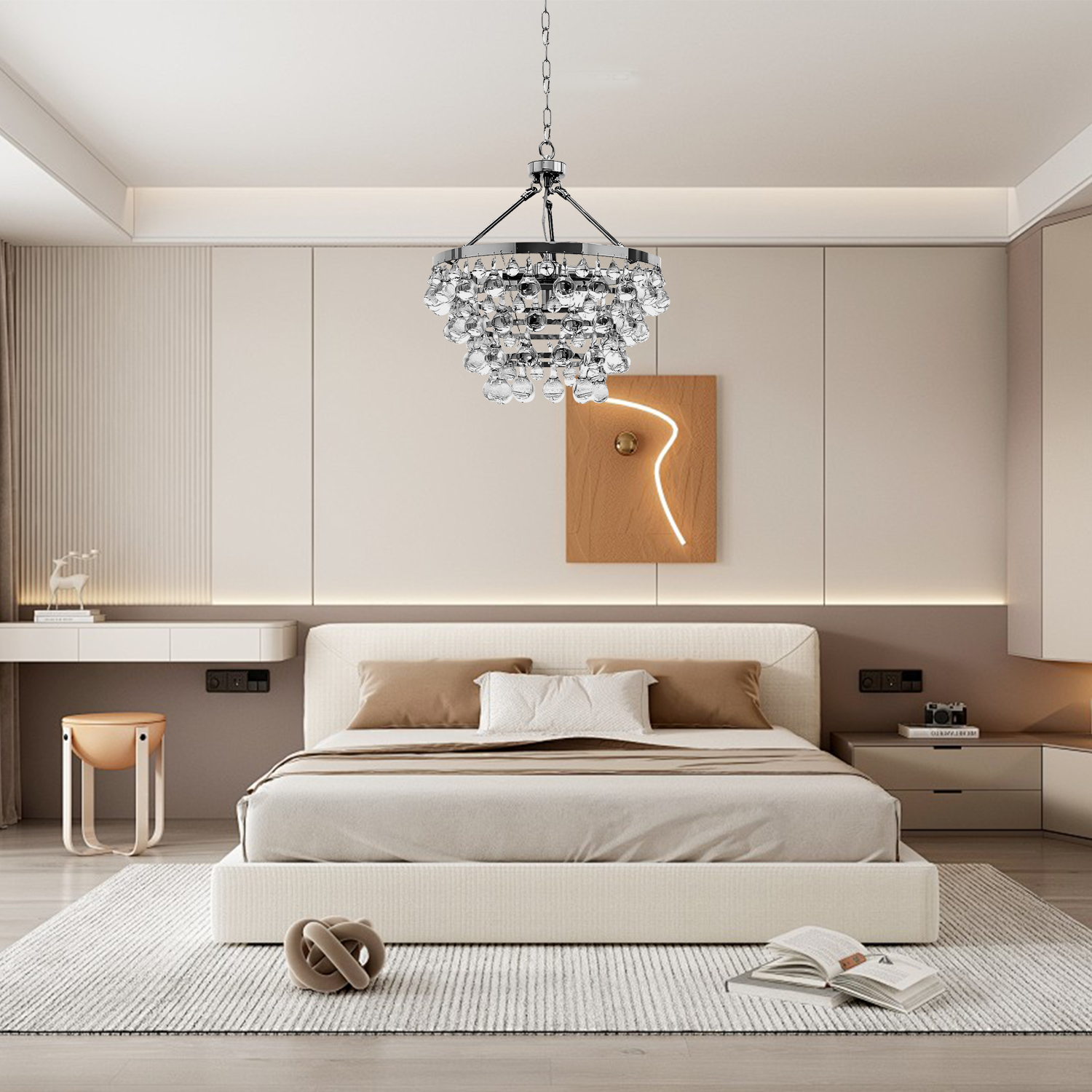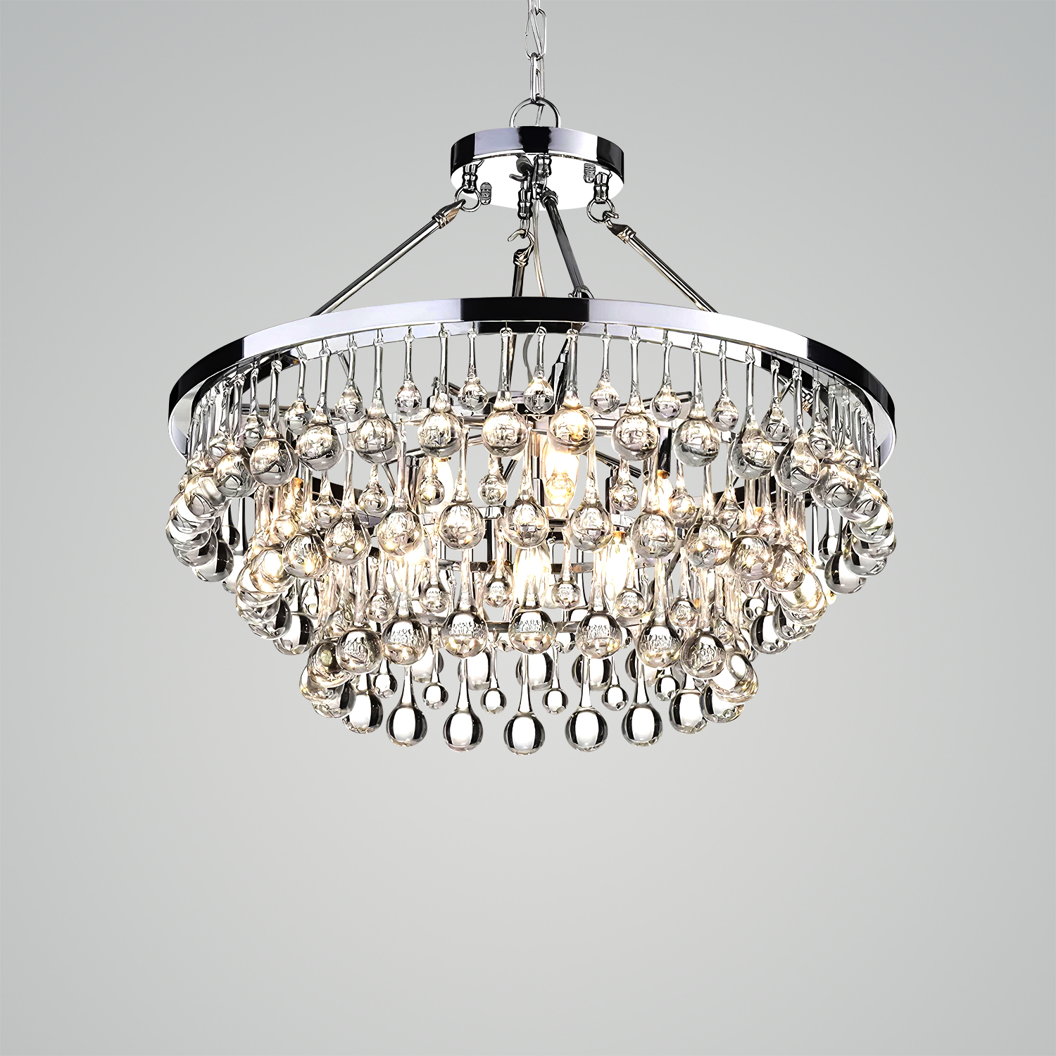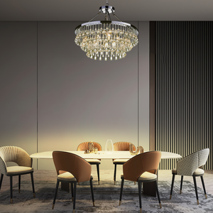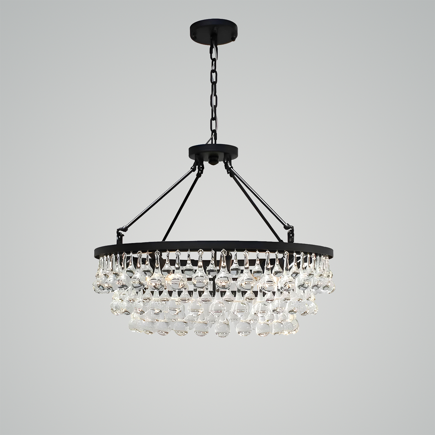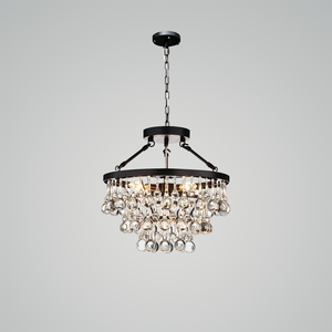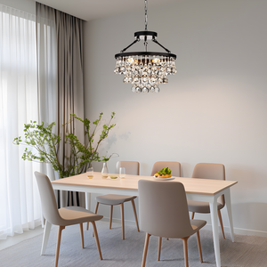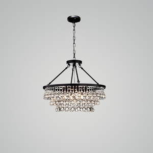 Unveiling the "Unique Tiered Crystal Chandelier," a magnificent statement piece that infuses classic American country charm with a touch of opulence. This chandelier boasts a unique tiered design, featuring strands of sparkling crystals that drape elegantly from a dark, contrasting frame. Each crystal refracts light to bathe your space in a radiant, luxurious glow. With its grandeur and impeccable craftsmanship, this chandelier is designed to serve as the centerpiece of any room, whether it's a sophisticated dining area, an inviting living room, or a grand foyer. The Elegance Cascade Crystal Chandelier promises to add an air of refined elegance to your home, making every moment beneath it feel like a special occasion.