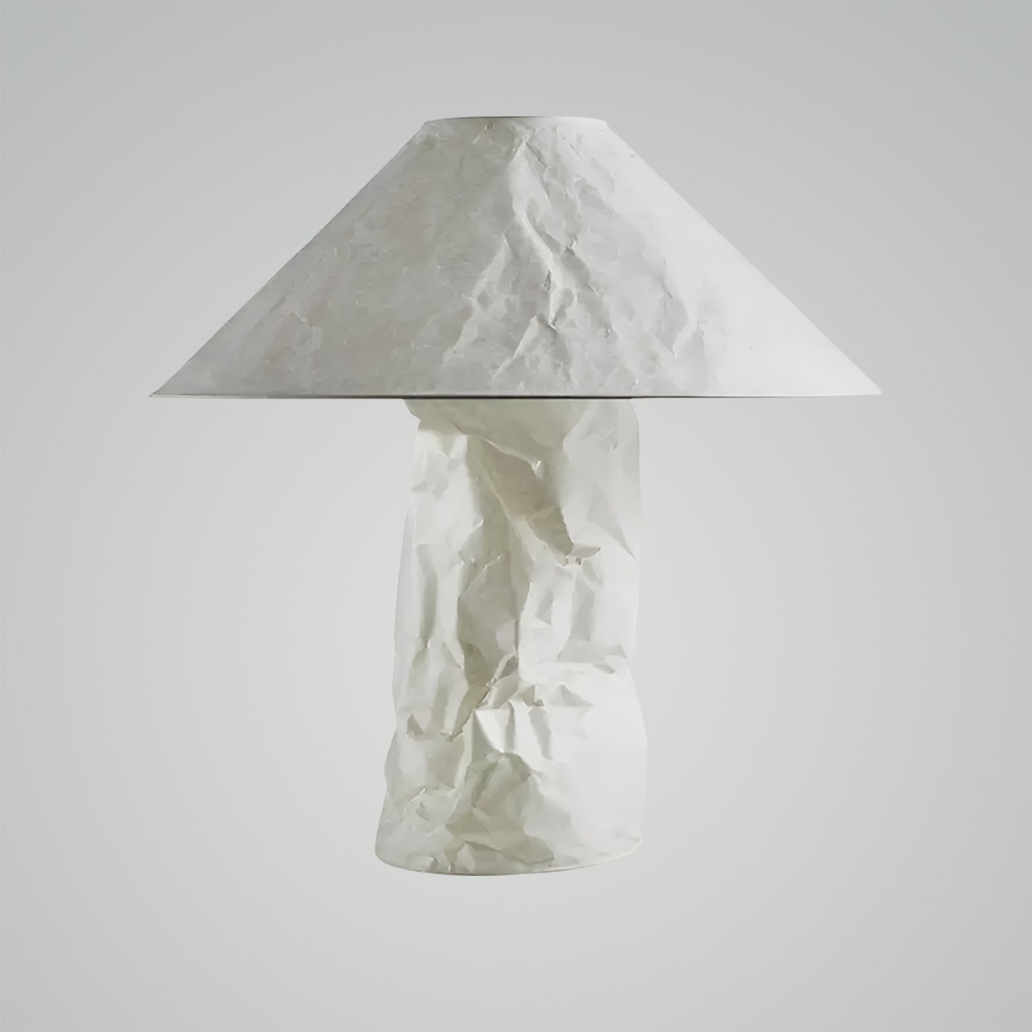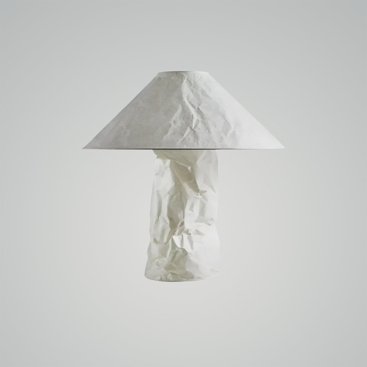 This design adopts a traditional lampshade shape while creating a completely new aesthetic. The lampshades are handcrafted at our production facility in Munich. The paper material emits a soft, completely glare-free light, and the slight wrinkles in the paper are an intentional design element.