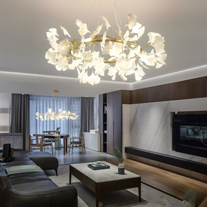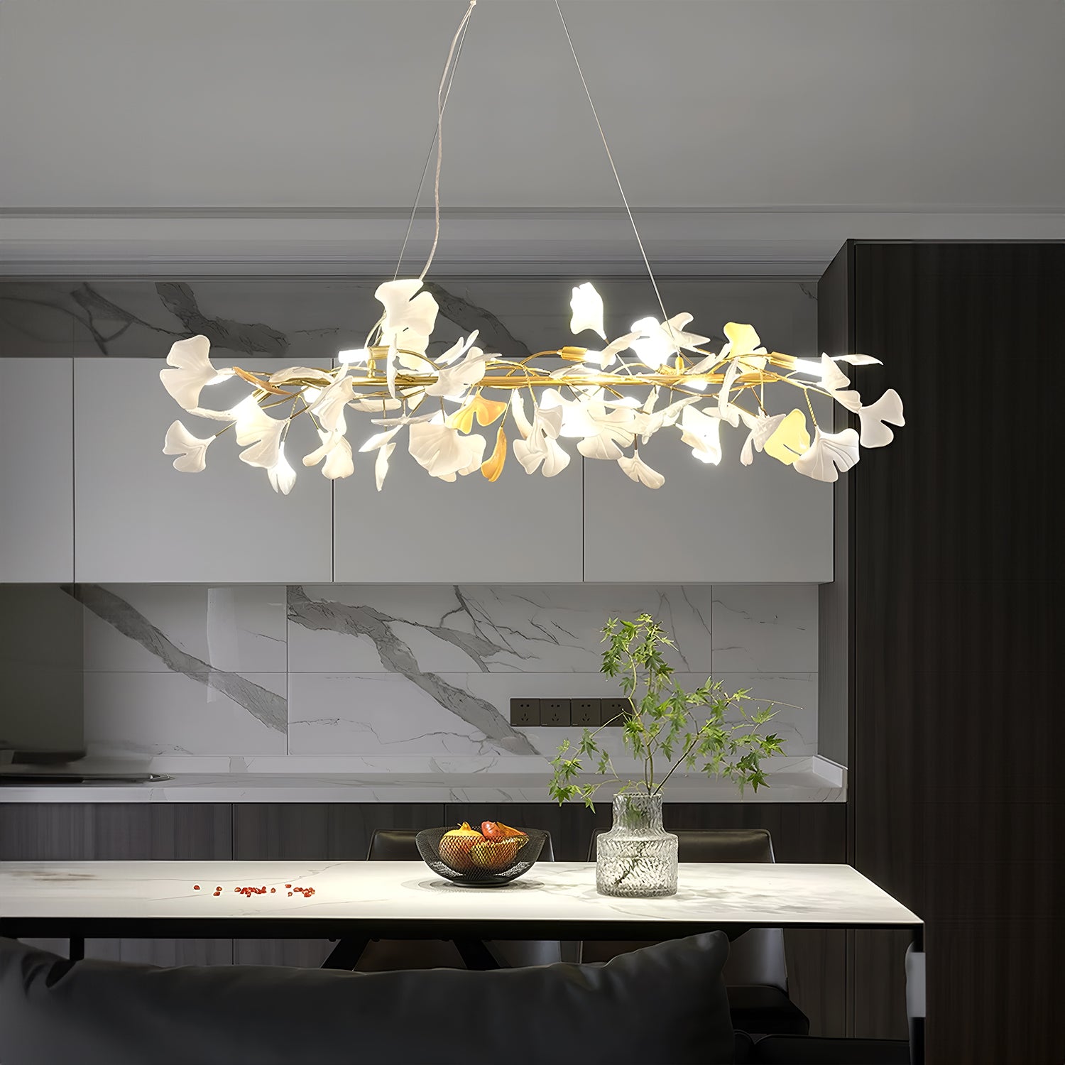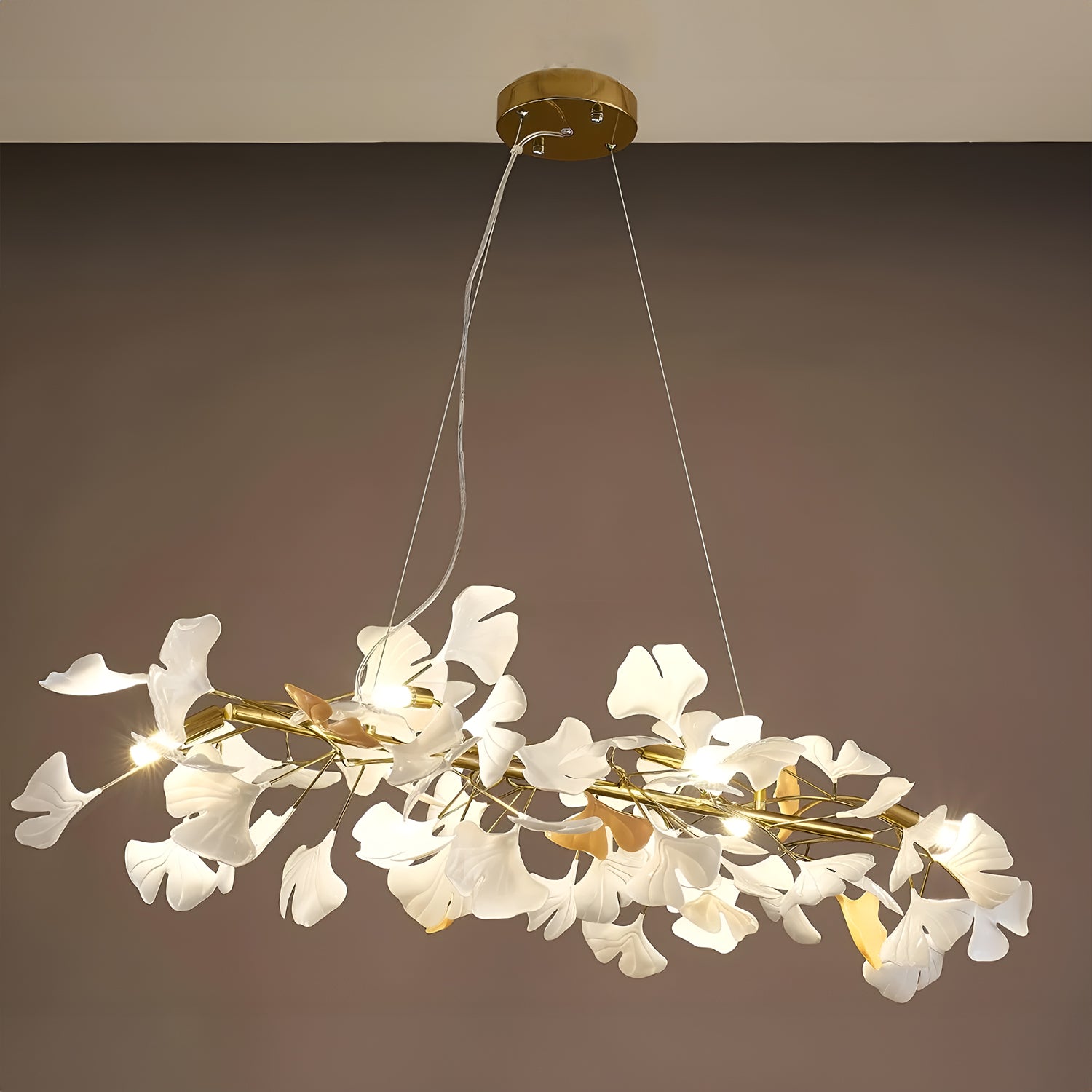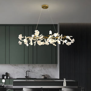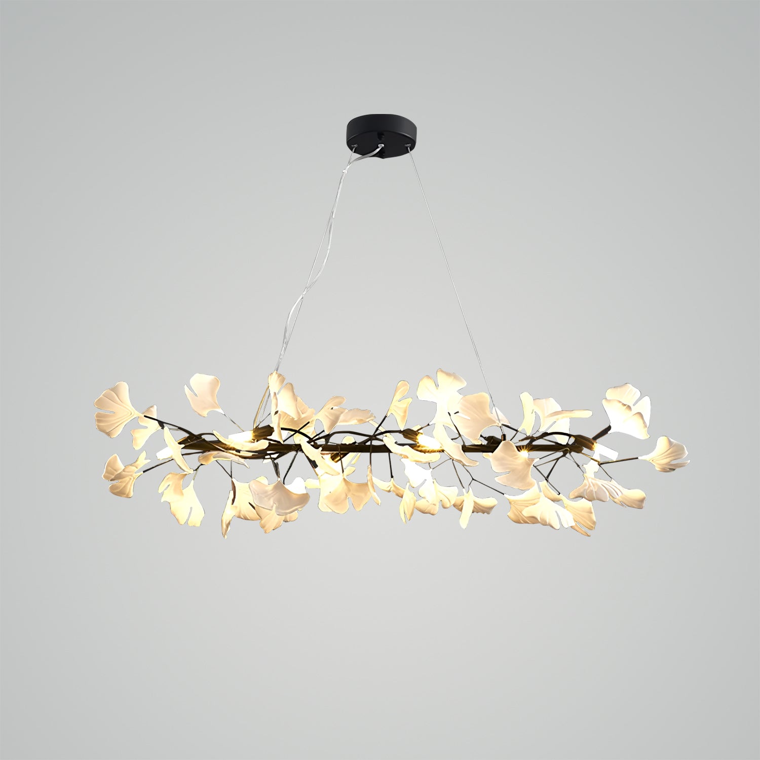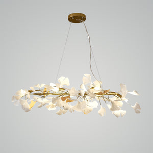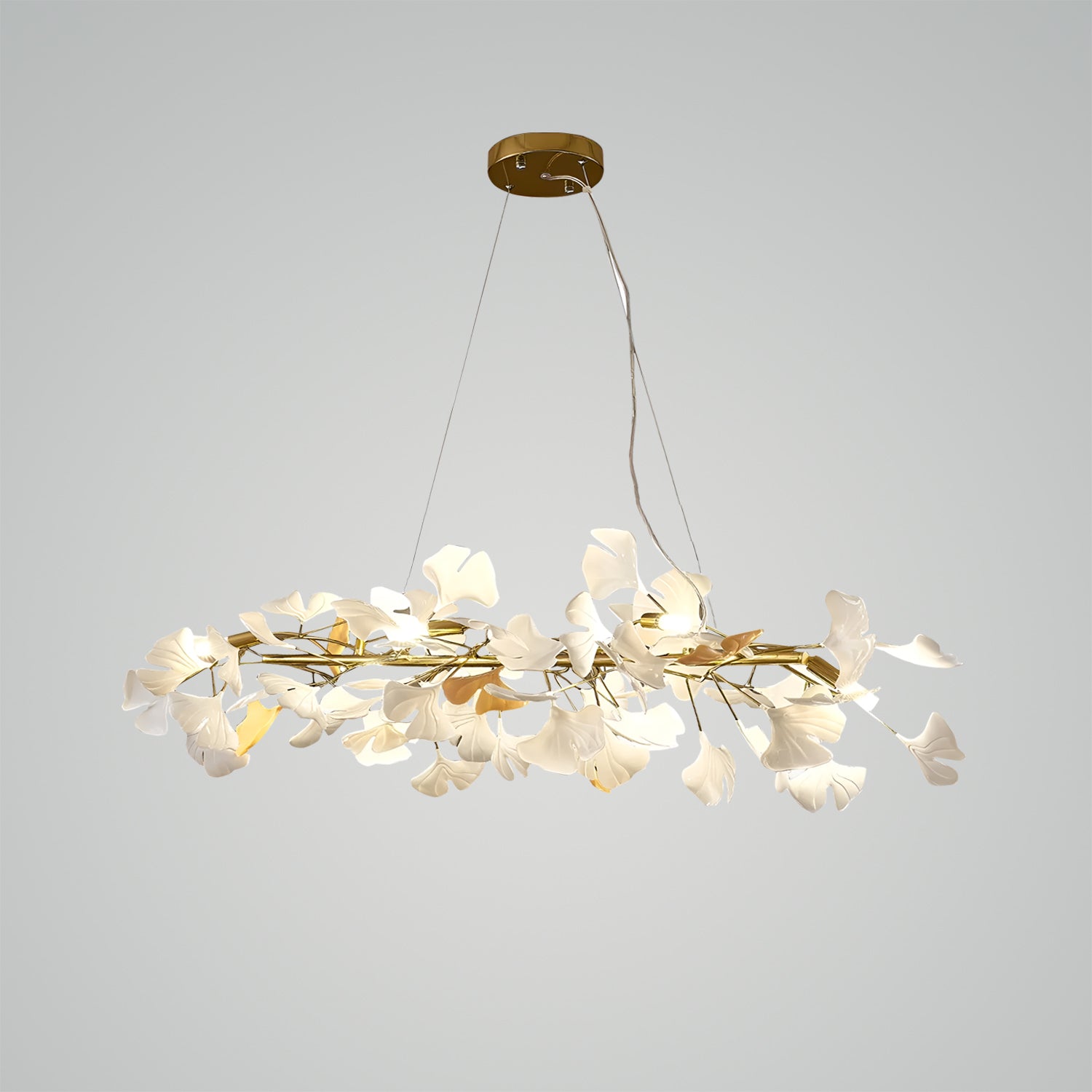 Introducing the "Gingko Chandelier M," a captivating chandelier that brings a touch of nature's elegance into your home. This stunning piece features a delicate arrangement of ginkgo leaf-inspired elements, creating a graceful and airy silhouette. The warm, inviting light filters through the leaves, casting enchanting patterns and creating a serene ambiance. Perfect for dining areas, living rooms, or any space that craves a blend of natural beauty and modern sophistication, the Gingko Chandelier M is a true testament to refined design and artistry. Illuminate your home with this exquisite chandelier and experience the harmony of light and nature.