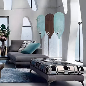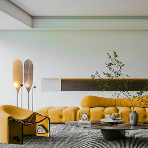 Introducing the ROBIN FLOOR LAMP - Luminary Paddle Floor Lamp, where timeless elegance meets modern sophistication. Echoing the grace of a single oar cutting through calm waters, this lamp's elongated, golden light panel emanates a serene glow, perfect for any contemporary space. Its slender black stand and circular base are the epitome of sleek design, ensuring that it not only illuminates your home but also enhances it with a stroke of design genius. Ideal for those seeking a fusion of function and form, the "Luminary Paddle" is more than a light source—it's a statement piece that invites tranquility into your daily life.