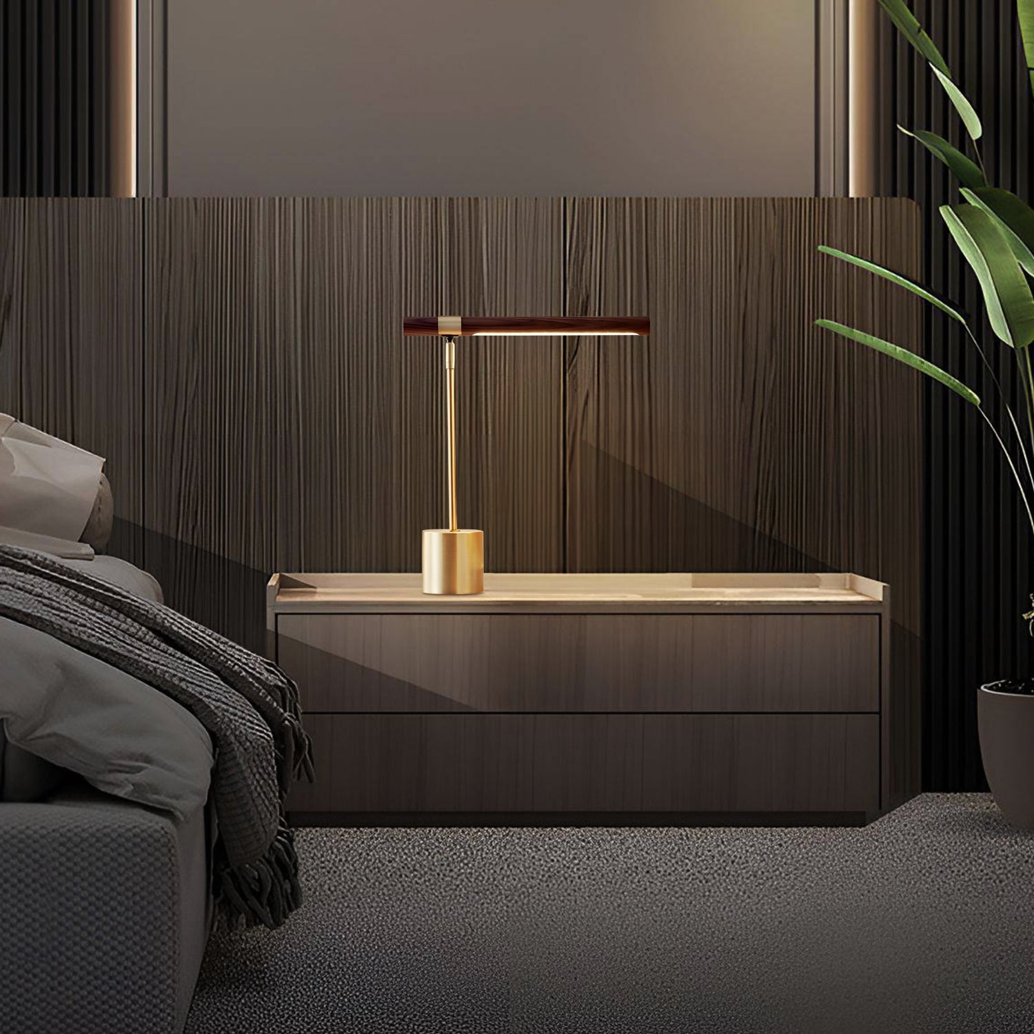 Introducing the Linear Table Lamp, a sleek and sophisticated addition to your study or workspace. With its linear form and rich, wood grain texture, this lamp combines modern design with a touch of natural elegance. The warm chestnut finish and brushed brass accents create a refined aesthetic that enhances any desk or nightstand. It's not just about style, though; the focused light beam is perfect for reading, writing, or intricate work, ensuring you have the clarity and comfort you need. Bring both function and fashion to your workspace with the Chestnut Beam Desk Lamp, the perfect companion for late nights and creative projects.
