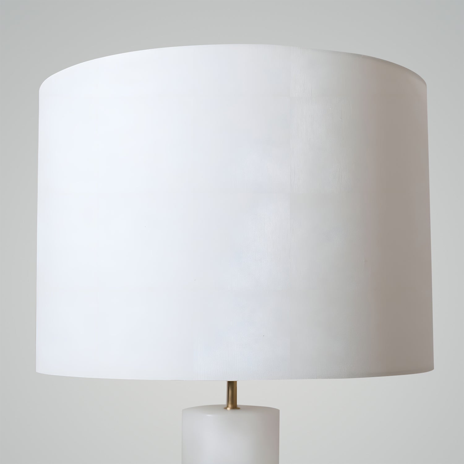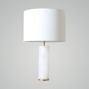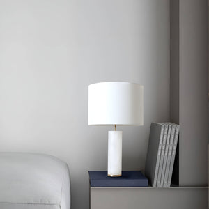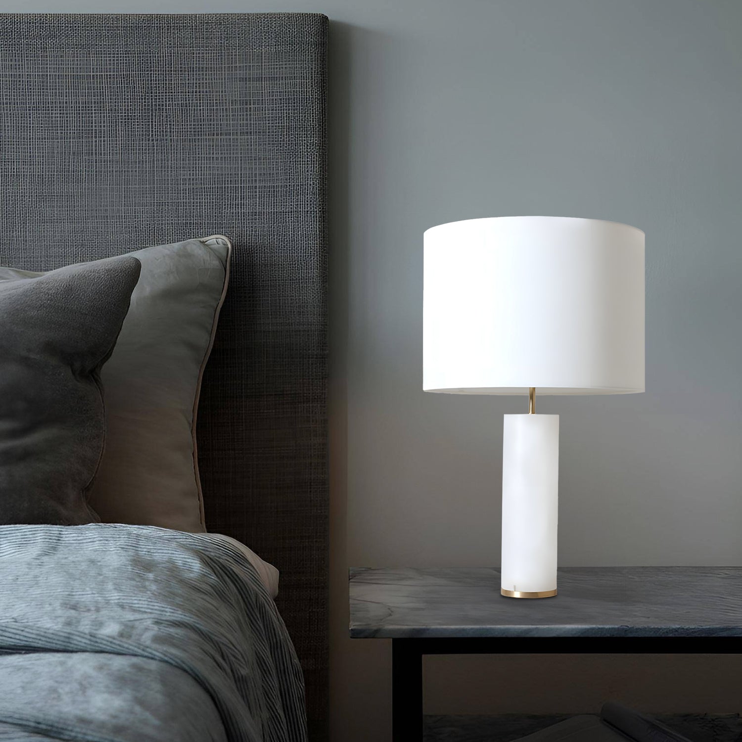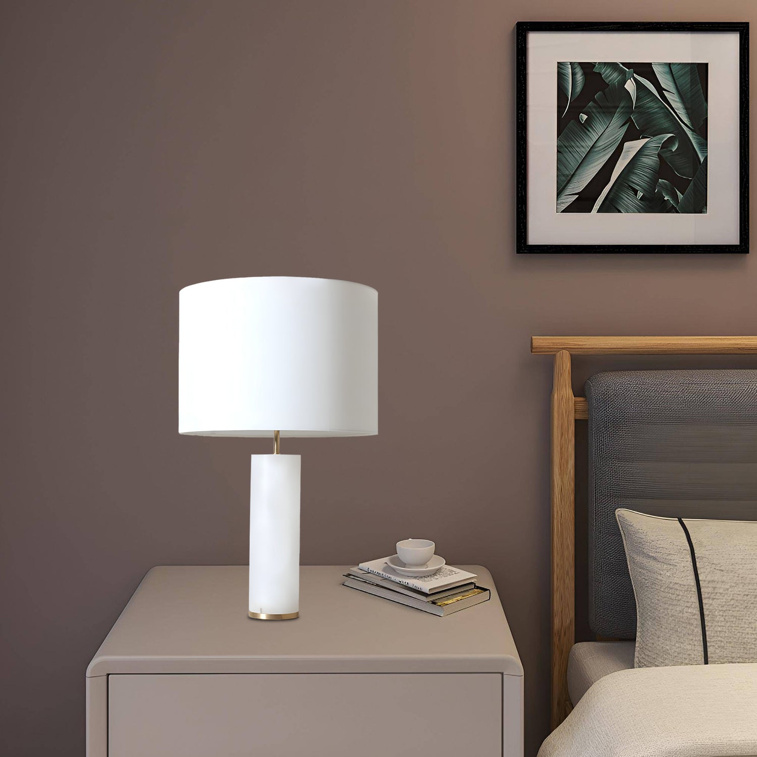 Elevate your home's ambiance with the "Alabaster Glow Table Lamp," a beacon of understated luxury. This lamp's cylindrical base, crafted from the finest marble, exudes a timeless sophistication with its natural, swirling patterns that catch and play with the light. Complemented by a warm brass foundation and capped with a crisp white shade, this lamp offers a soft, diffused light that brings a serene atmosphere to any space. Whether it's the centerpiece of a stylish living room or a graceful addition to a bedside table, the Alabaster Glow Table Lamp is a symbol of elegance and a source of tranquil illumination.