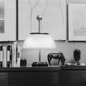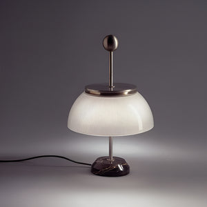 The metal structure is made of opaque nickel-plated material, the diffuser is made of crystal glass, and the base is marble. All metal components are hand-turned.