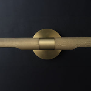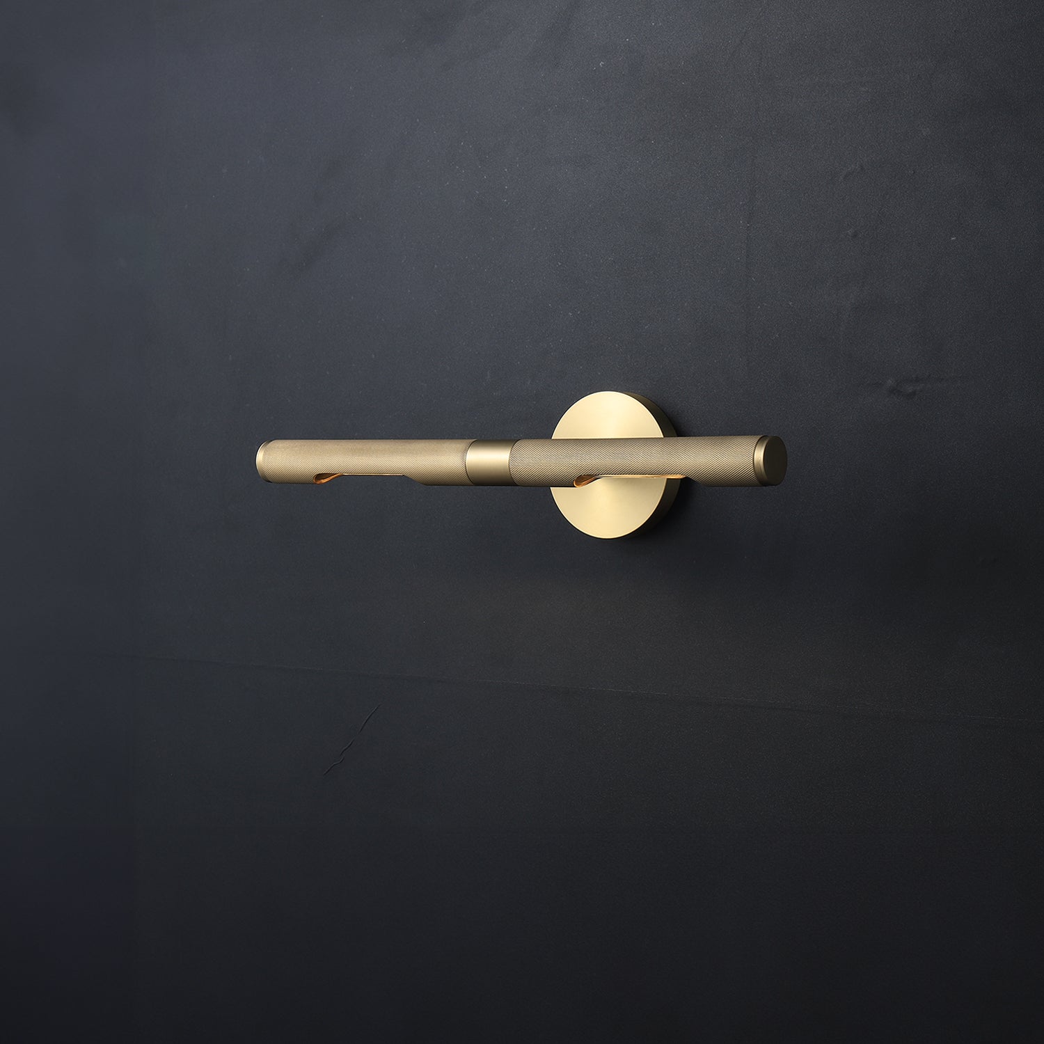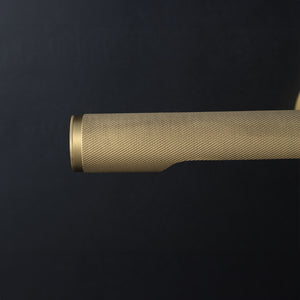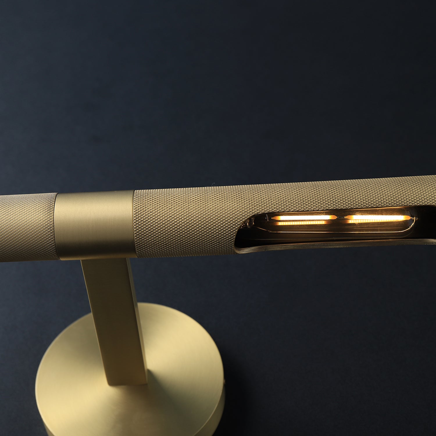 Inspired by the classic museum fixture, the lighting designer reinterprets the utilitarian picture light with an elegant touch. Made from solid brass, this fixture combines robust durability with refined proportions. The knurled texture not only provides a practical grip for rotating but also adds an industrial flair.