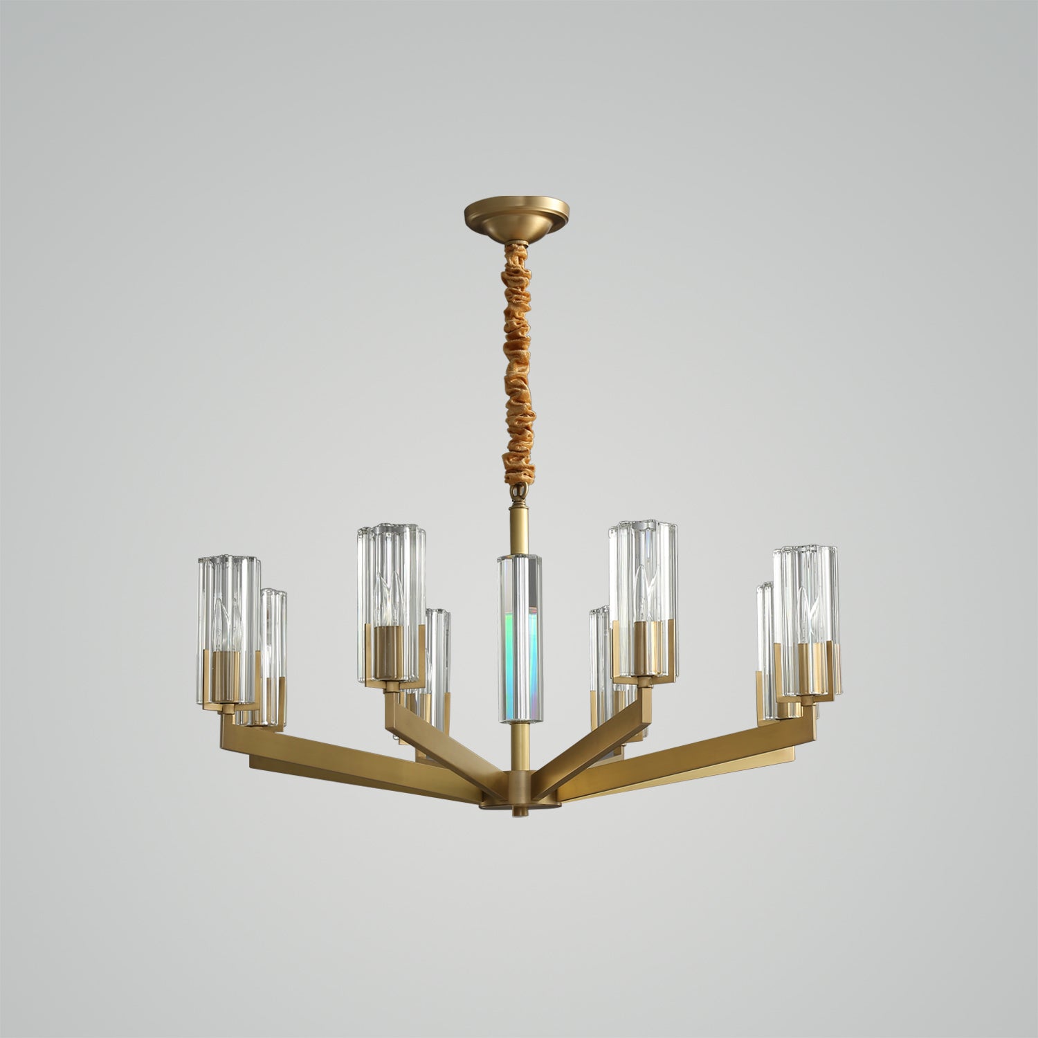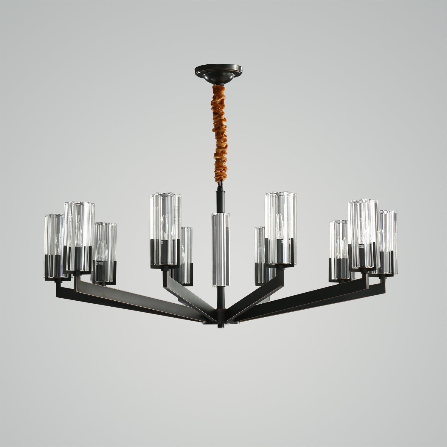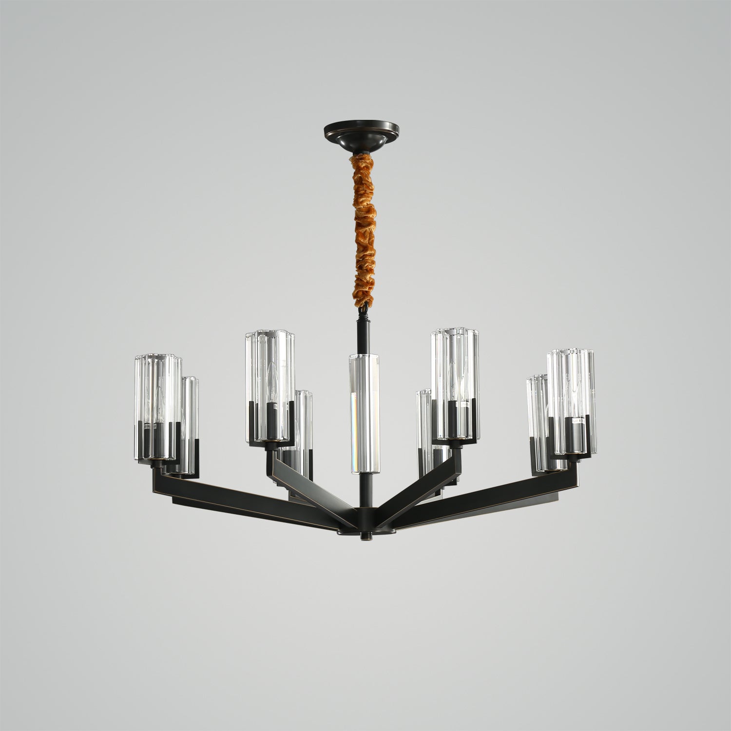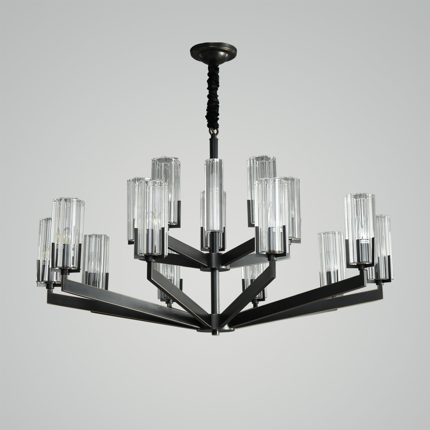 The Arcachon collection features a rhythmic design inspired by the shape and scale of industrial gears. The hexagonal spokes are interspersed with negative space, allowing them to interlock seamlessly. Crafted from crystal glass, these spokes contrast beautifully with rounded interiors and are elegantly mounted on a sleek, solid metal frame.
