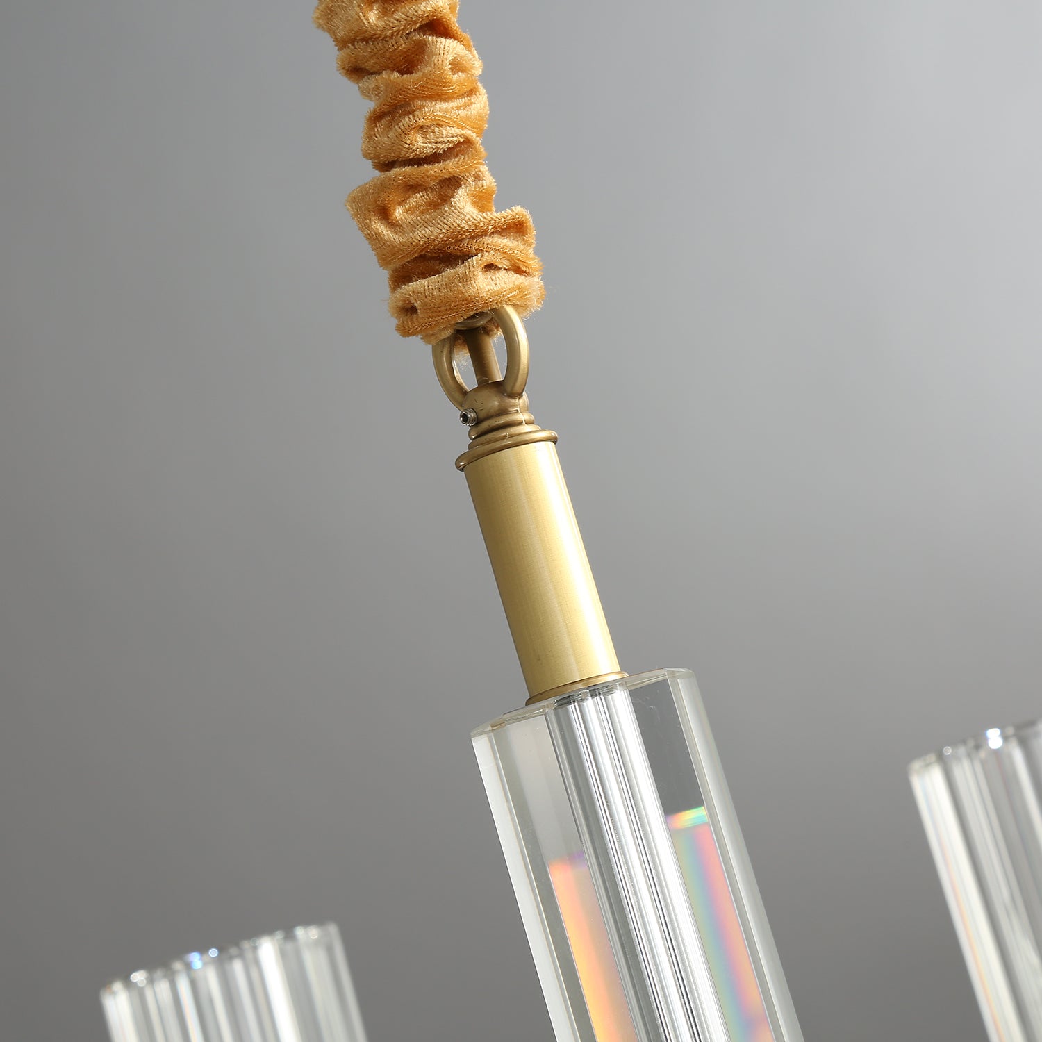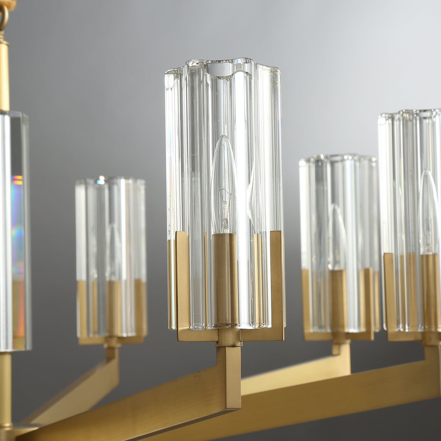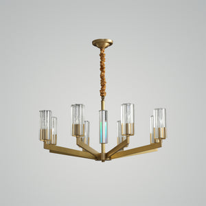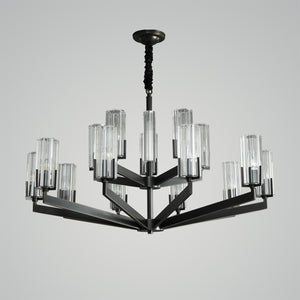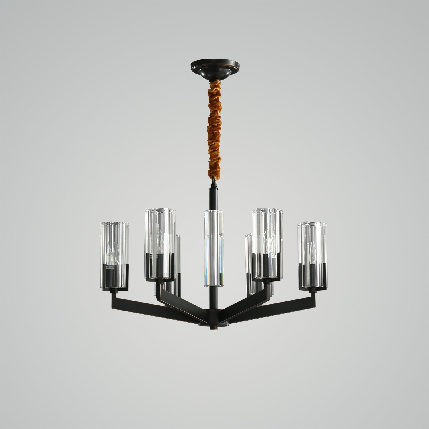 The Arcachon collection features a rhythmic design inspired by the shape and scale of industrial gears. The hexagonal spokes are interspersed with negative space, allowing them to interlock seamlessly. Crafted from crystal glass, these spokes contrast beautifully with rounded interiors and are elegantly mounted on a sleek, solid metal frame.
