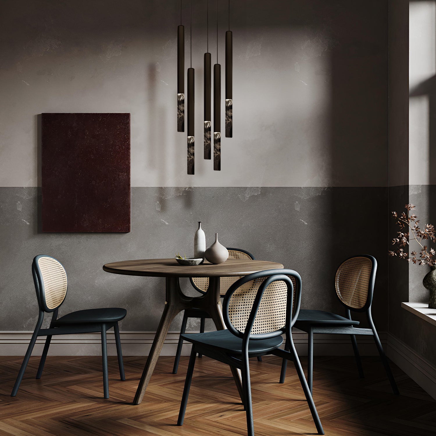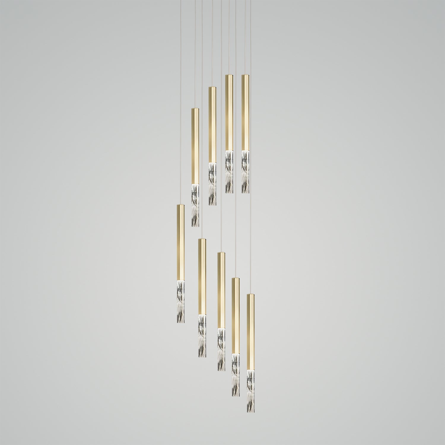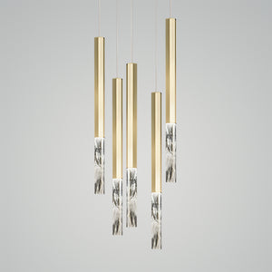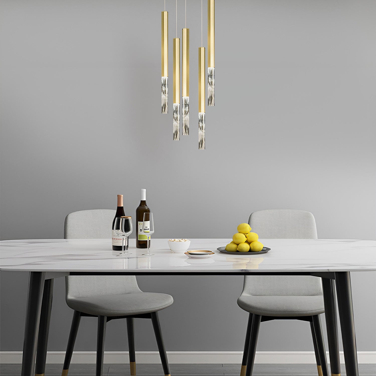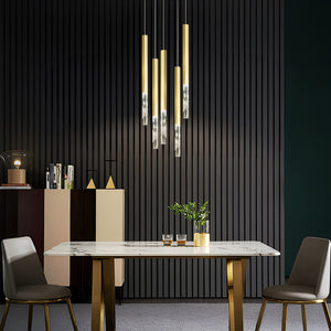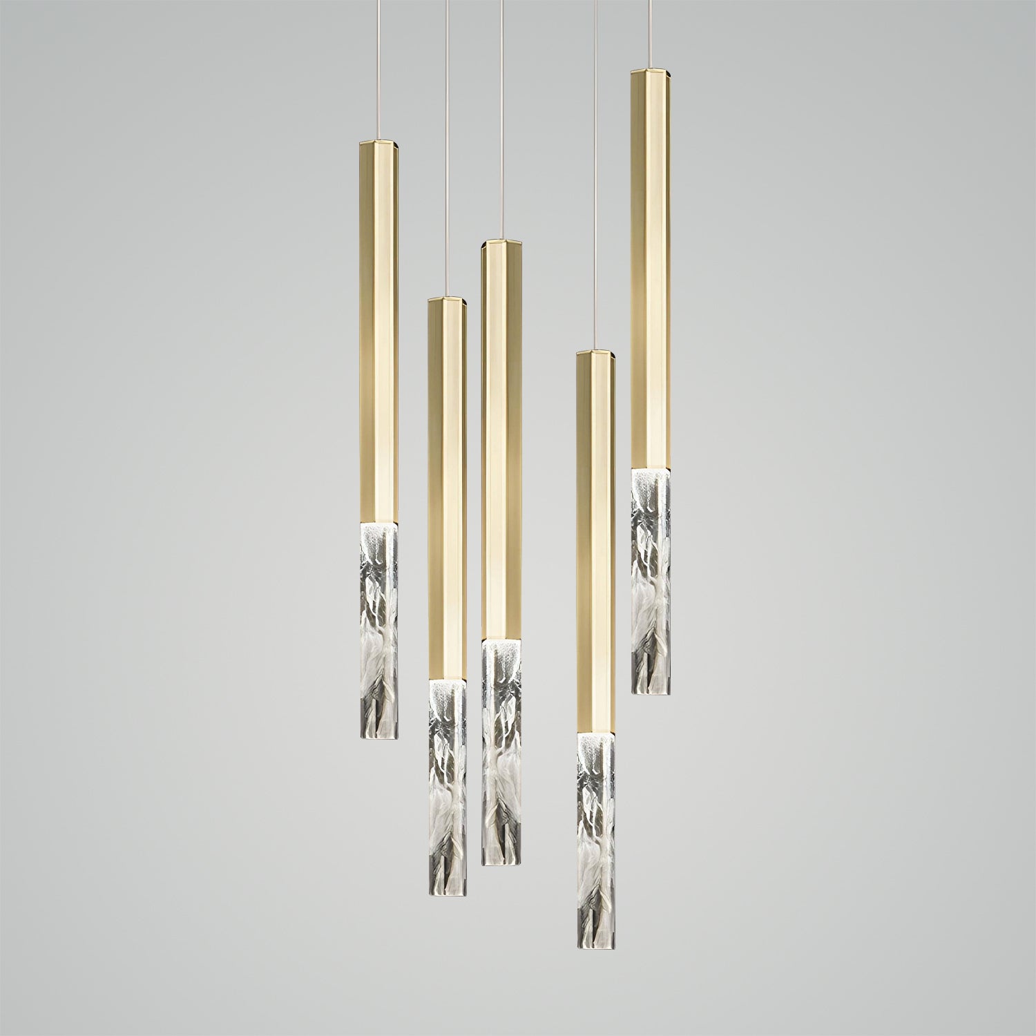 Elevate your space with the 'Aurora Cascade Pendant Light' – a modern masterpiece where sleek design meets the ethereal beauty of light. Crafted with precision, each rod-shaped pendant is a vertical column of luminescence, reminiscent of the awe-inspiring aurora borealis. Encased in a translucent resin that captures and reflects light, these pendants create a dance of shimmer and shadow, forming a constellation of illumination. Suspended in a gentle descent, this lighting arrangement is an ode to contemporary elegance, making it a perfect statement piece for both residential and commercial spaces. The Aurora Cascade Pendant is not just a light fixture; it's a sculptural installation that transforms any room into a gallery of modern art.
